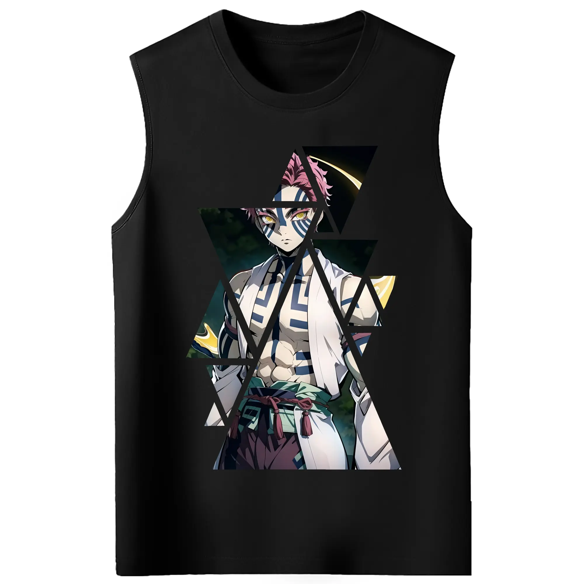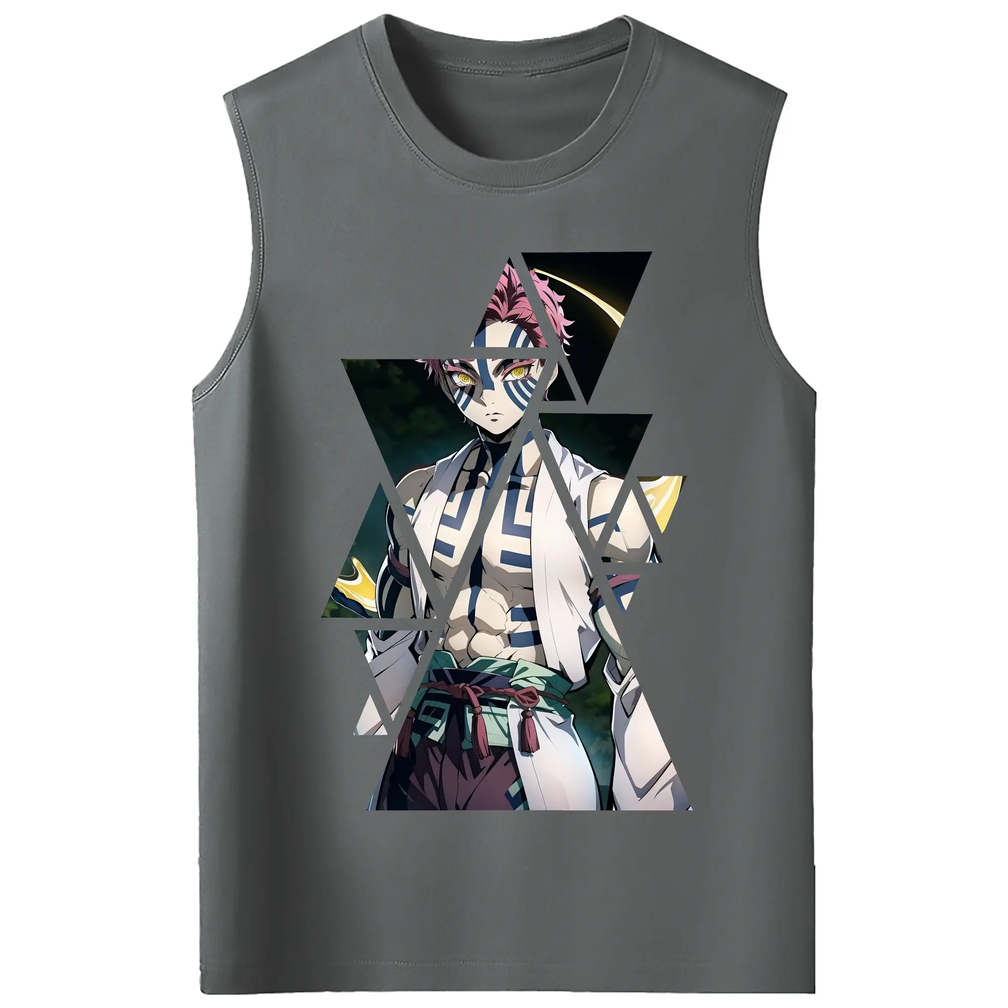 鬼滅の刃 グッズ,猗窩座 - コットン100% タンクトップ ・ フロントプリント ・ タイトフィット ・ 快適 通気性 ・ スポーツ カジュアル 散歩用