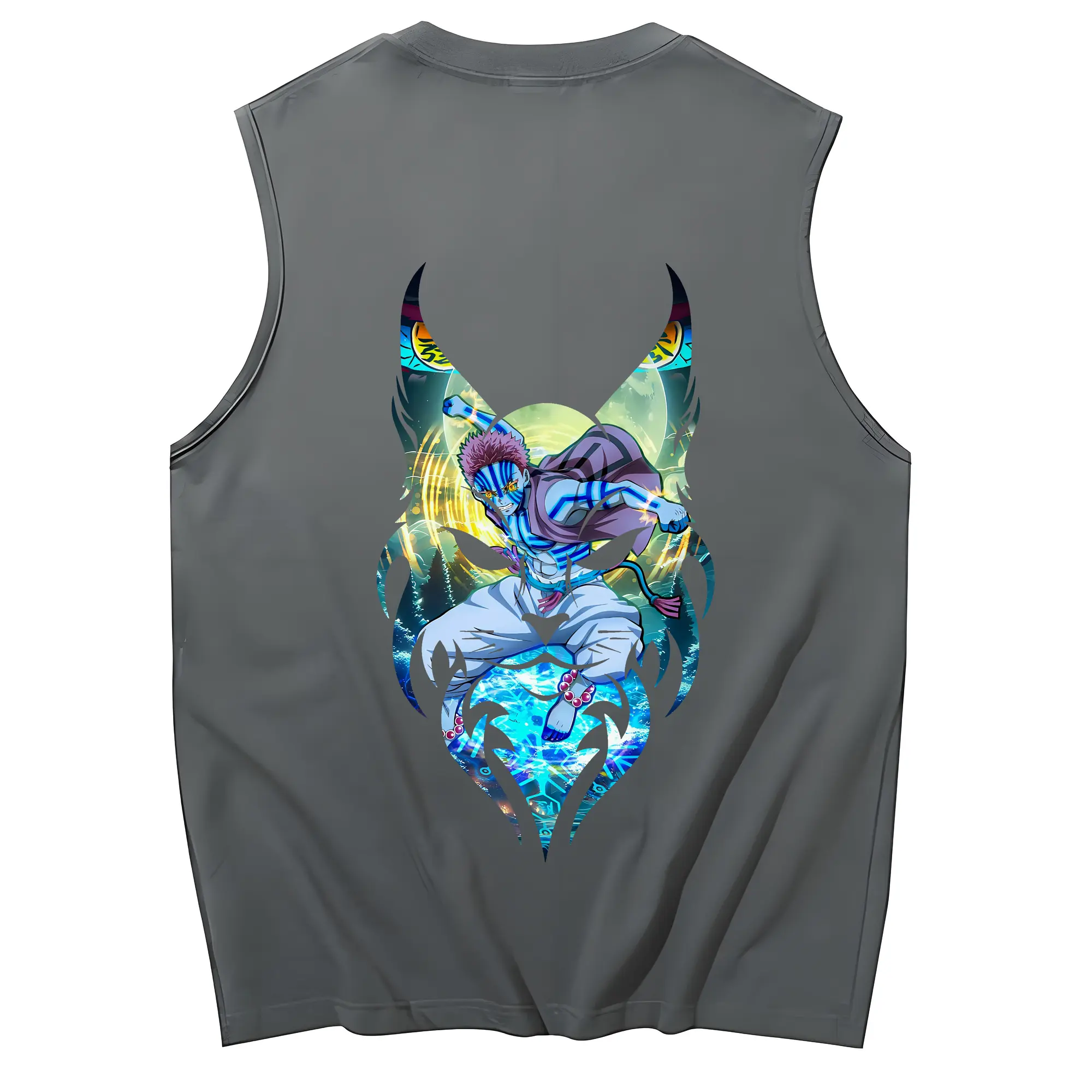 鬼滅の刃 グッズ,猗窩座 - コットン100% タンクトップ ・ 背面プリント ・ タイトシルエット ・ 快適 通気性 ・ スポーツ カジュアル 散歩用