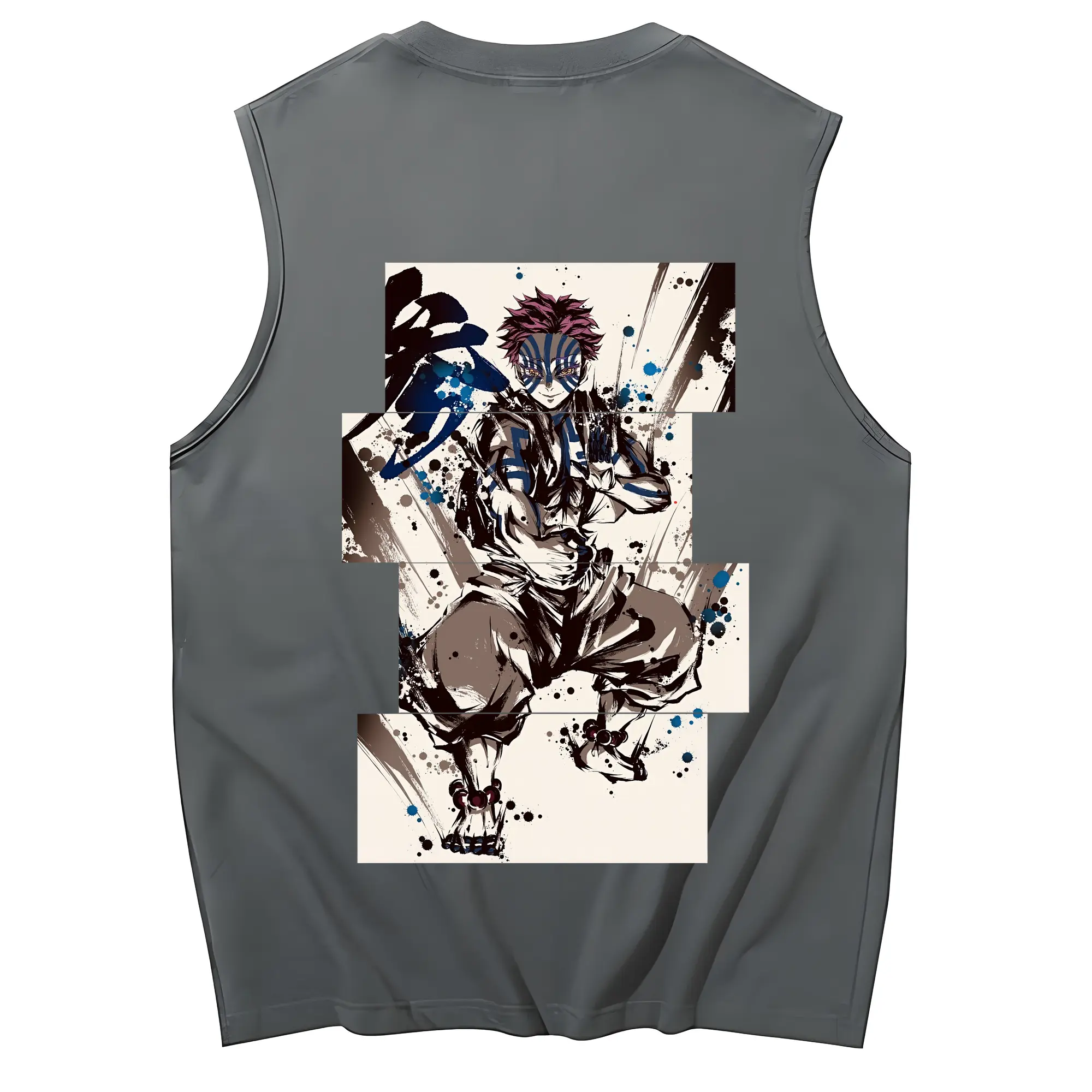 鬼滅の刃 グッズ,猗窩座 - コットン100% タンクトップ ・ 背面プリント ・ タイトシルエット ・ 快適 通気性 ・ スポーツ カジュアル 散歩用