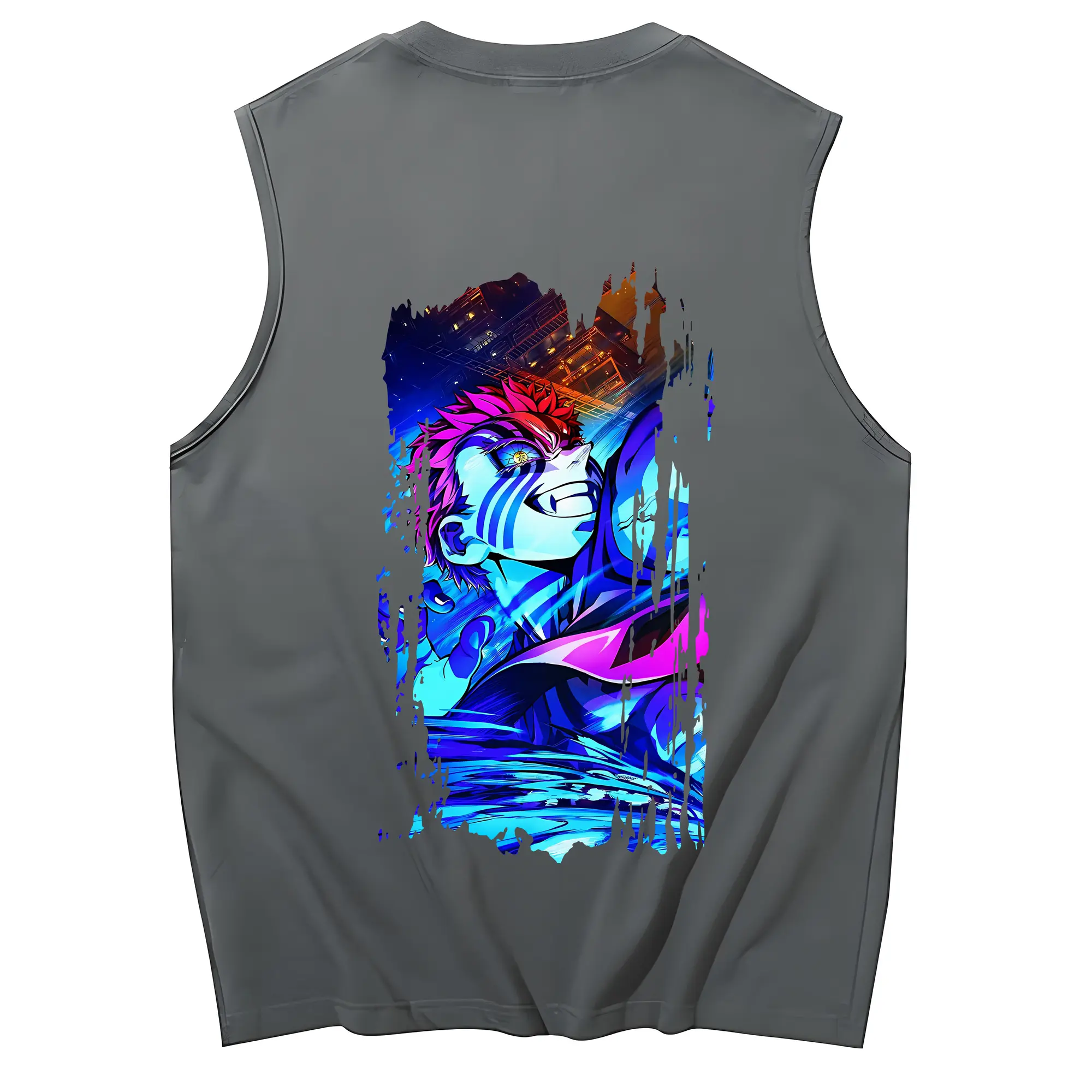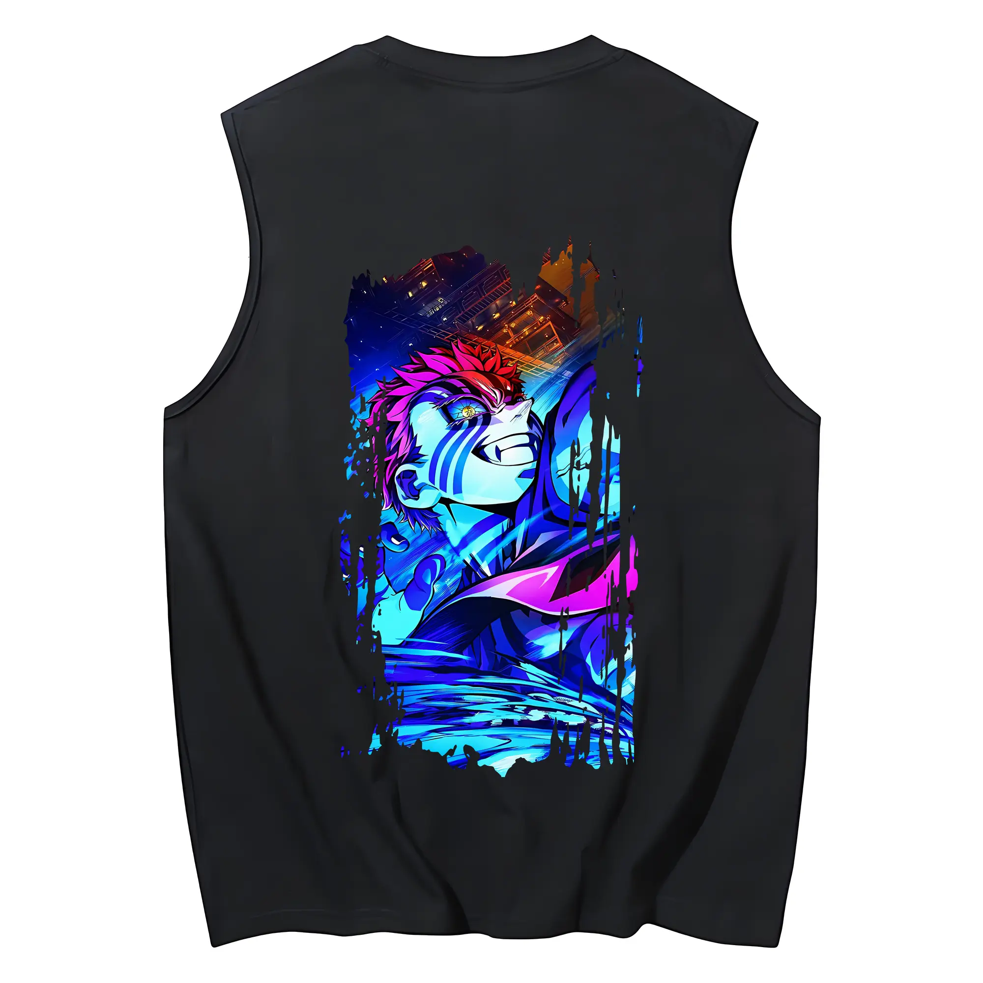 鬼滅の刃 グッズ,猗窩座 - コットン100% タンクトップ ・ 背面プリント ・ タイトシルエット ・ 快適 通気性 ・ スポーツ カジュアル 散歩用