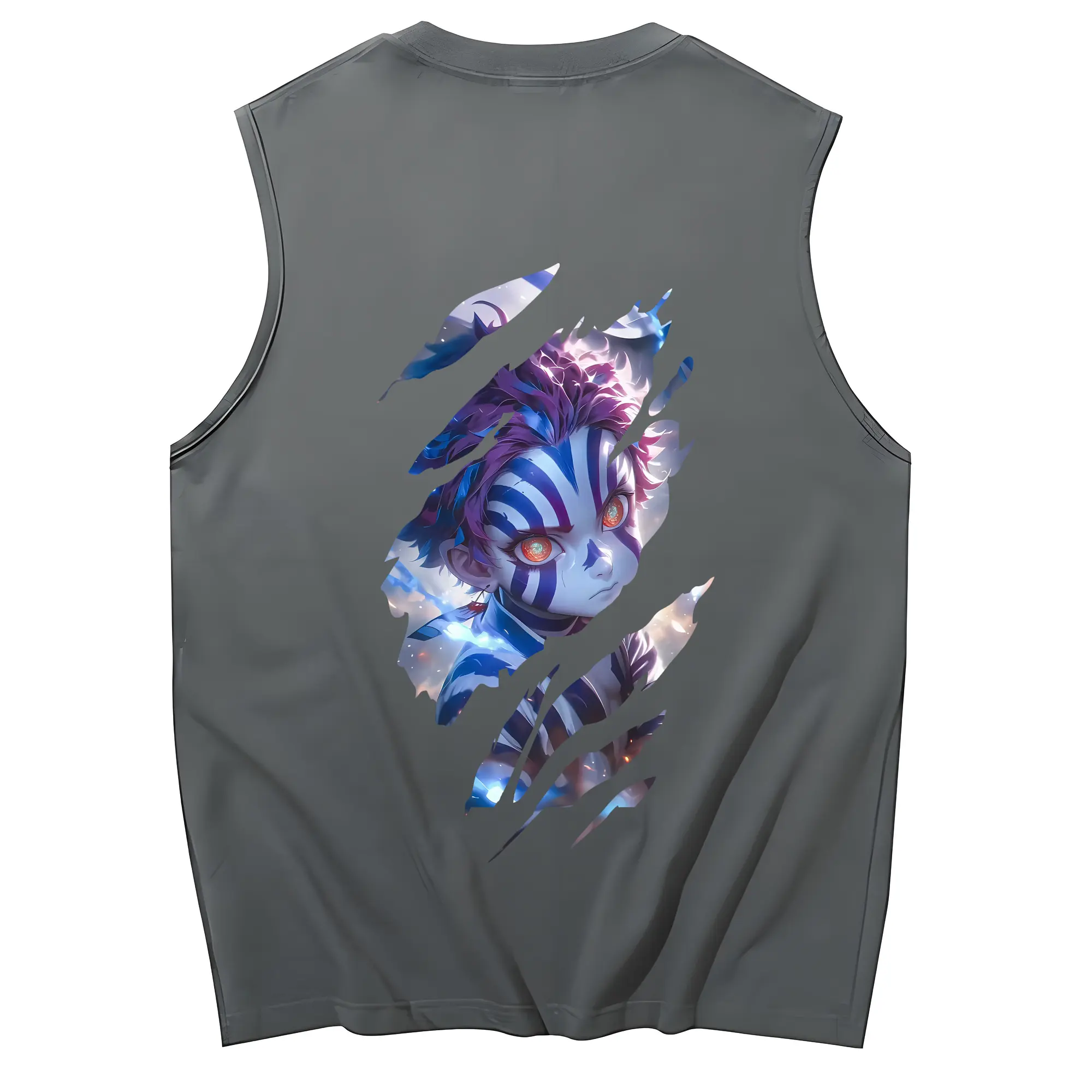 鬼滅の刃 グッズ,猗窩座 - コットン100% タンクトップ ・ 背面プリント ・ タイトシルエット ・ 快適 通気性 ・ スポーツ カジュアル 散歩用