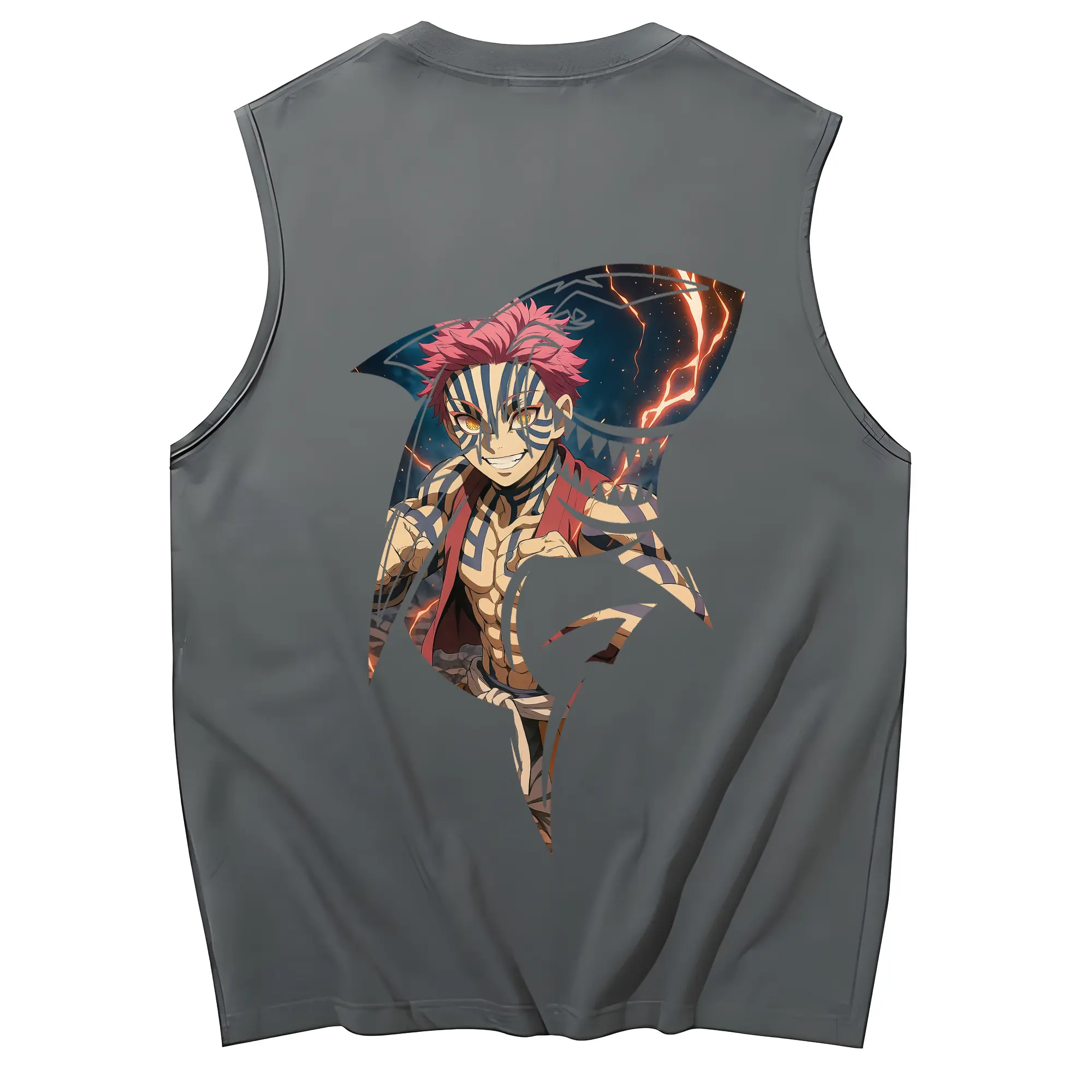 鬼滅の刃 グッズ,猗窩座 - コットン100% タンクトップ ・ 背面プリント ・ タイトシルエット ・ 快適 通気性 ・ スポーツ カジュアル 散歩用