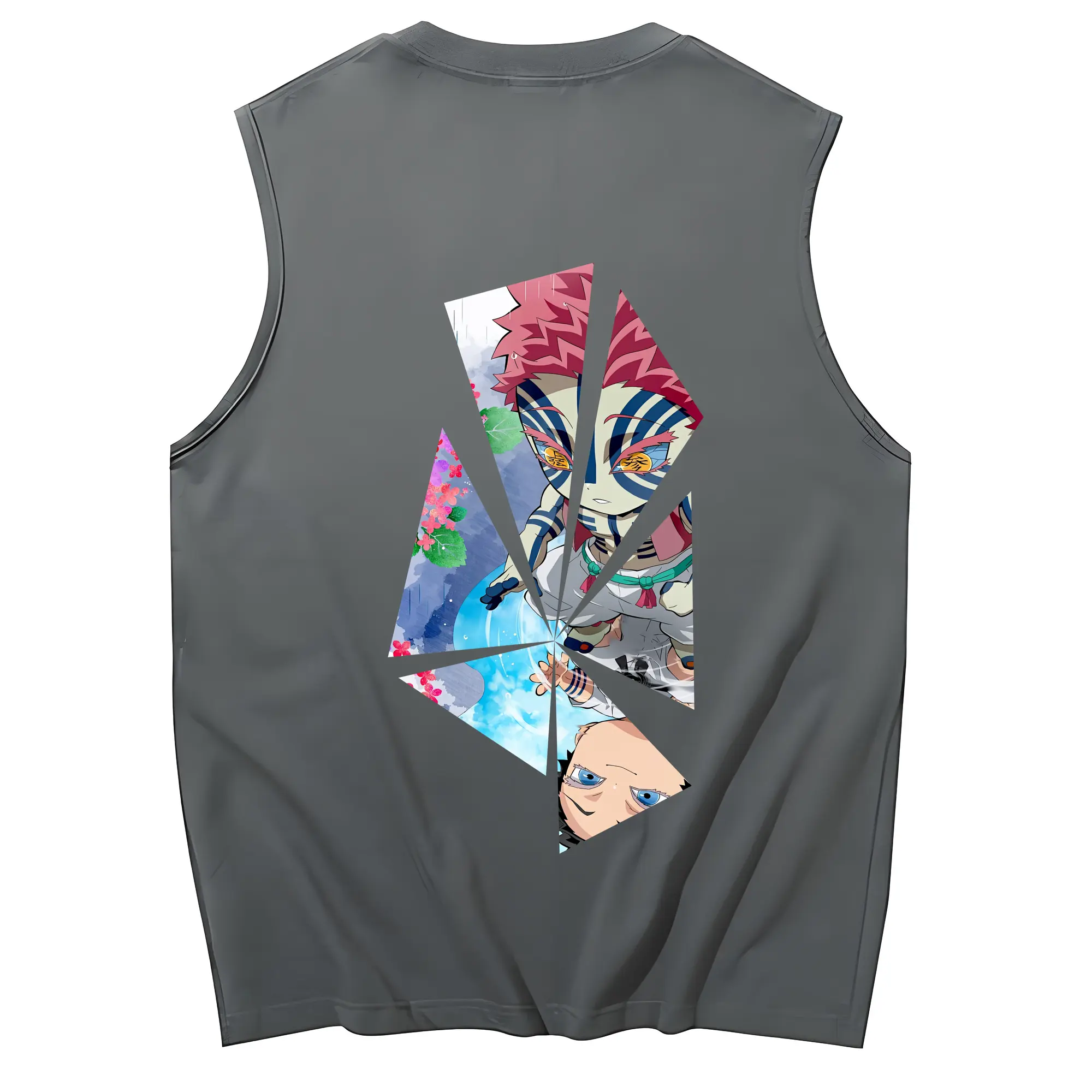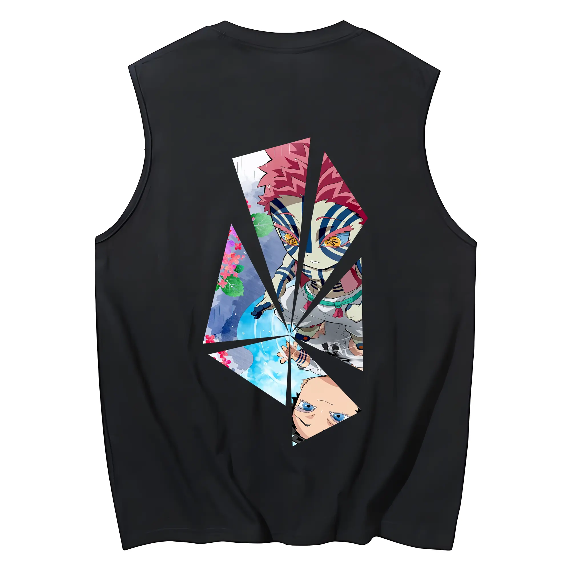 鬼滅の刃 グッズ,猗窩座 - コットン100% タンクトップ ・ 背面プリント ・ タイトシルエット ・ 快適 通気性 ・ スポーツ カジュアル 散歩用