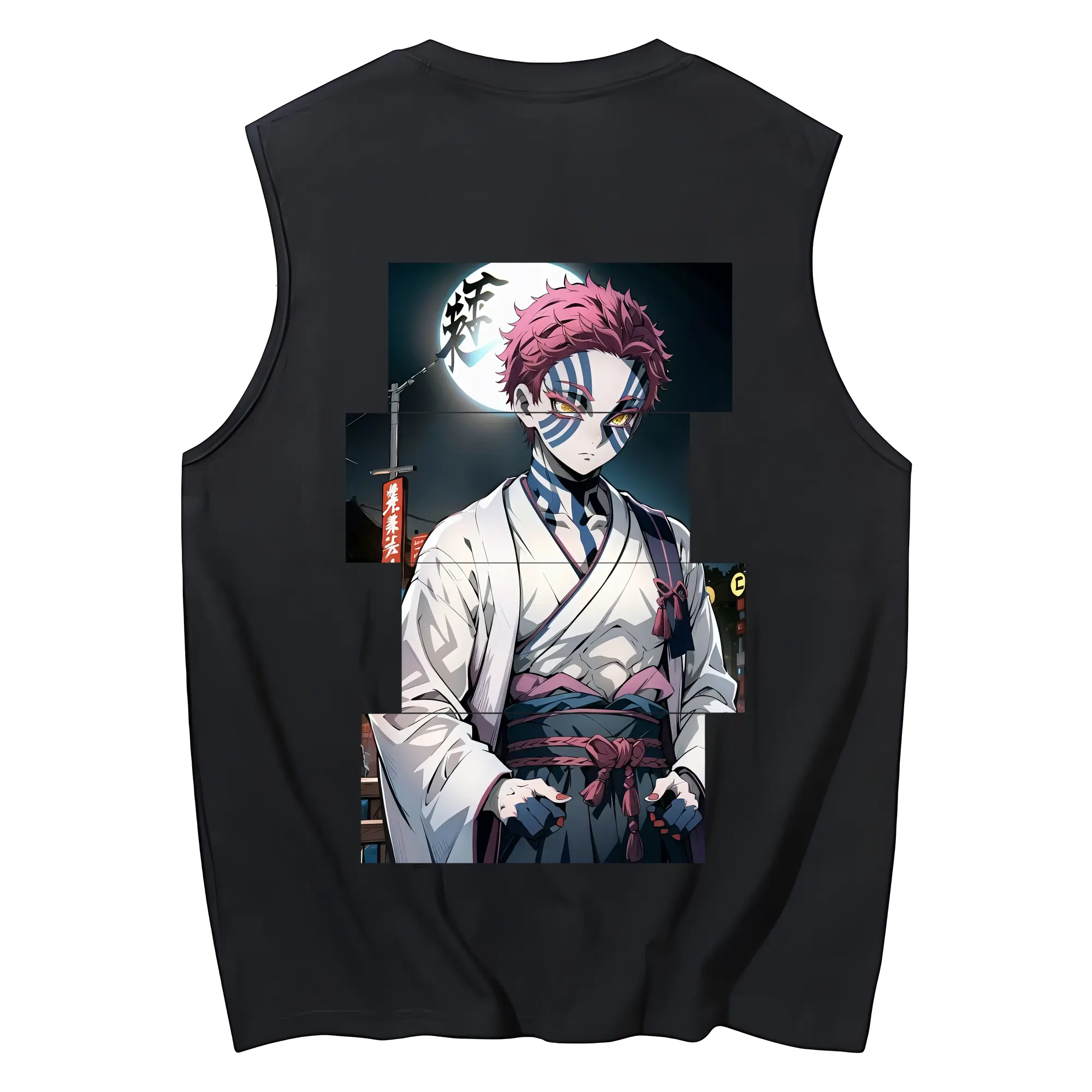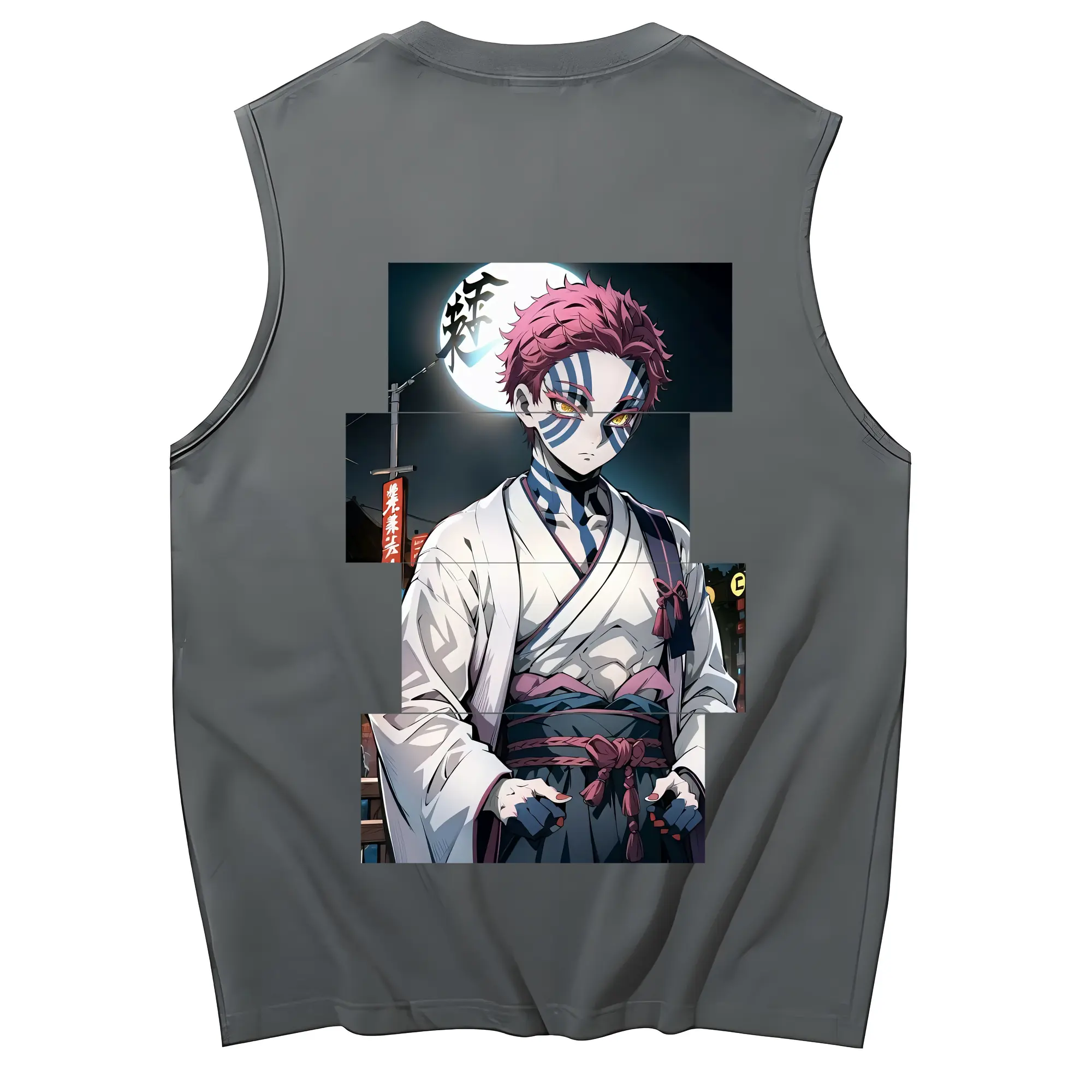 鬼滅の刃 グッズ,猗窩座 - コットン100% タンクトップ ・ 背面プリント ・ タイトシルエット ・ 快適 通気性 ・ スポーツ カジュアル 散歩用