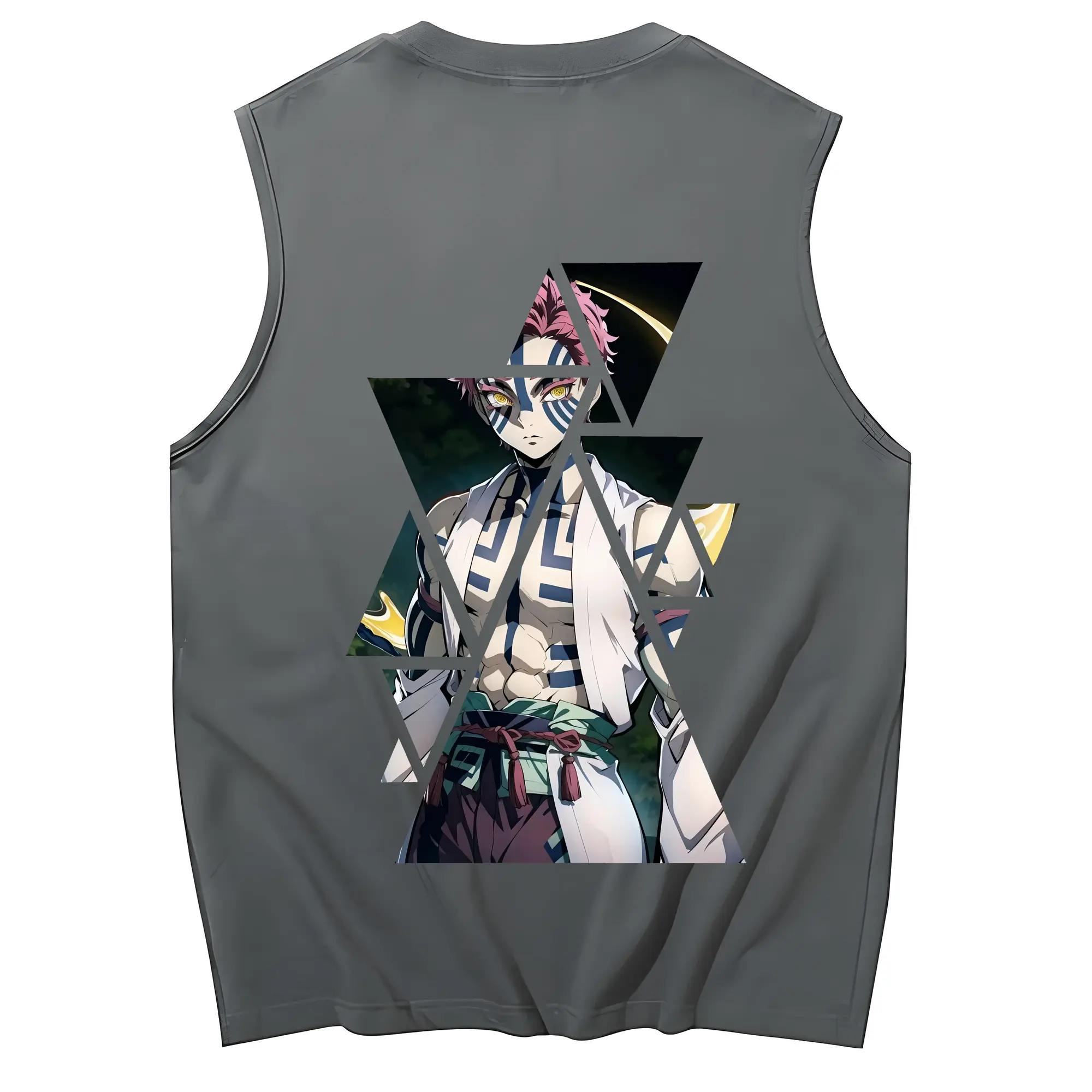 鬼滅の刃 グッズ,猗窩座 - コットン100% タンクトップ ・ 背面プリント ・ タイトシルエット ・ 快適 通気性 ・ スポーツ カジュアル 散歩用