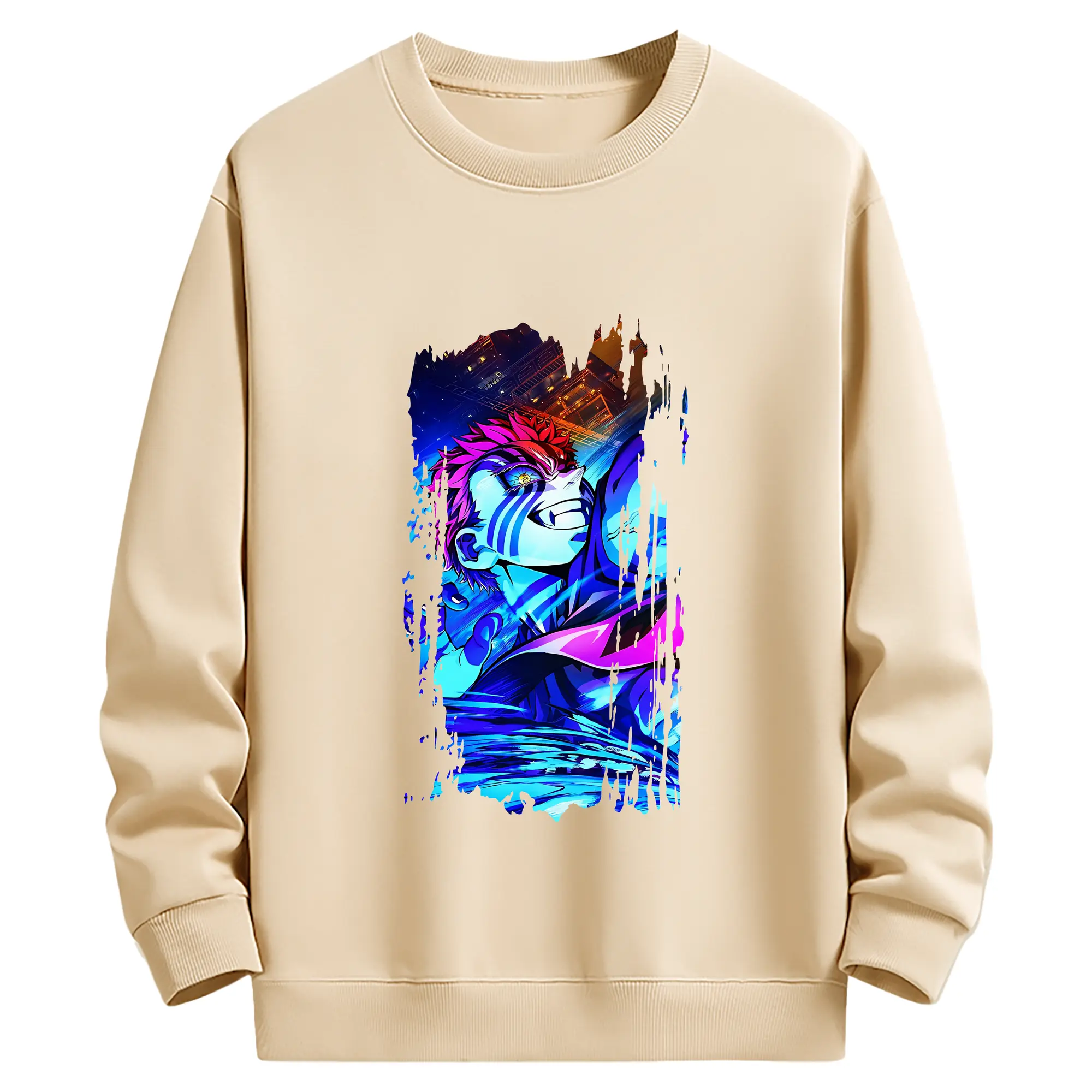 鬼滅の刃 グッズ,猗窩座 - 薄手 クルーネック スウェット 裏毛260g · ポリエステル 春秋向け カジュアル 男女兼用 · トレーナー デイリー スポーツ 散歩に最適