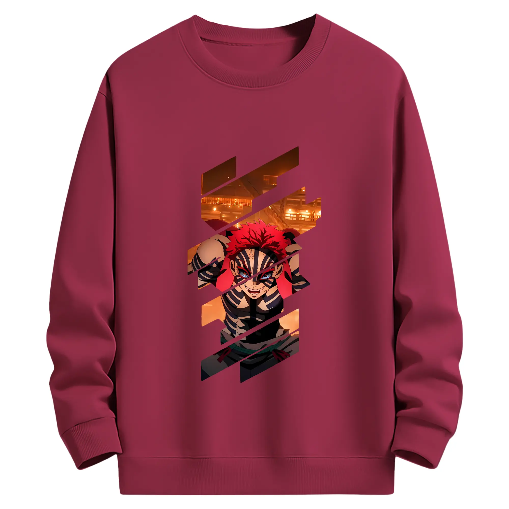 鬼滅の刃 グッズ,猗窩座 - 薄手 クルーネック スウェット 裏毛260g · ポリエステル 春秋向け カジュアル 男女兼用 · トレーナー デイリー スポーツ 散歩に最適