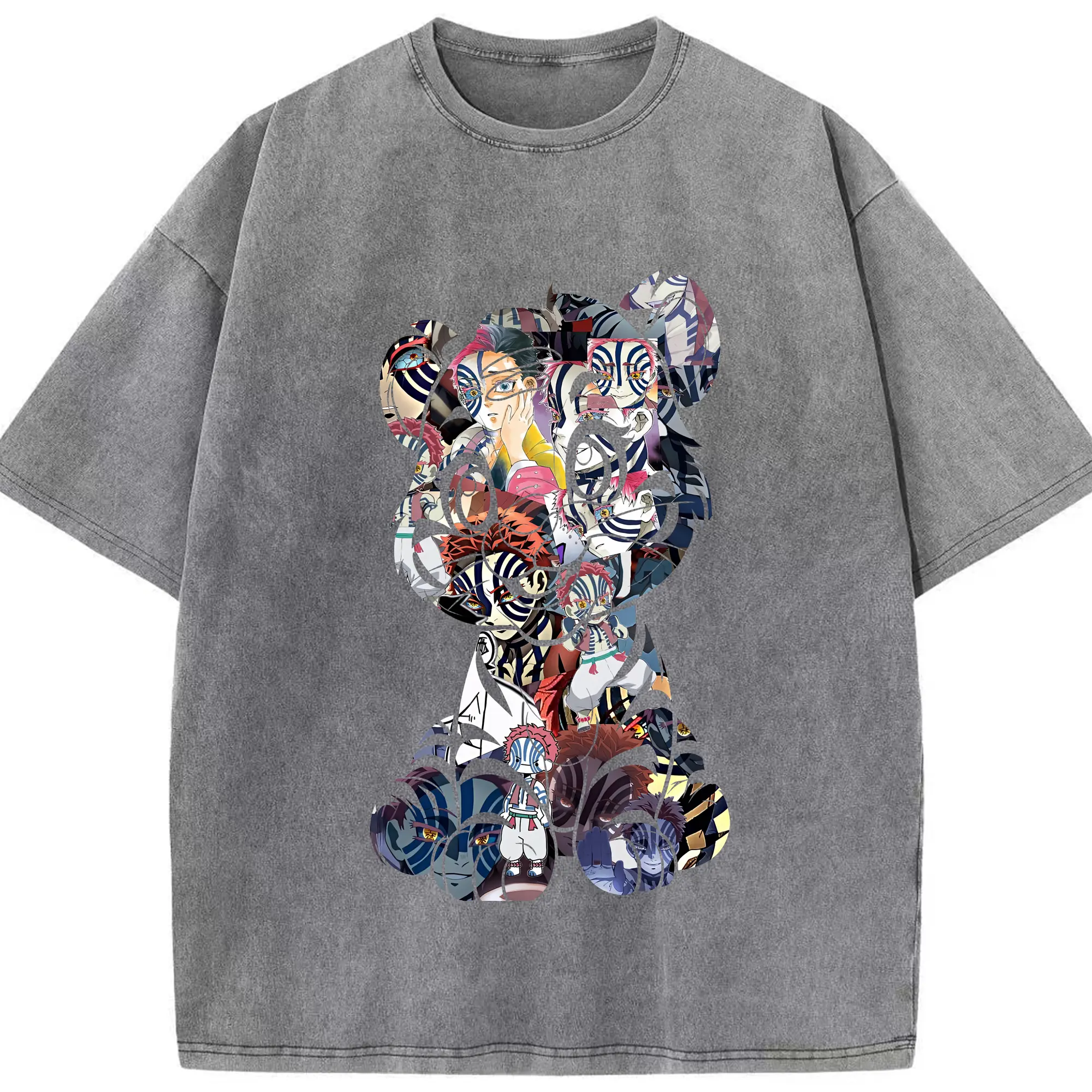 鬼滅の刃 グッズ,猗窩座 - 綿100% ヴィンテージ風 半袖Tシャツ ・ フロントプリント ・ 柔らか肌触り ・ 通気性 快適 ・ スポーツ カジュアル 外出用