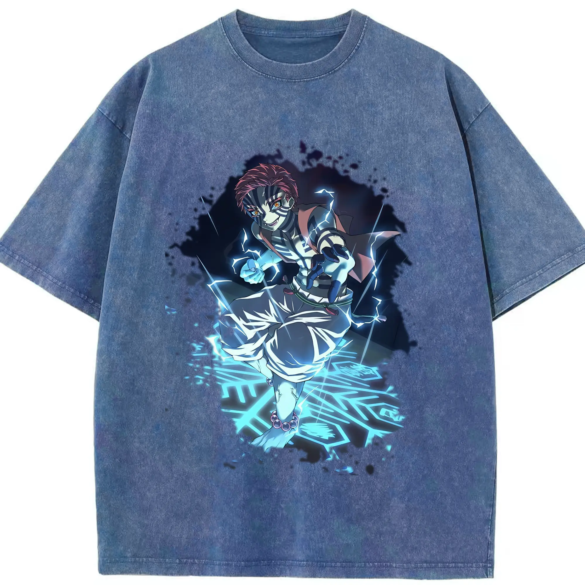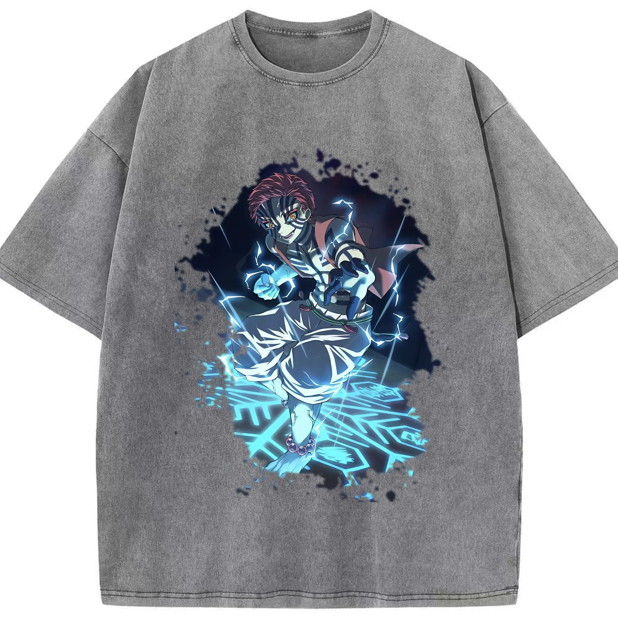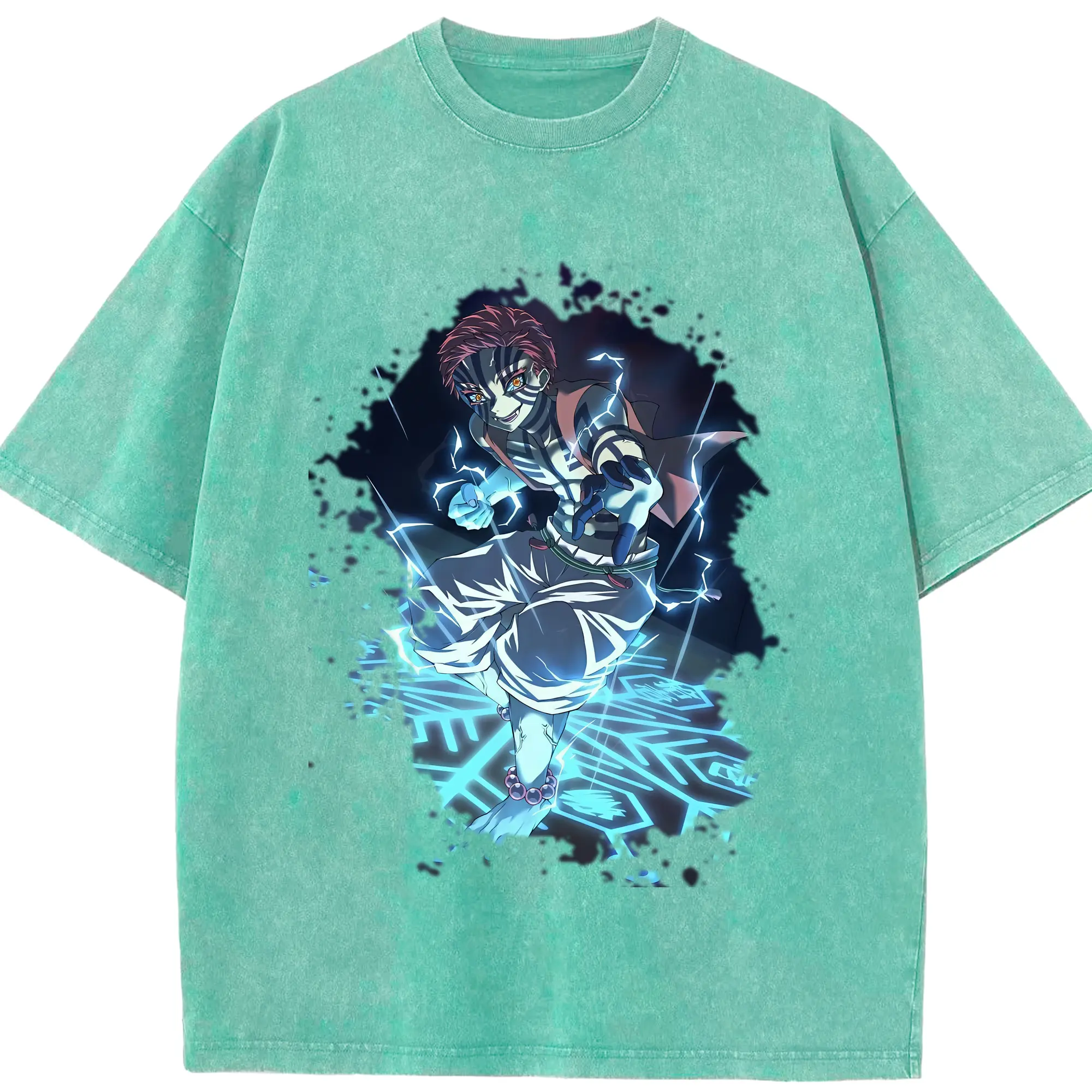 鬼滅の刃 グッズ,冨岡 義勇 - 綿100% ヴィンテージ風 半袖Tシャツ ・ フロントプリント ・ 柔らか肌触り ・ 通気性 快適 ・ スポーツ カジュアル 外出用