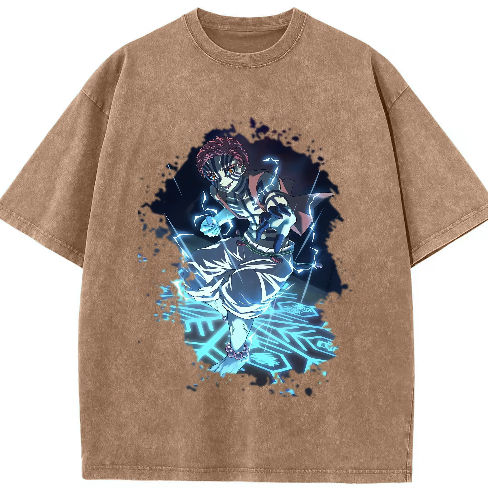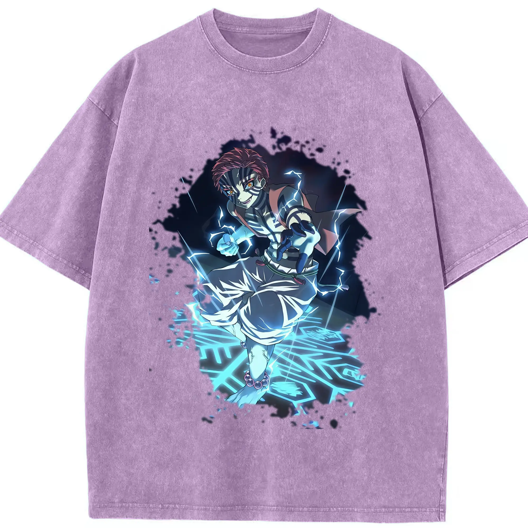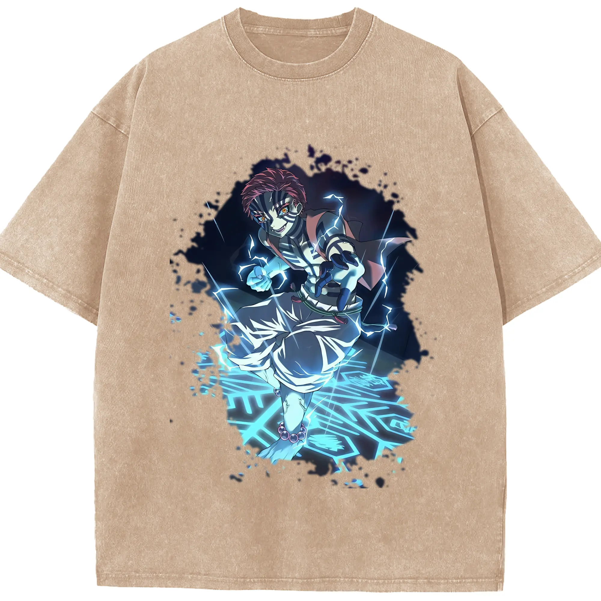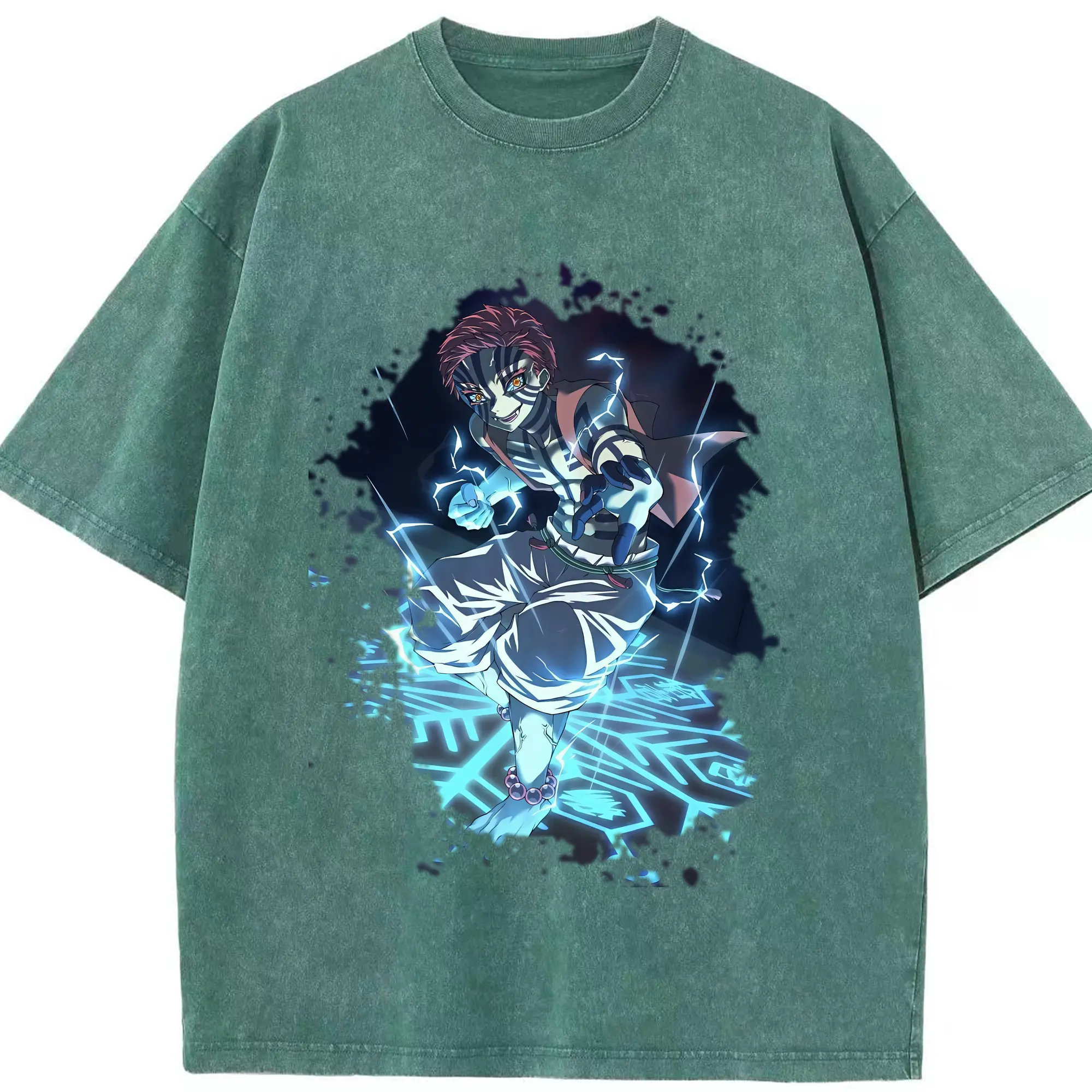 鬼滅の刃 グッズ,冨岡 義勇 - 綿100% ヴィンテージ風 半袖Tシャツ ・ フロントプリント ・ 柔らか肌触り ・ 通気性 快適 ・ スポーツ カジュアル 外出用