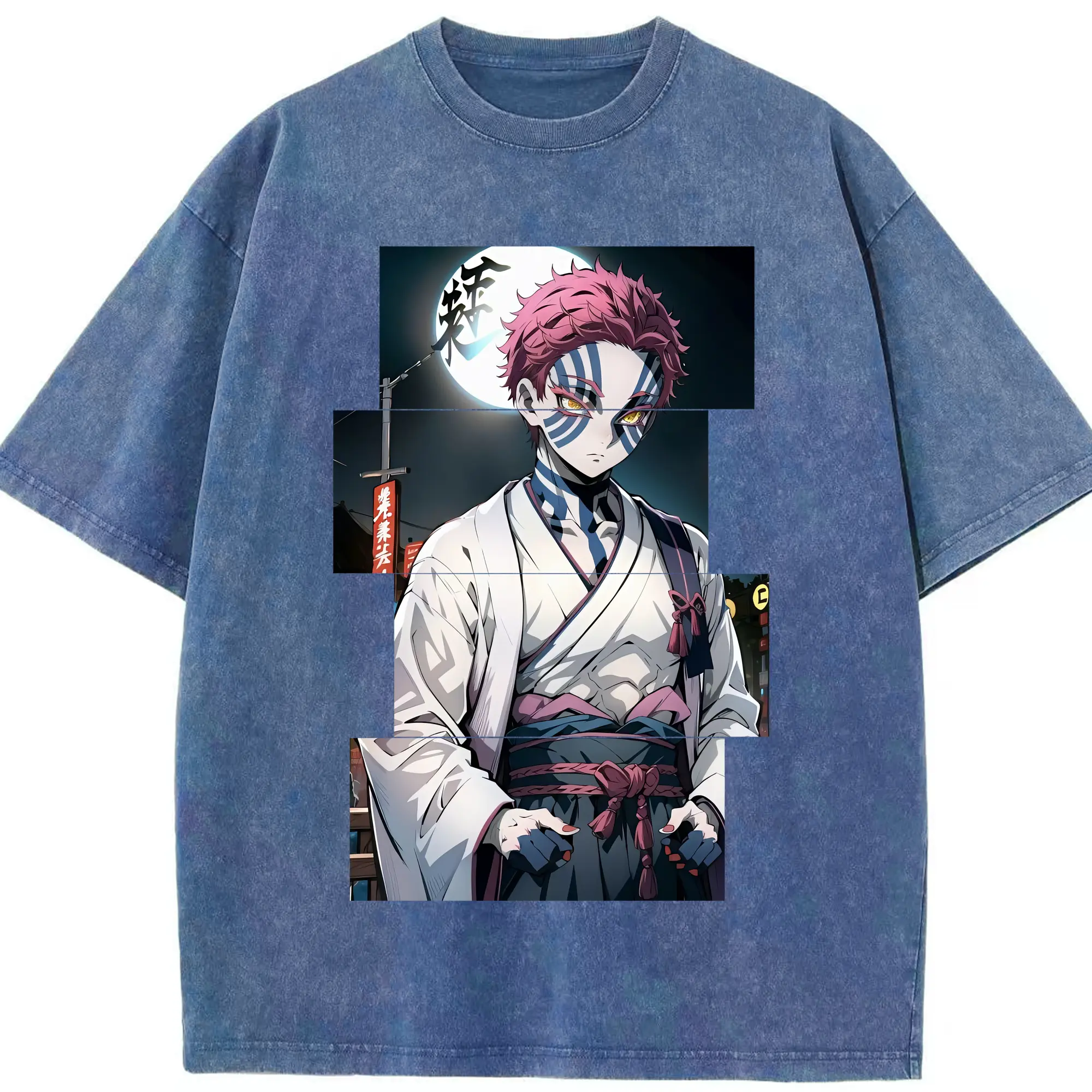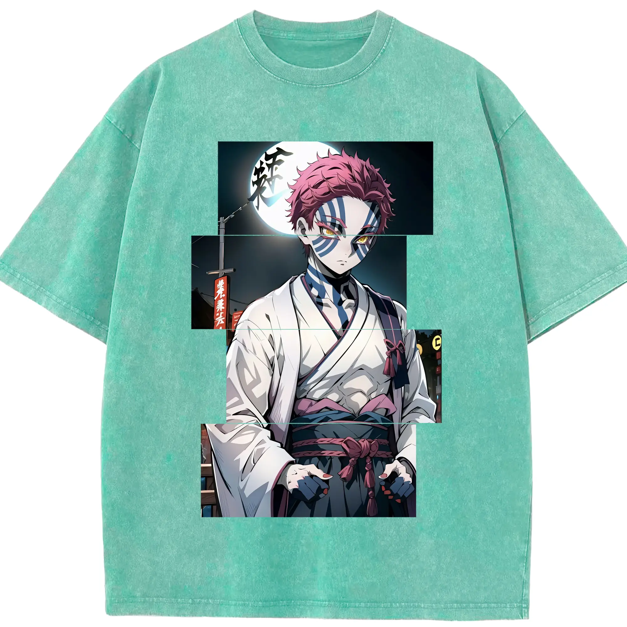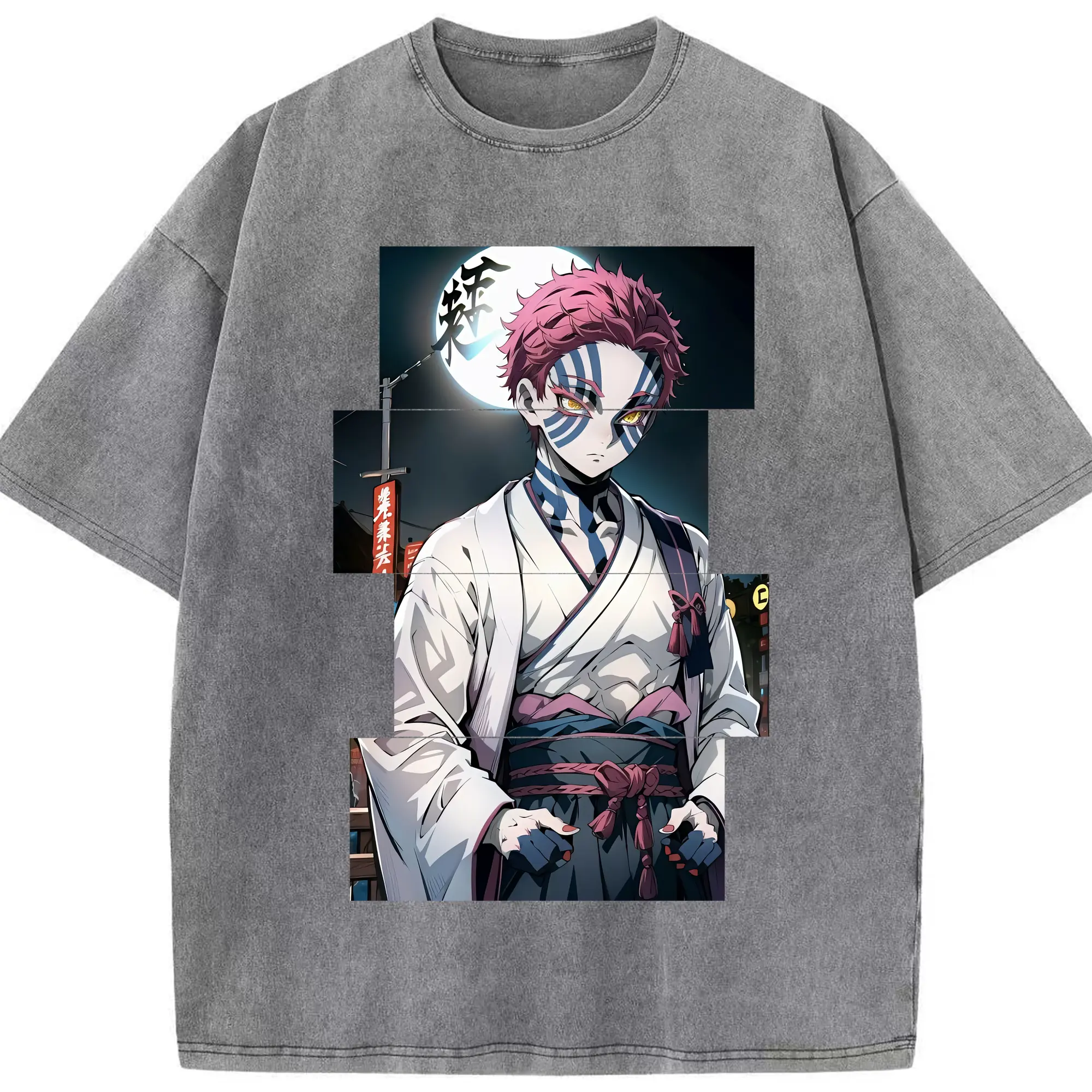 鬼滅の刃 グッズ,猗窩座 - 綿100% 半袖Tシャツ ・ フロントプリント ・ 快適 通気性 ・ 日常使い 散歩 スポーツ用
