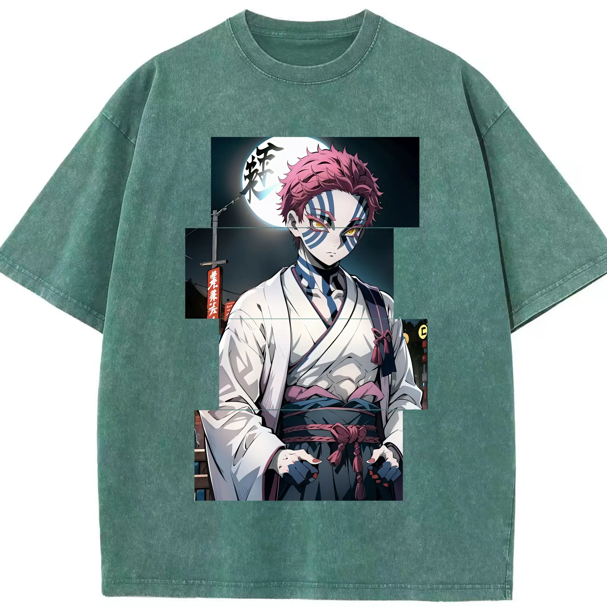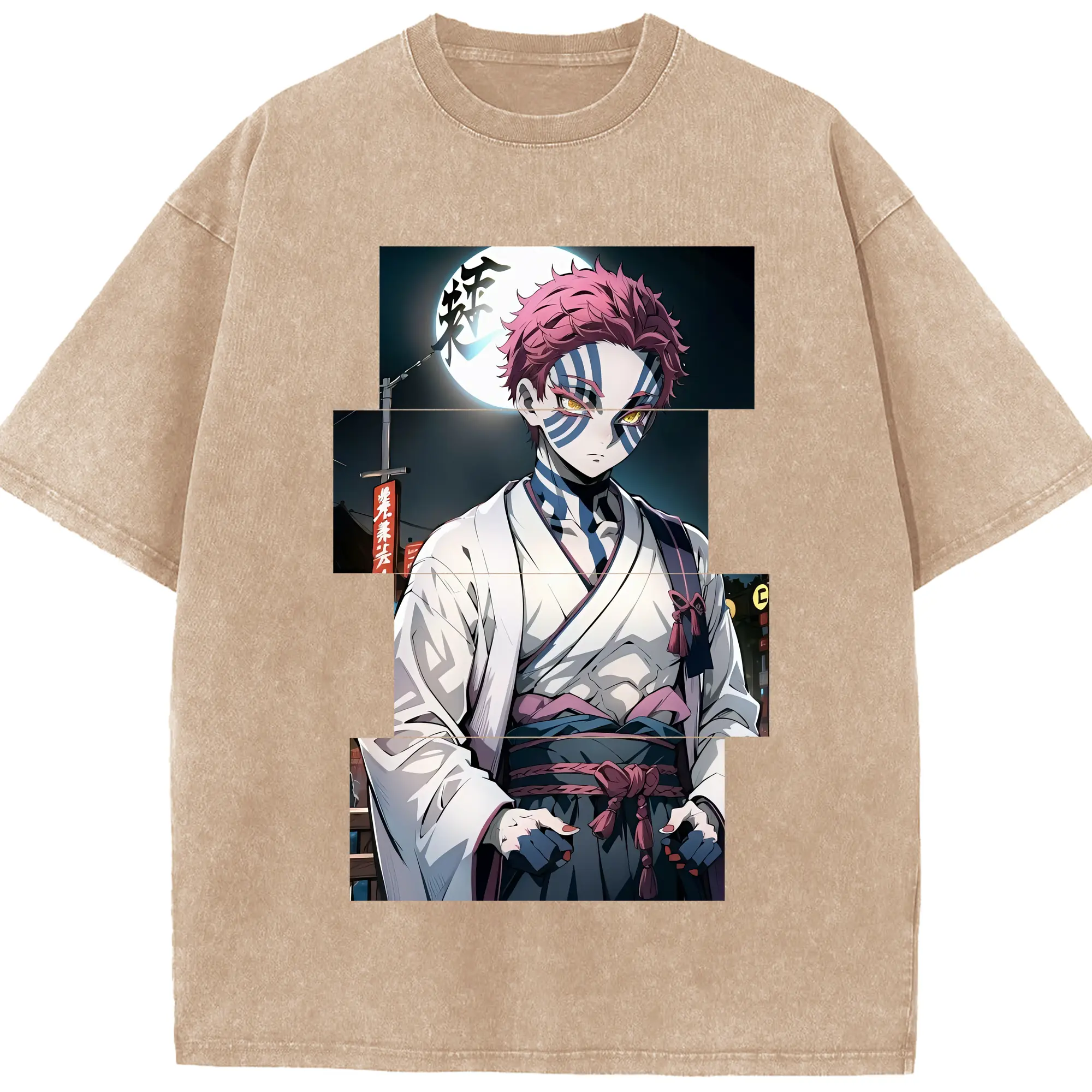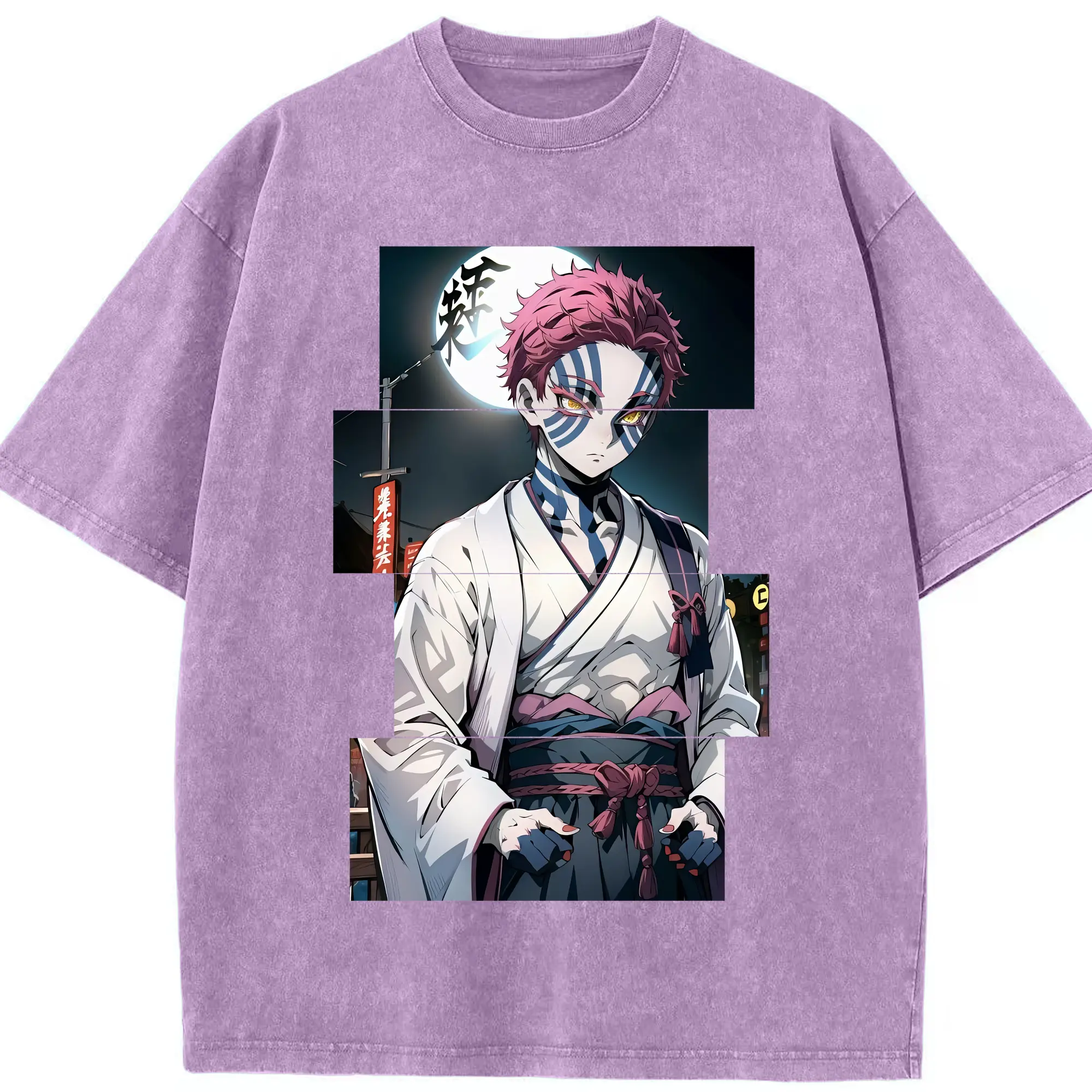 鬼滅の刃 グッズ,猗窩座 - 綿100% 半袖Tシャツ ・ フロントプリント ・ 快適 通気性 ・ 日常使い 散歩 スポーツ用