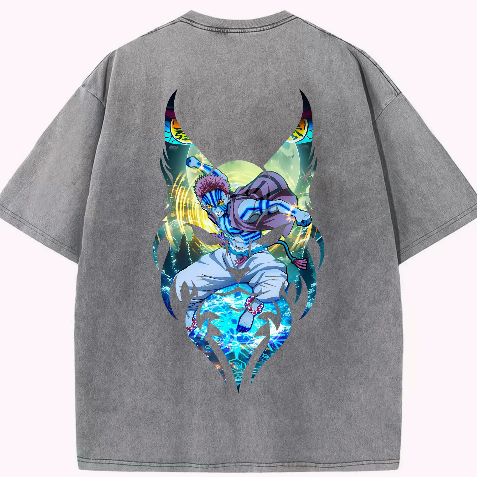 鬼滅の刃 グッズ,猗窩座 - 綿100% 半袖Tシャツ ・ バックプリント ・ 快適 通気性 ・ 日常使い 散歩 スポーツ用