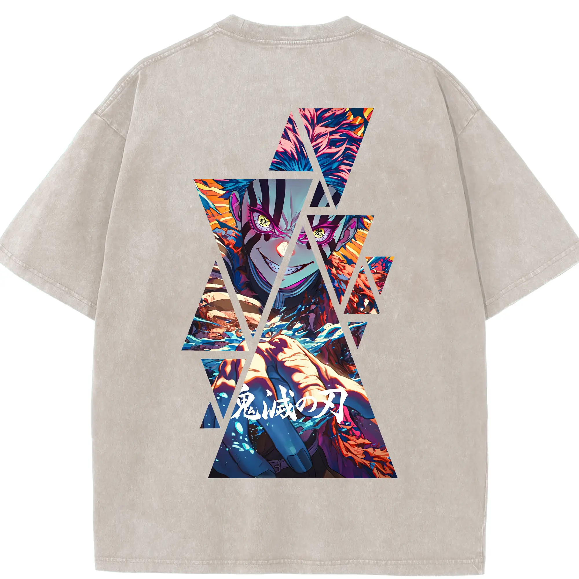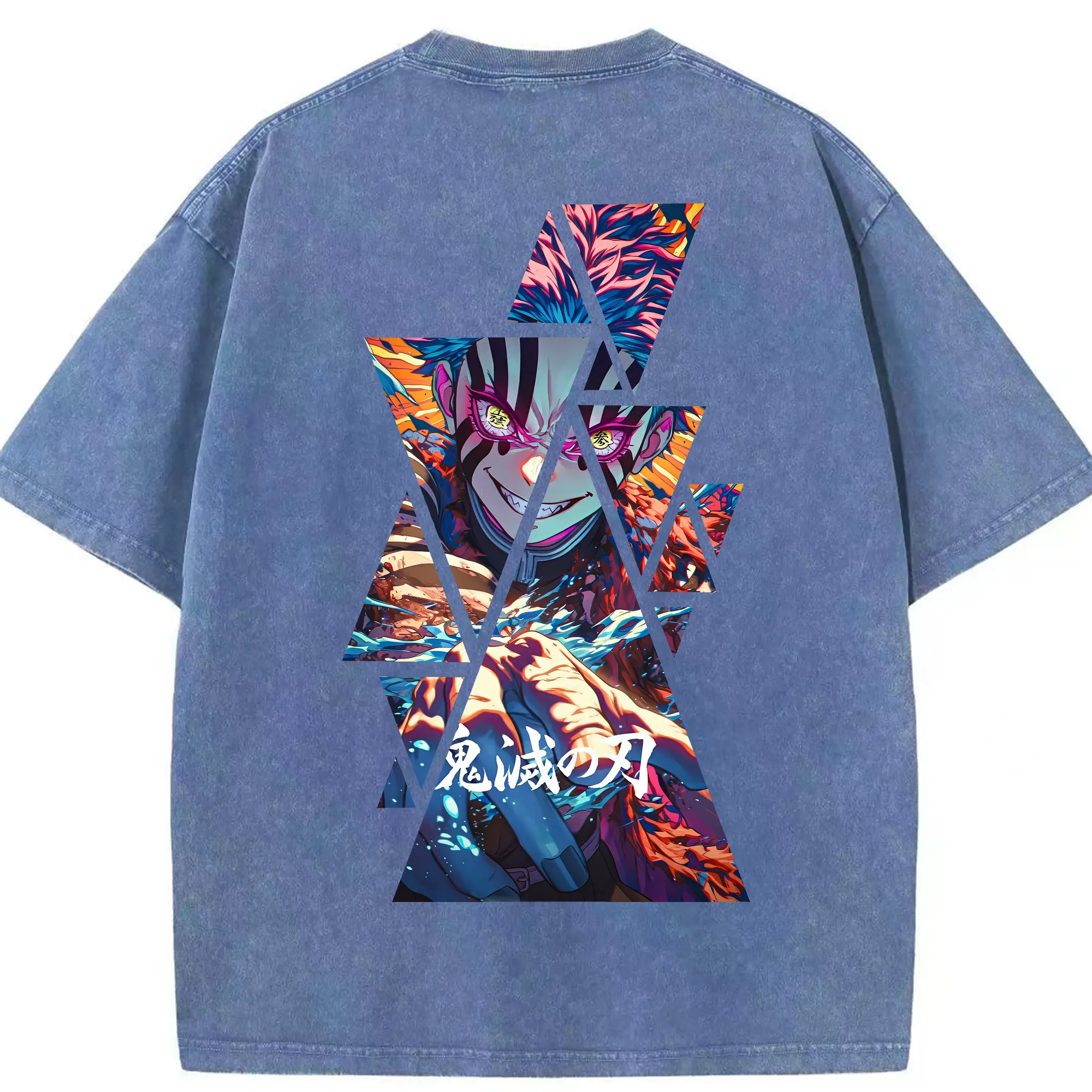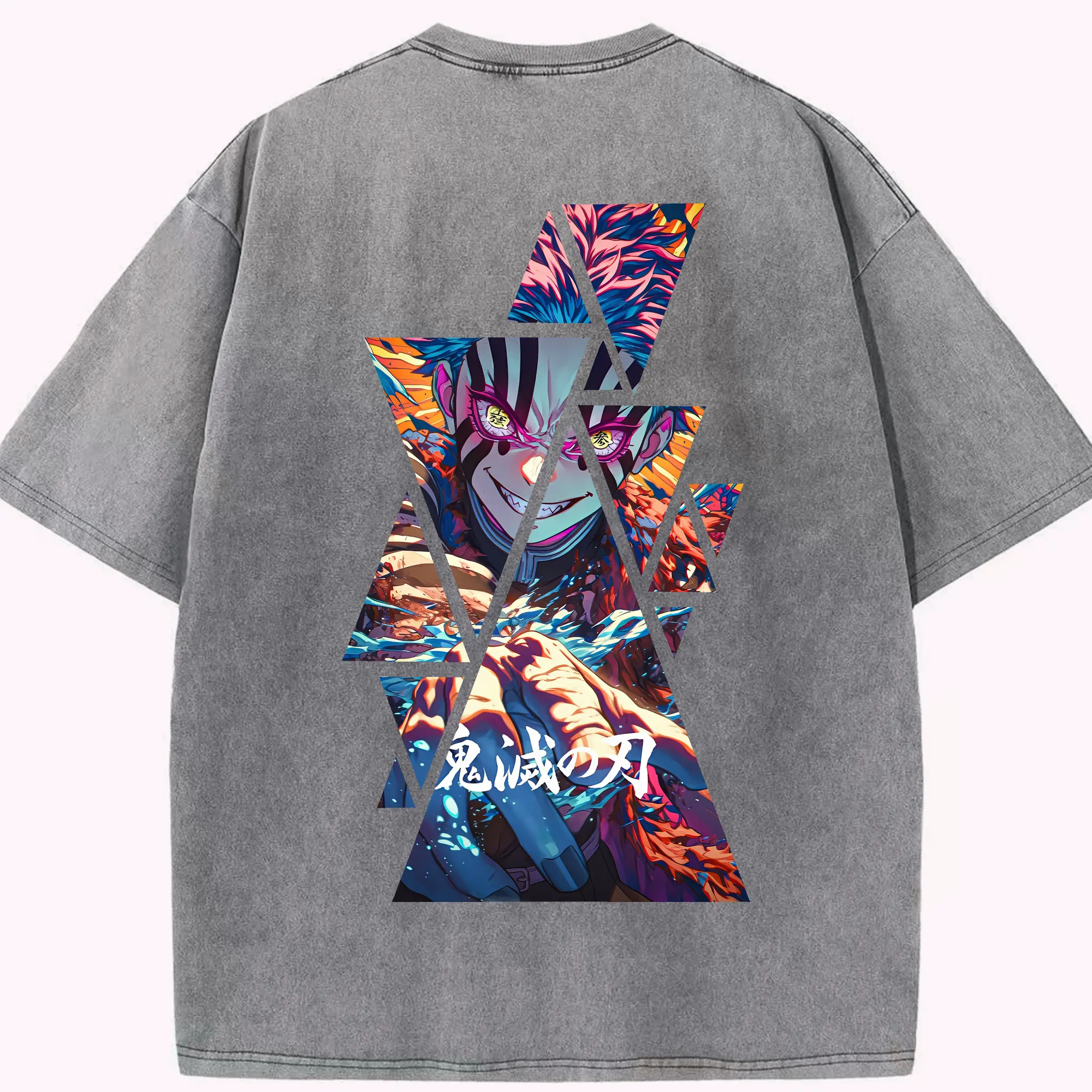 鬼滅の刃 グッズ,冨岡 義勇 - 綿100% ヴィンテージ風 半袖Tシャツ ・ 背面プリント ・ 柔らか肌触り ・ 通気性 快適 ・ スポーツ カジュアル 外出用