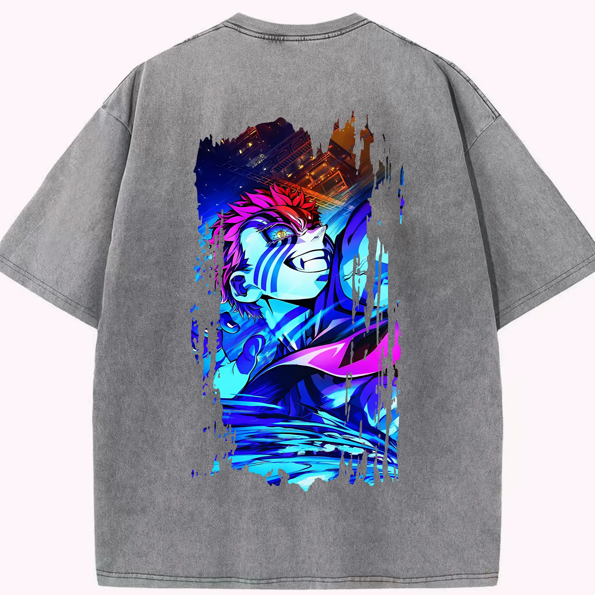 鬼滅の刃 グッズ,猗窩座 - 綿100% 半袖Tシャツ ・ バックプリント ・ 快適 通気性 ・ 日常使い 散歩 スポーツ用