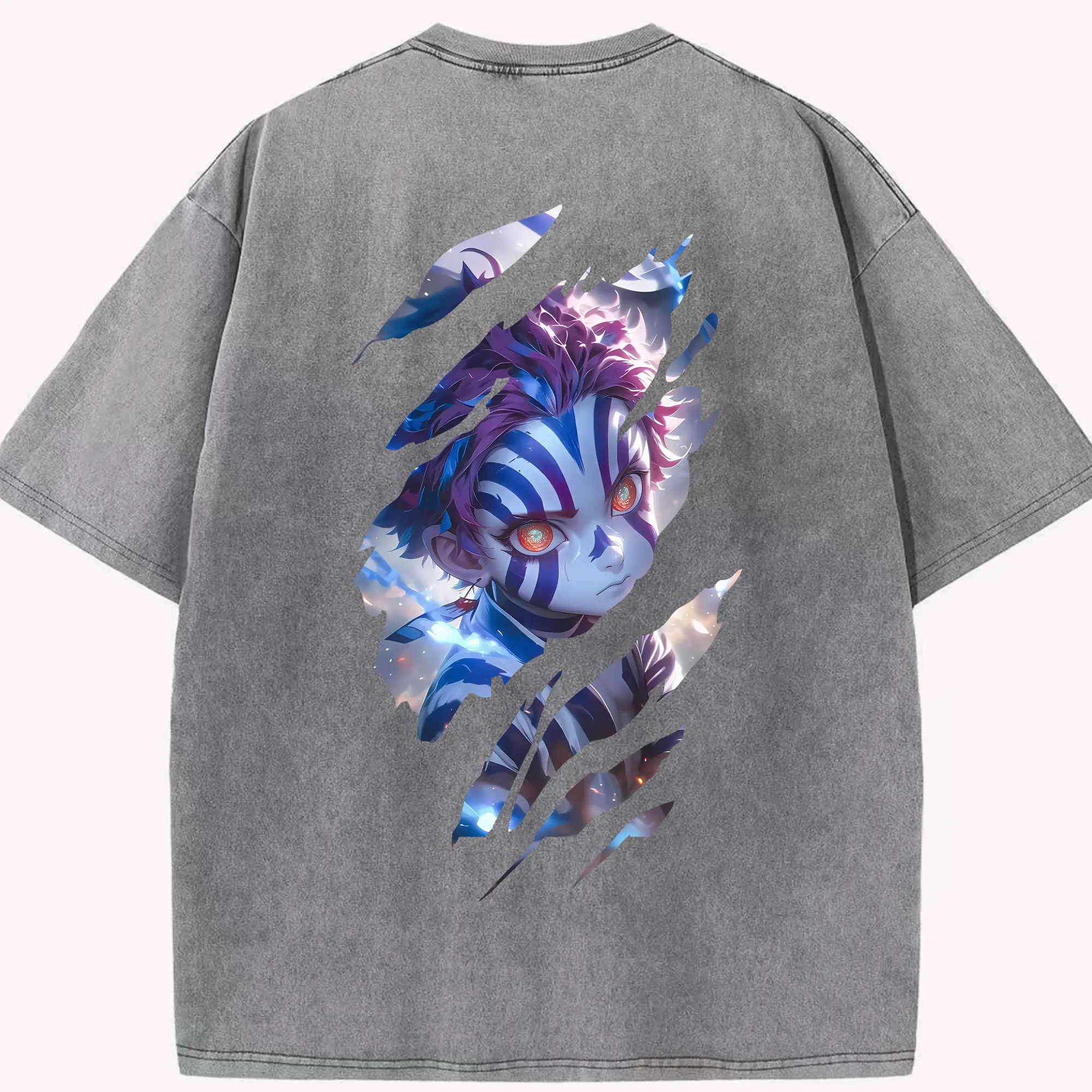 鬼滅の刃 グッズ,猗窩座 - 綿100% 半袖Tシャツ ・ バックプリント ・ 快適 通気性 ・ 日常使い 散歩 スポーツ用