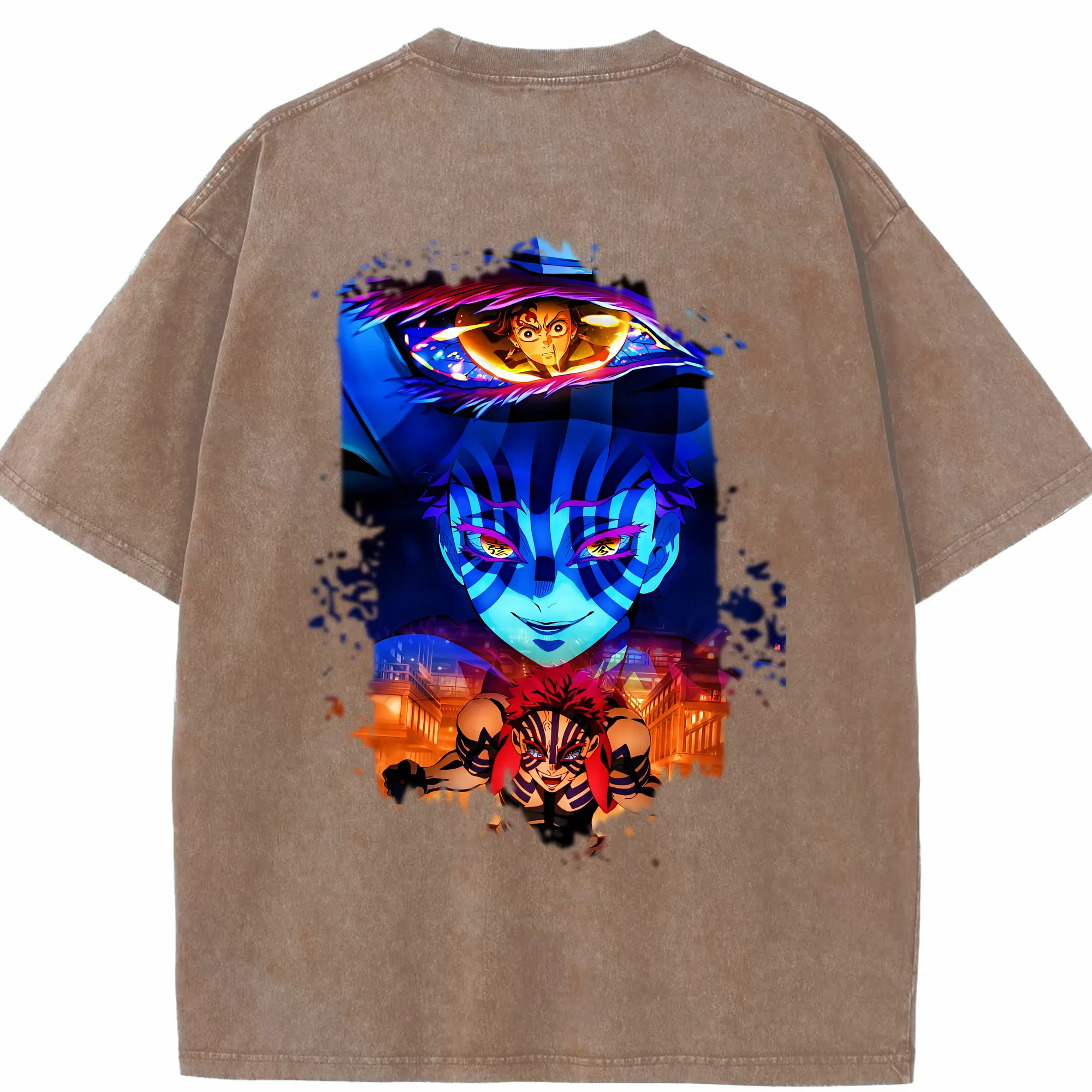 鬼滅の刃 グッズ,猗窩座 - 綿100% 半袖Tシャツ ・ バックプリント ・ 快適 通気性 ・ 日常使い 散歩 スポーツ用