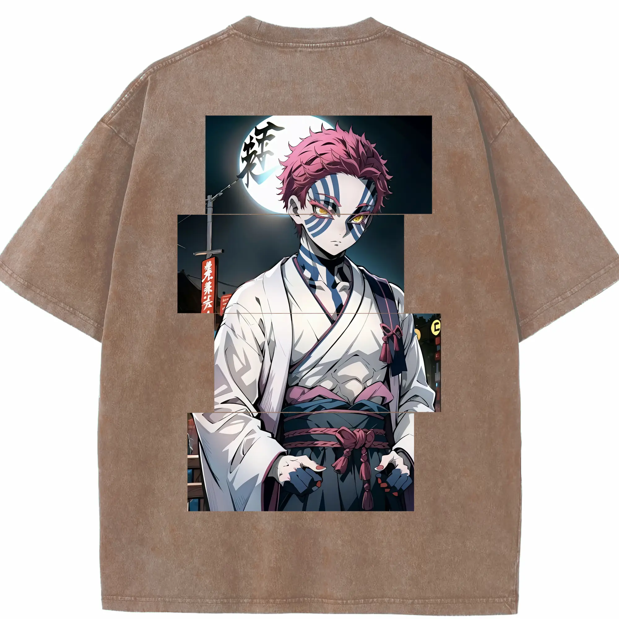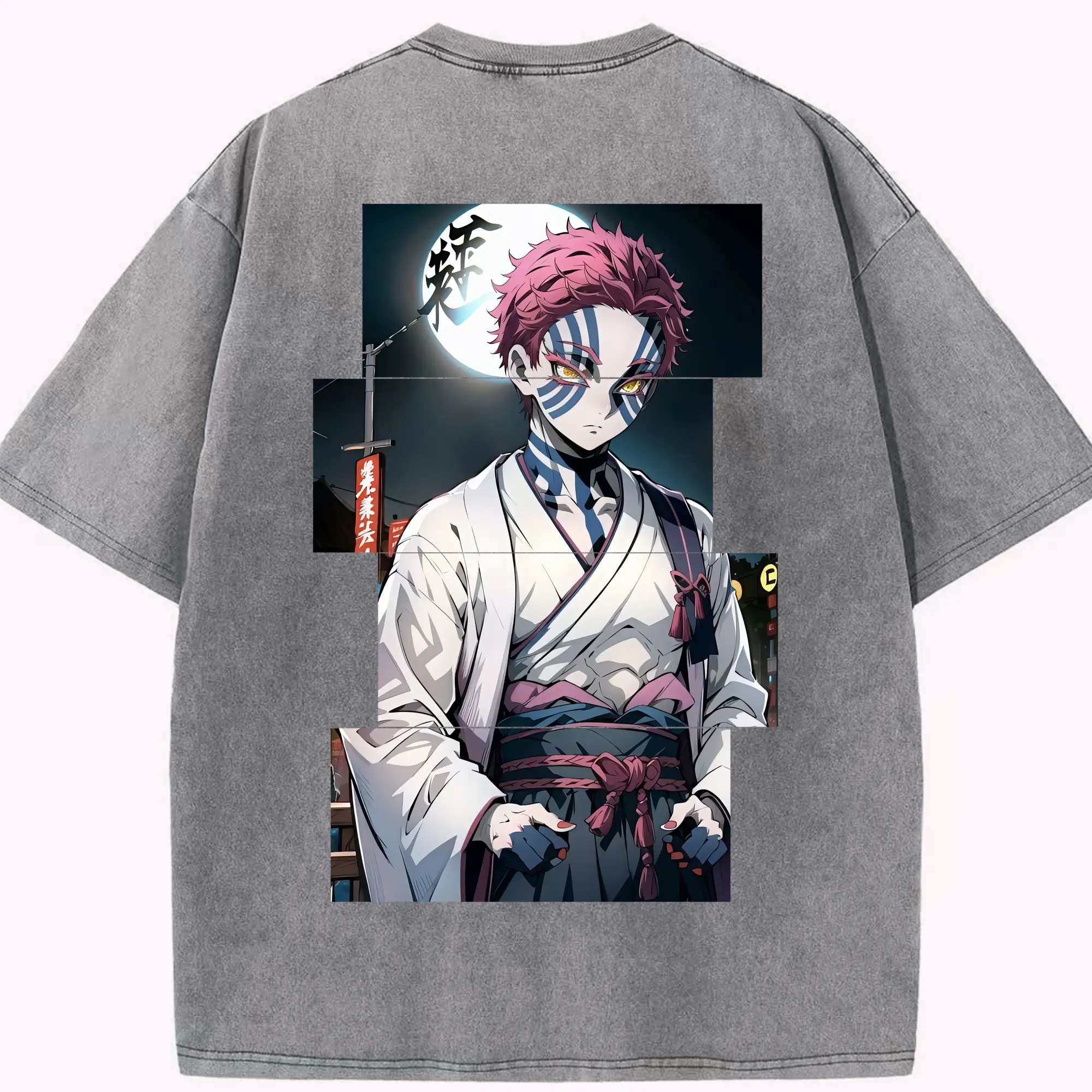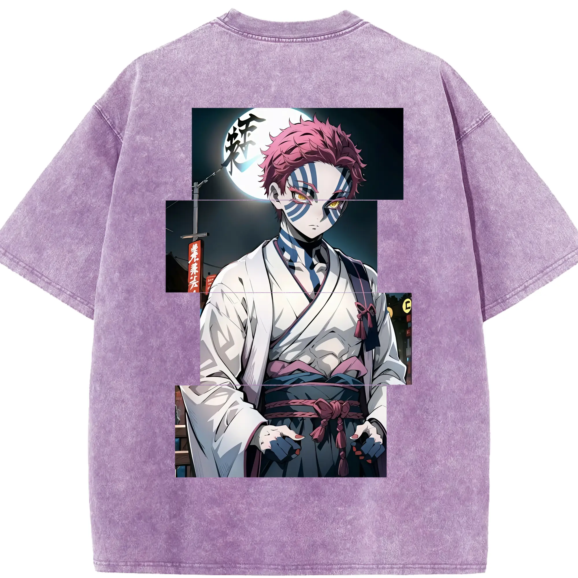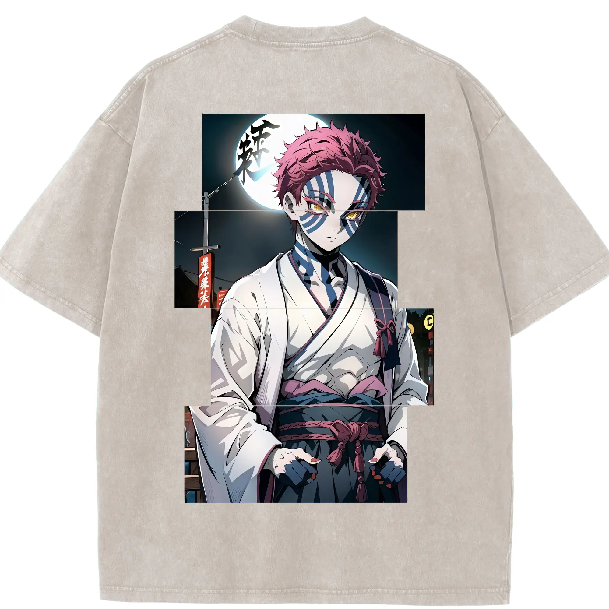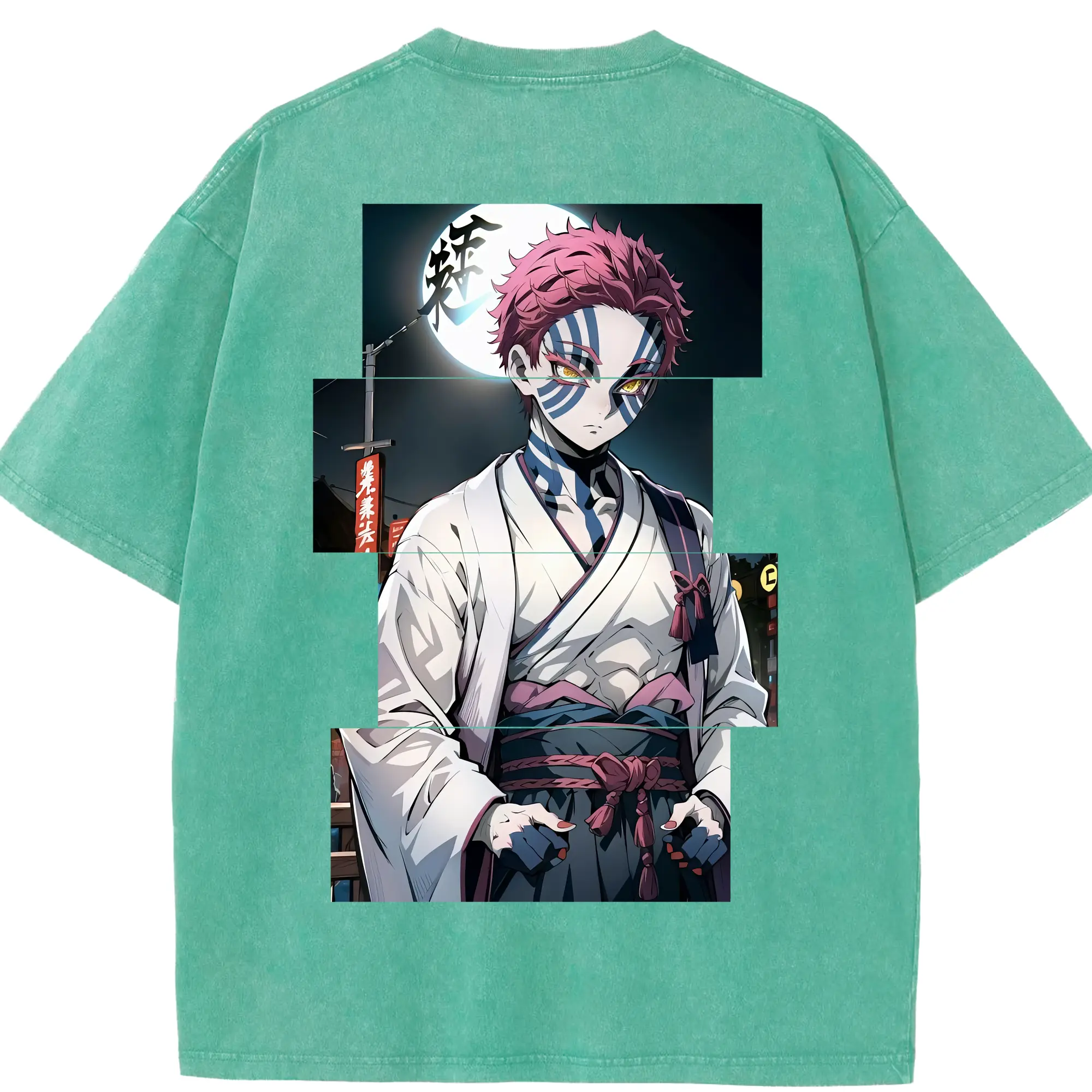 鬼滅の刃 グッズ,猗窩座 - 綿100% 半袖Tシャツ ・ バックプリント ・ 快適 通気性 ・ 日常使い 散歩 スポーツ用