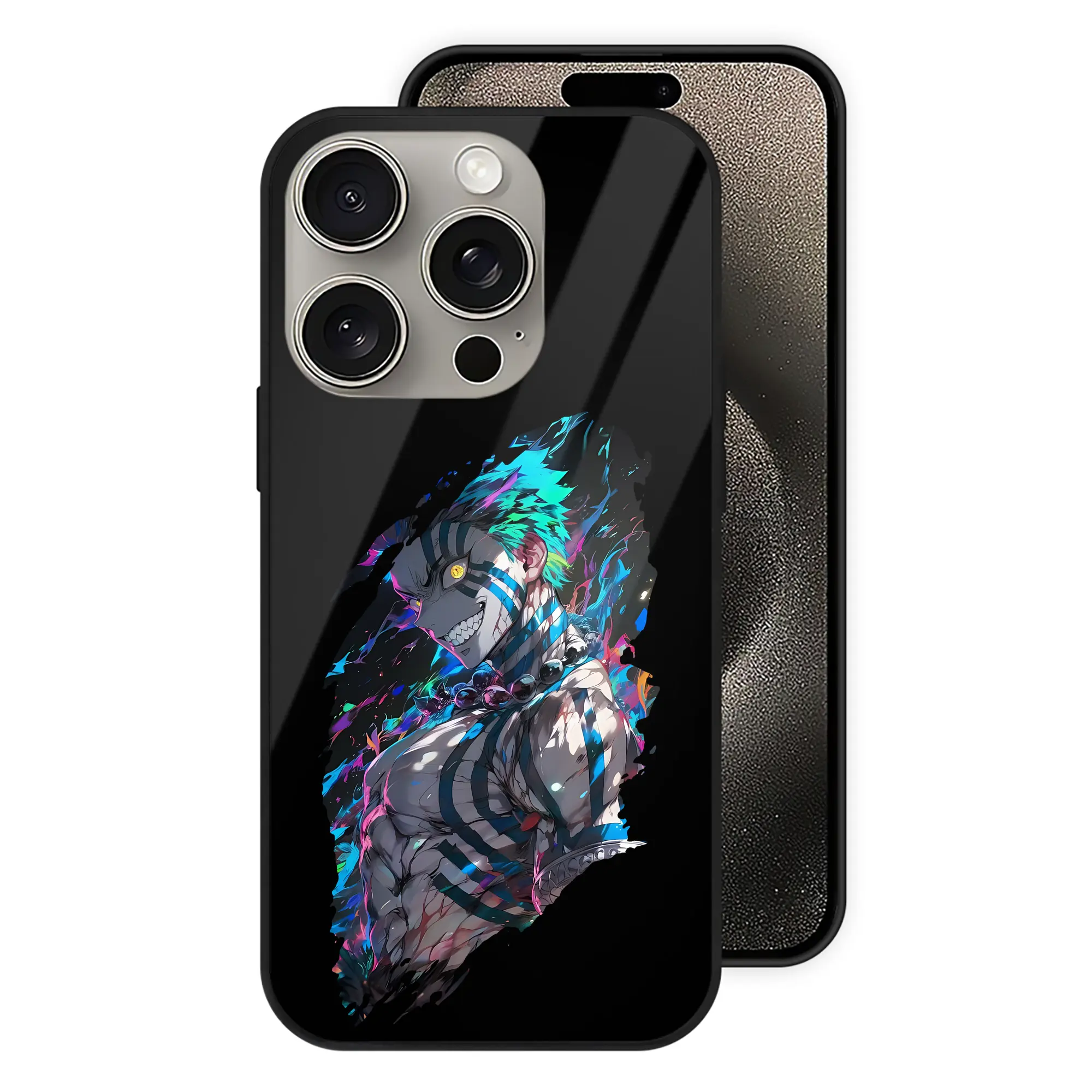 鬼滅の刃 グッズ,猗窩座 - IPhone15Pro対応 ・ スマホケース ・ 背面ガラス ・ TPU+強化ガラス ・ 耐衝撃 ・ 黄変防止 ・ ワイヤレス充電対応 ・ 3D立体ボタン