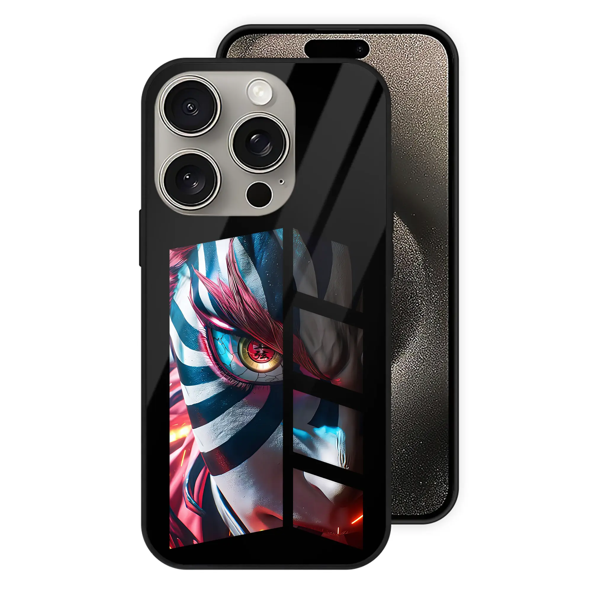 鬼滅の刃 グッズ,猗窩座 - IPhone15Pro対応 ・ スマホケース ・ 背面ガラス ・ TPU+強化ガラス ・ 耐衝撃 ・ 黄変防止 ・ ワイヤレス充電対応 ・ 3D立体ボタン