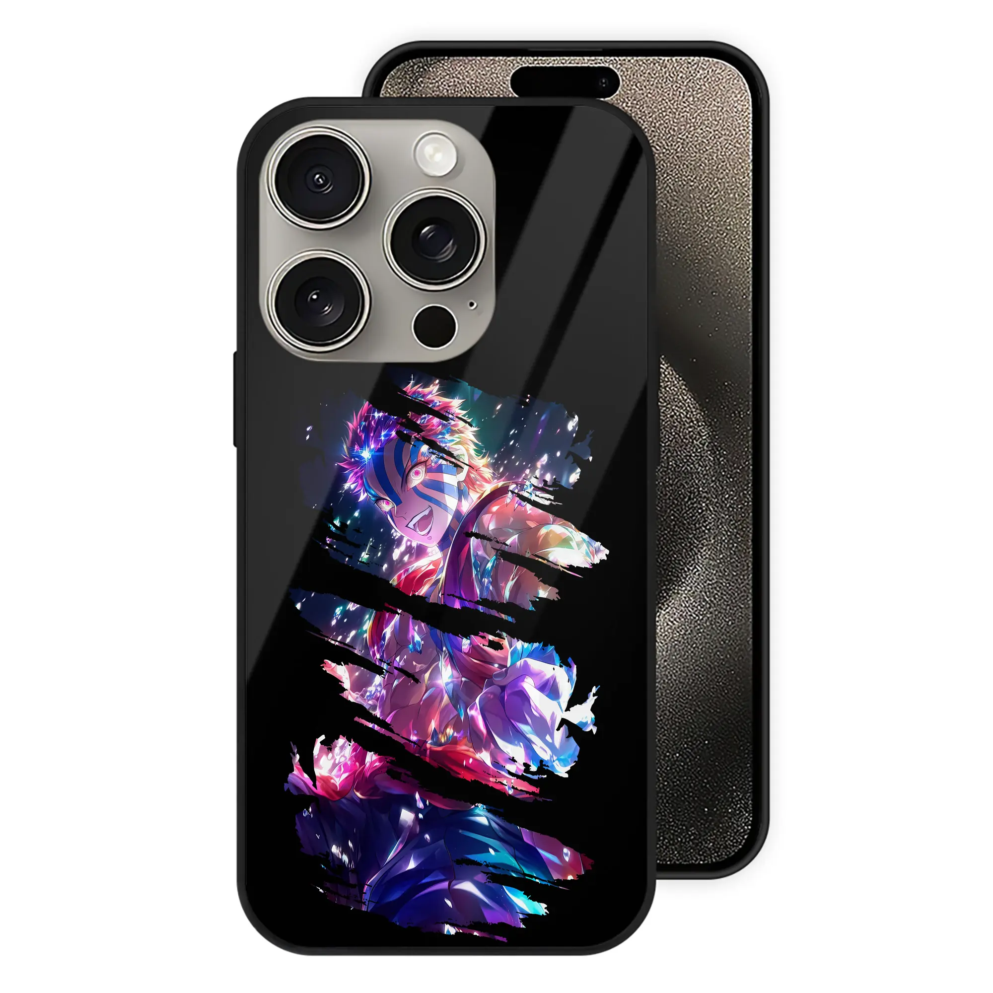 鬼滅の刃 グッズ,猗窩座 - IPhone15Pro対応 ・ スマホケース ・ 背面ガラス ・ TPU+強化ガラス ・ 耐衝撃 ・ 黄変防止 ・ ワイヤレス充電対応 ・ 3D立体ボタン