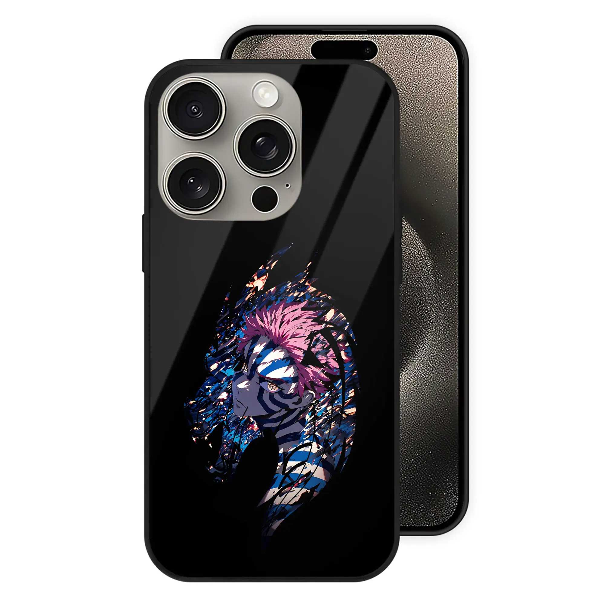 鬼滅の刃 グッズ,猗窩座 - IPhone15Pro対応 ・ スマホケース ・ 背面ガラス ・ TPU+強化ガラス ・ 耐衝撃 ・ 黄変防止 ・ ワイヤレス充電対応 ・ 3D立体ボタン