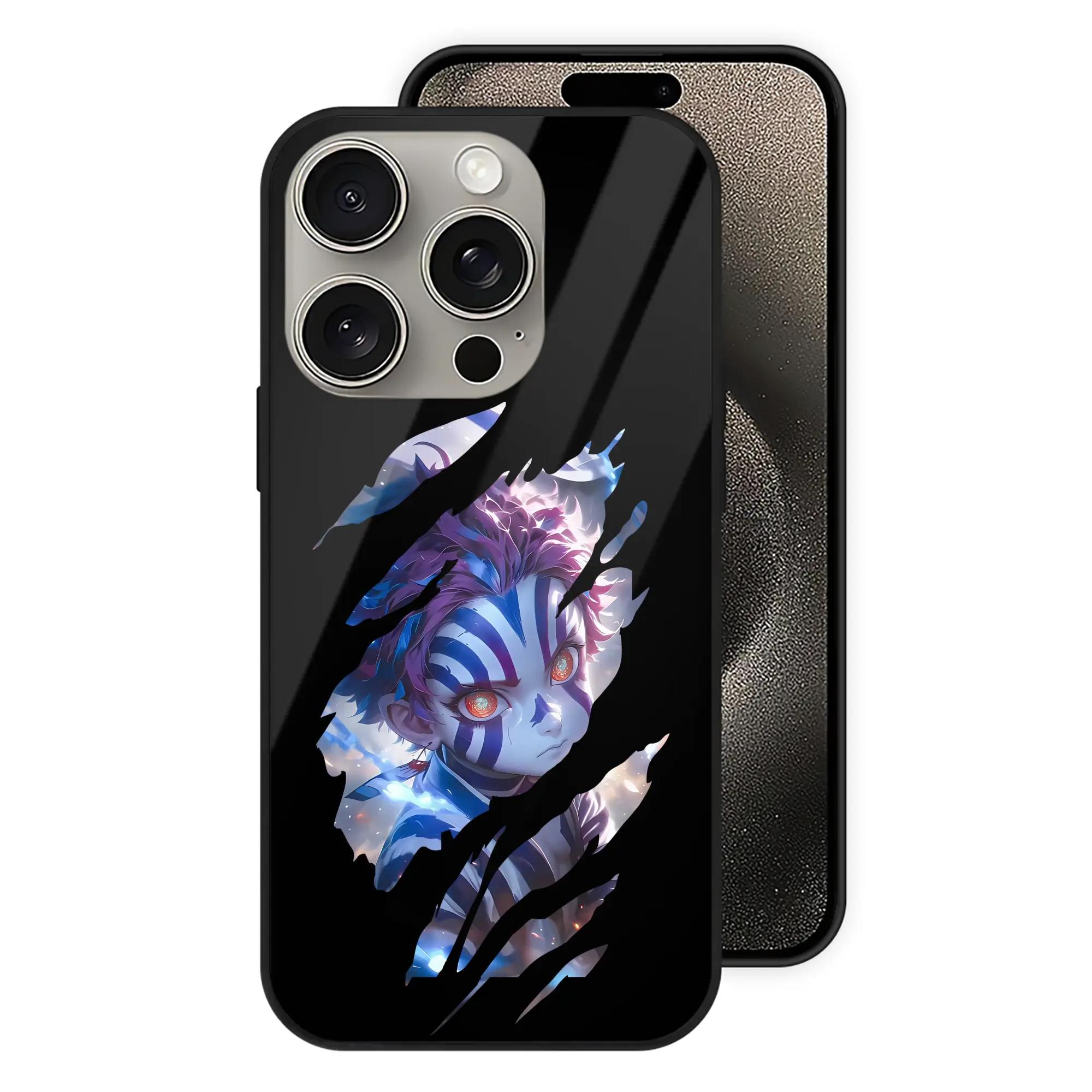 鬼滅の刃 グッズ,猗窩座 - IPhone15Pro対応 ・ スマホケース ・ 背面ガラス ・ TPU+強化ガラス ・ 耐衝撃 ・ 黄変防止 ・ ワイヤレス充電対応 ・ 3D立体ボタン