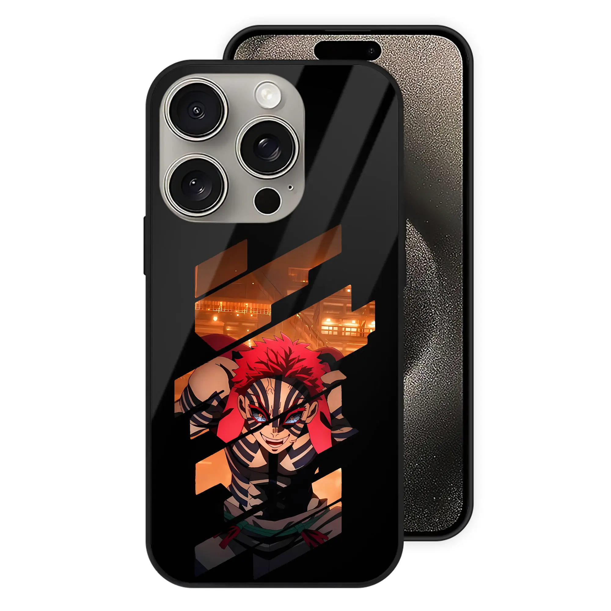鬼滅の刃 グッズ,猗窩座 - IPhone15Pro対応 ・ スマホケース ・ 背面ガラス ・ TPU+強化ガラス ・ 耐衝撃 ・ 黄変防止 ・ ワイヤレス充電対応 ・ 3D立体ボタン