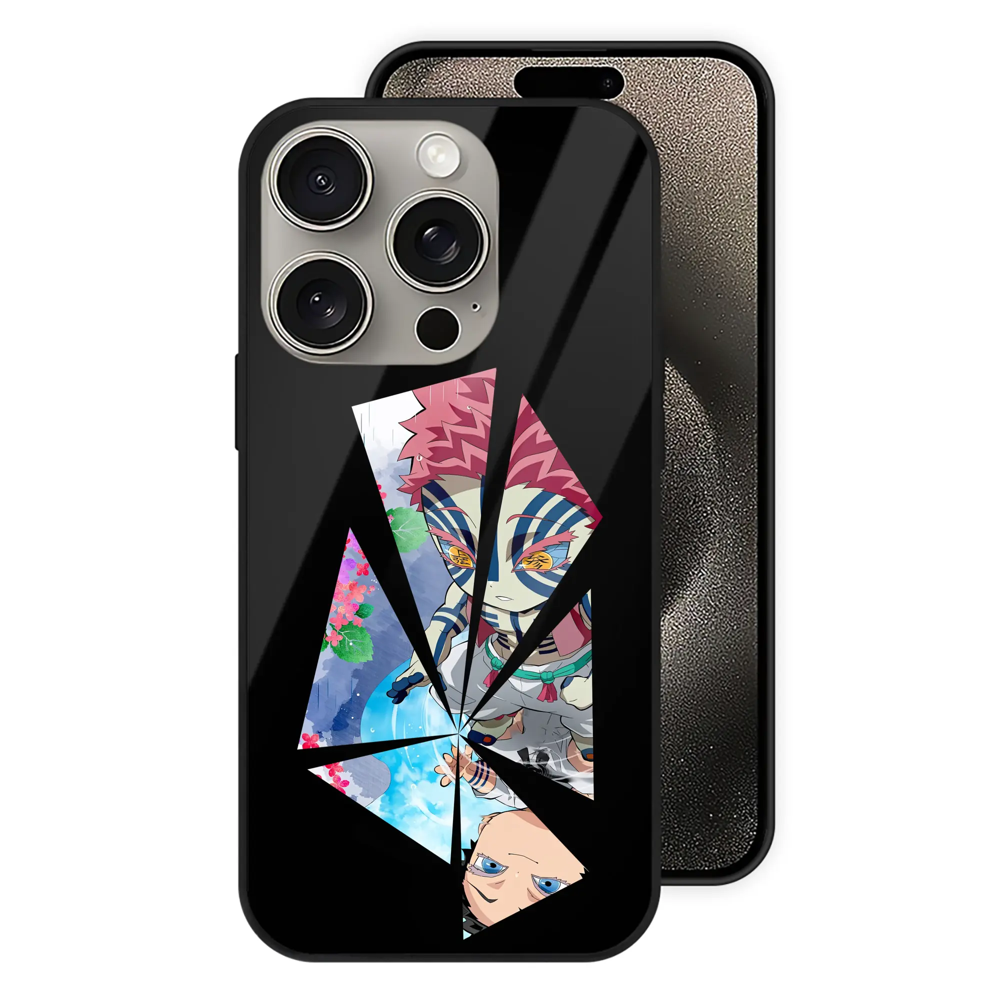鬼滅の刃 グッズ,猗窩座 - IPhone15Pro対応 ・ スマホケース ・ 背面ガラス ・ TPU+強化ガラス ・ 耐衝撃 ・ 黄変防止 ・ ワイヤレス充電対応 ・ 3D立体ボタン