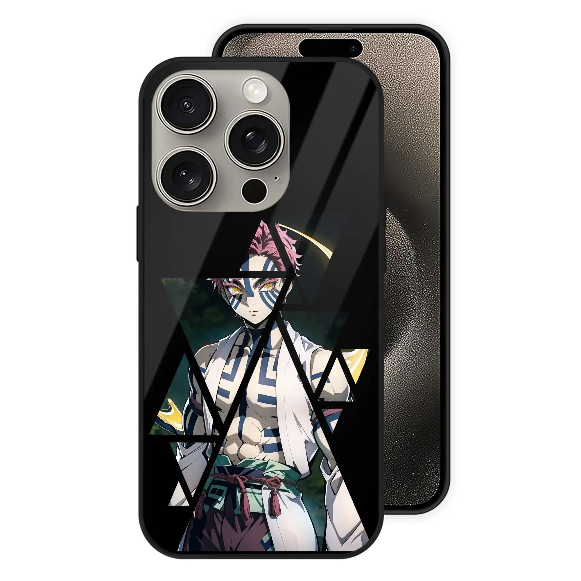 鬼滅の刃 グッズ,猗窩座 - IPhone15Pro対応 ・ スマホケース ・ 背面ガラス ・ TPU+強化ガラス ・ 耐衝撃 ・ 黄変防止 ・ ワイヤレス充電対応 ・ 3D立体ボタン