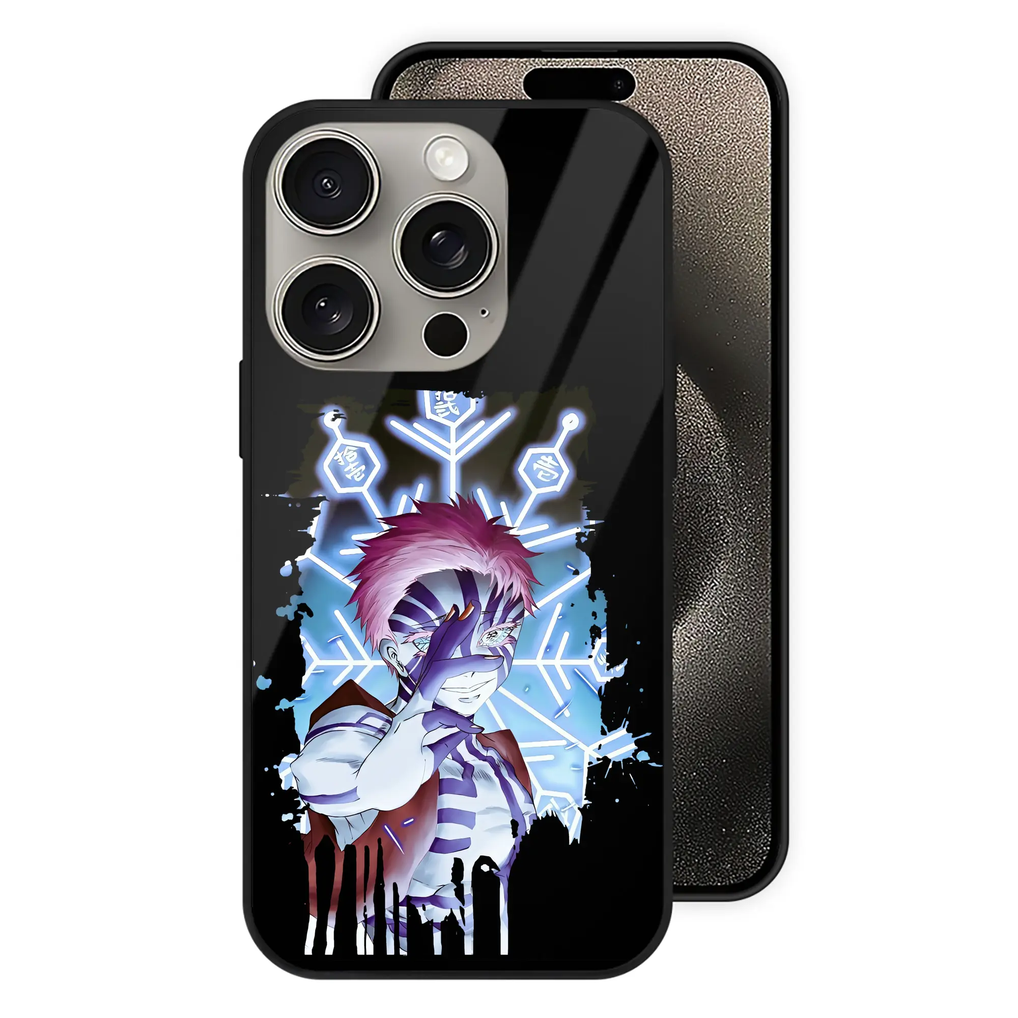 鬼滅の刃 グッズ,猗窩座 - IPhone15Pro対応 ・ スマホケース ・ 背面ガラス ・ TPU+強化ガラス ・ 耐衝撃 ・ 黄変防止 ・ ワイヤレス充電対応 ・ 3D立体ボタン