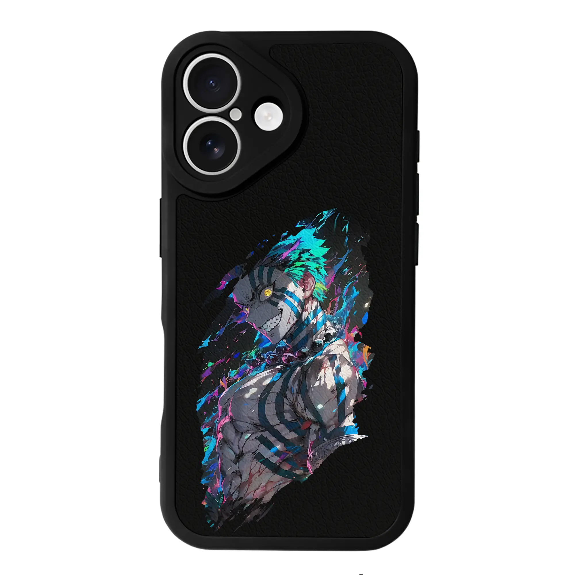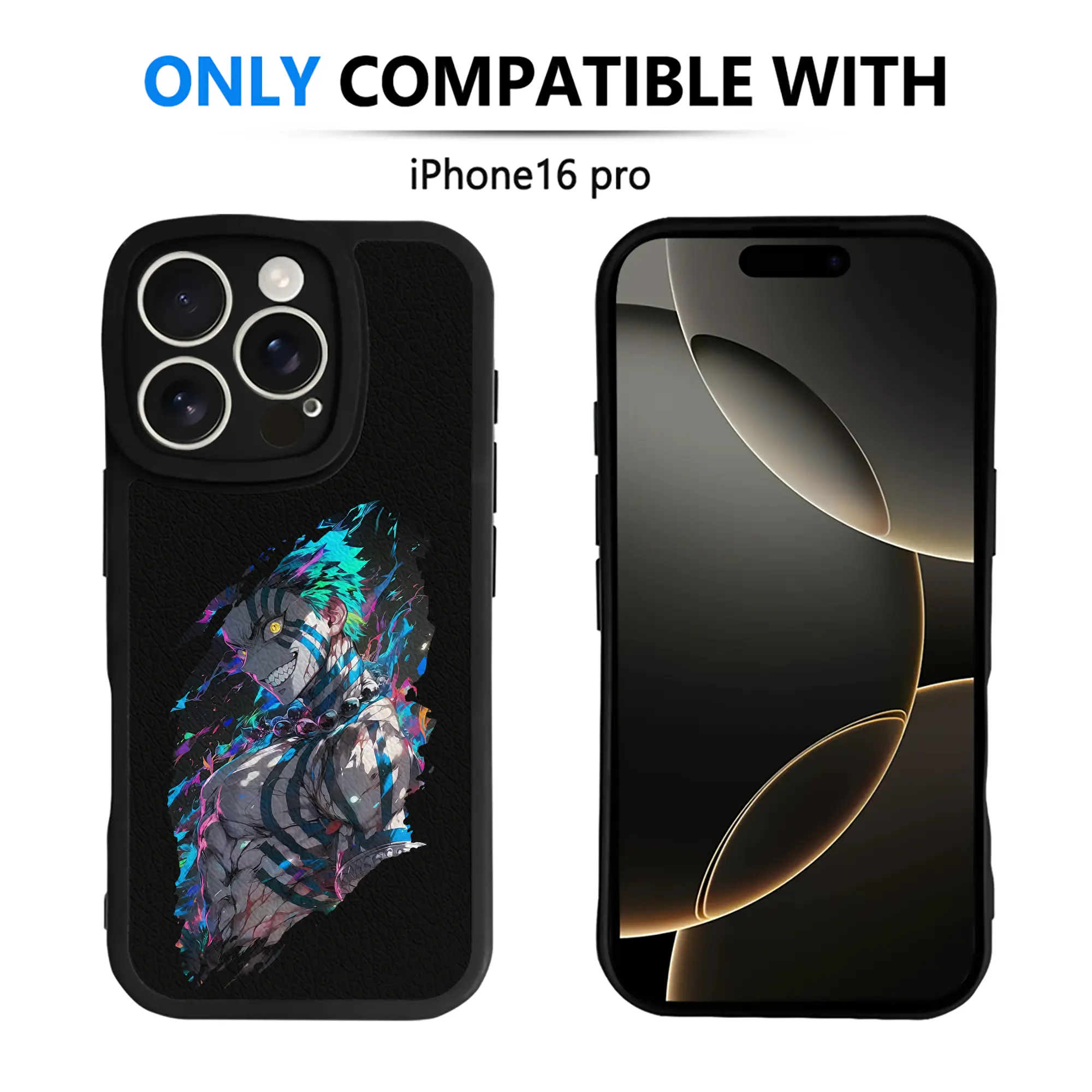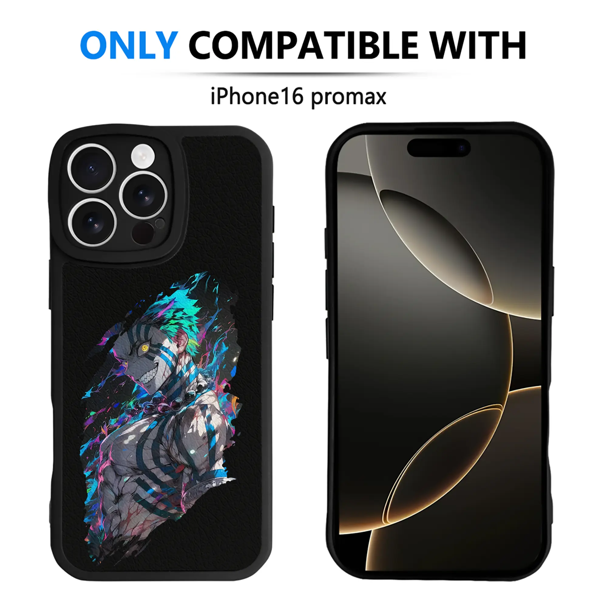 鬼滅の刃 グッズ,猗窩座 - IPhone 16シリーズ対応 ・ シリコンスマホケース ・ レザー調 ・ 高精度フィット ・ 耐衝撃 ・ ワイヤレス充電対応 ・ 精密カット
