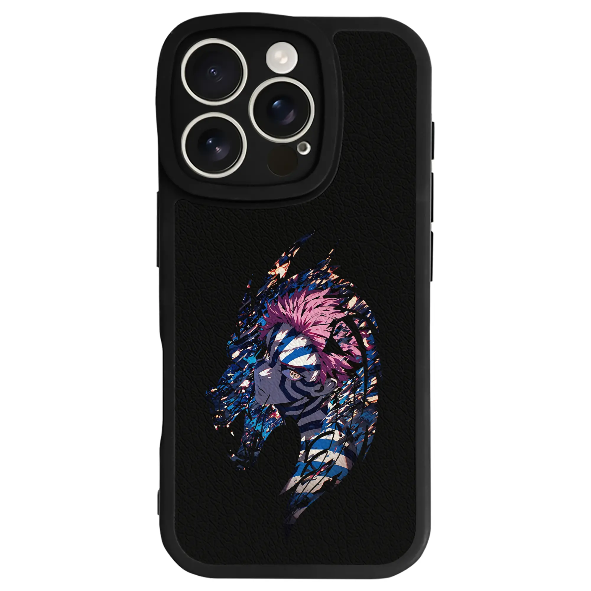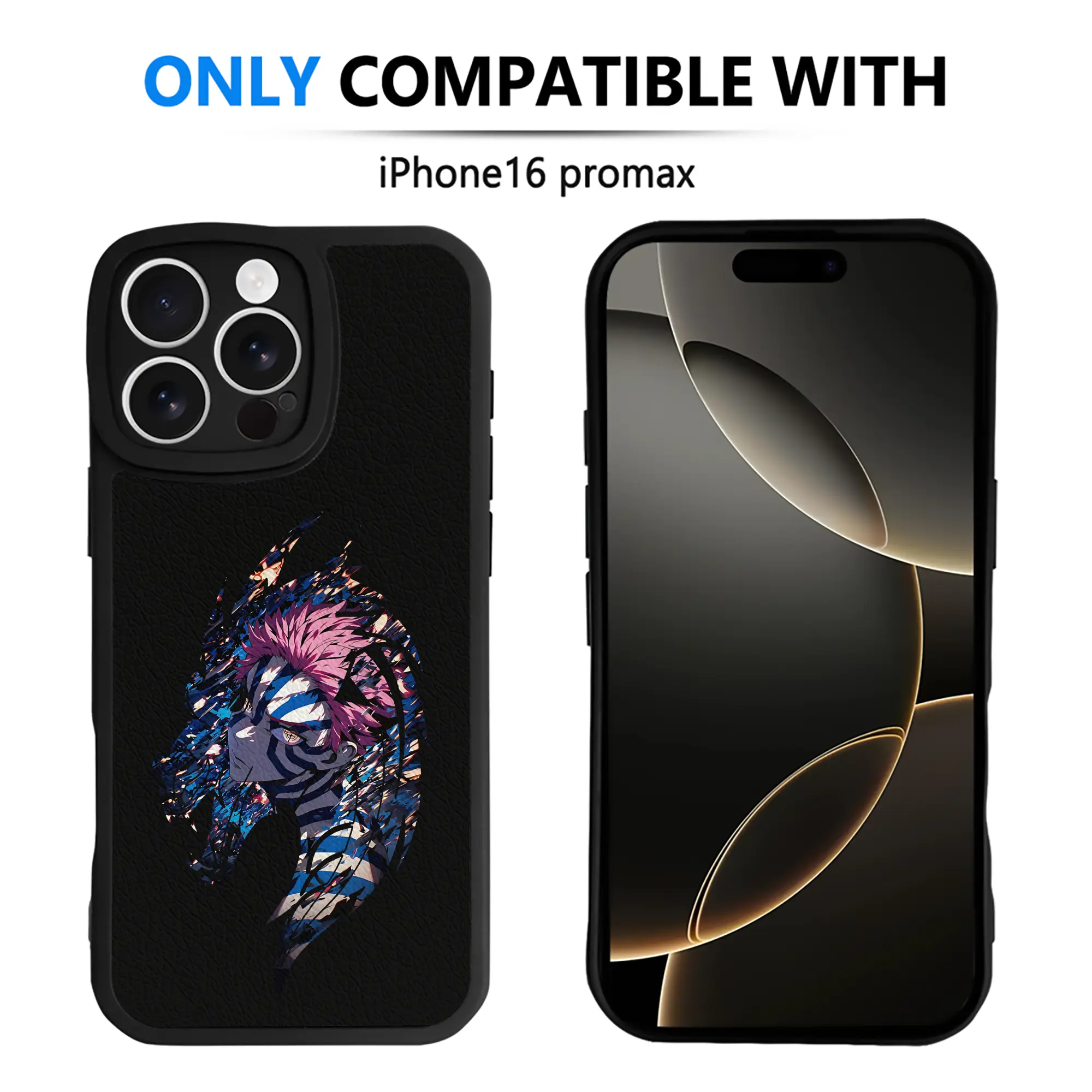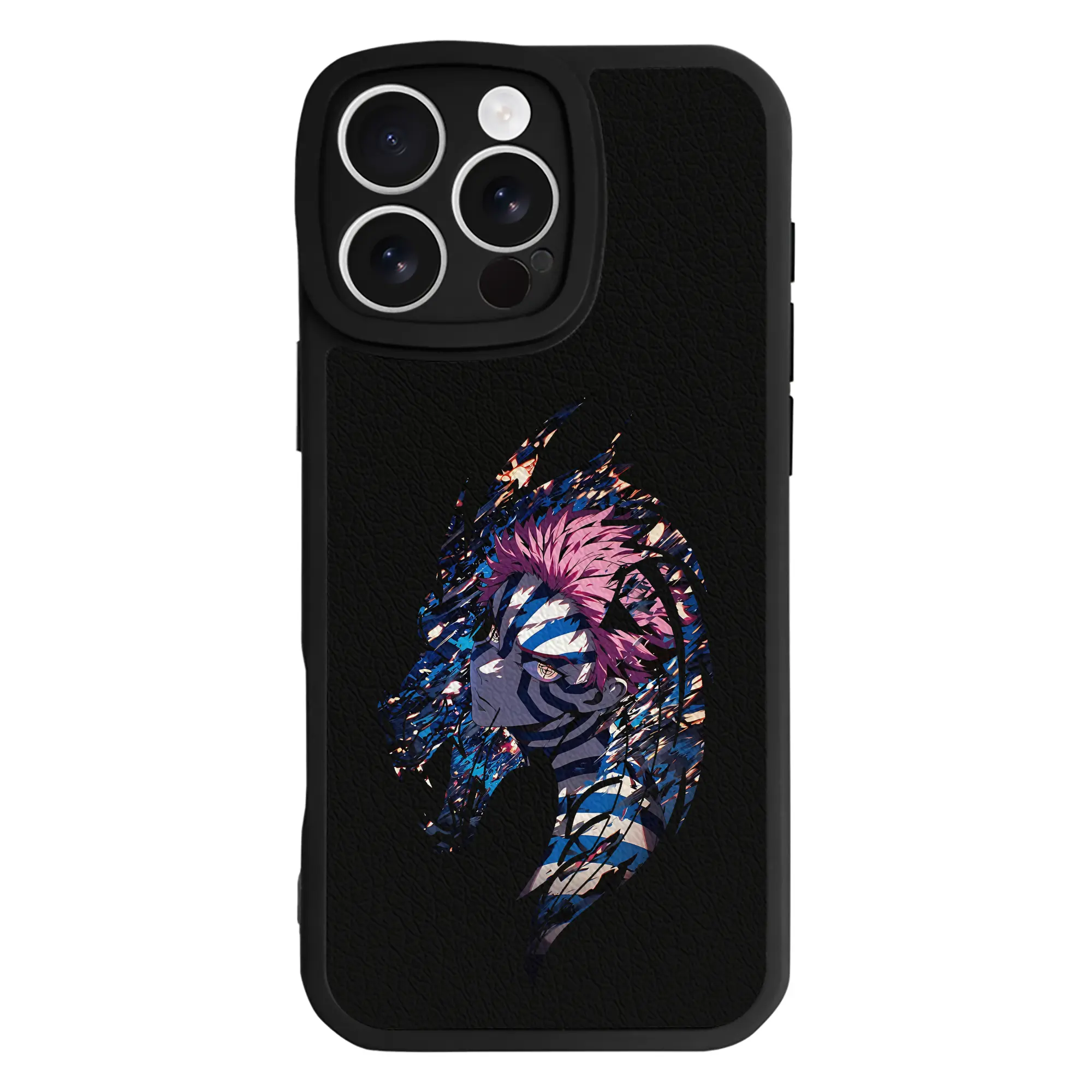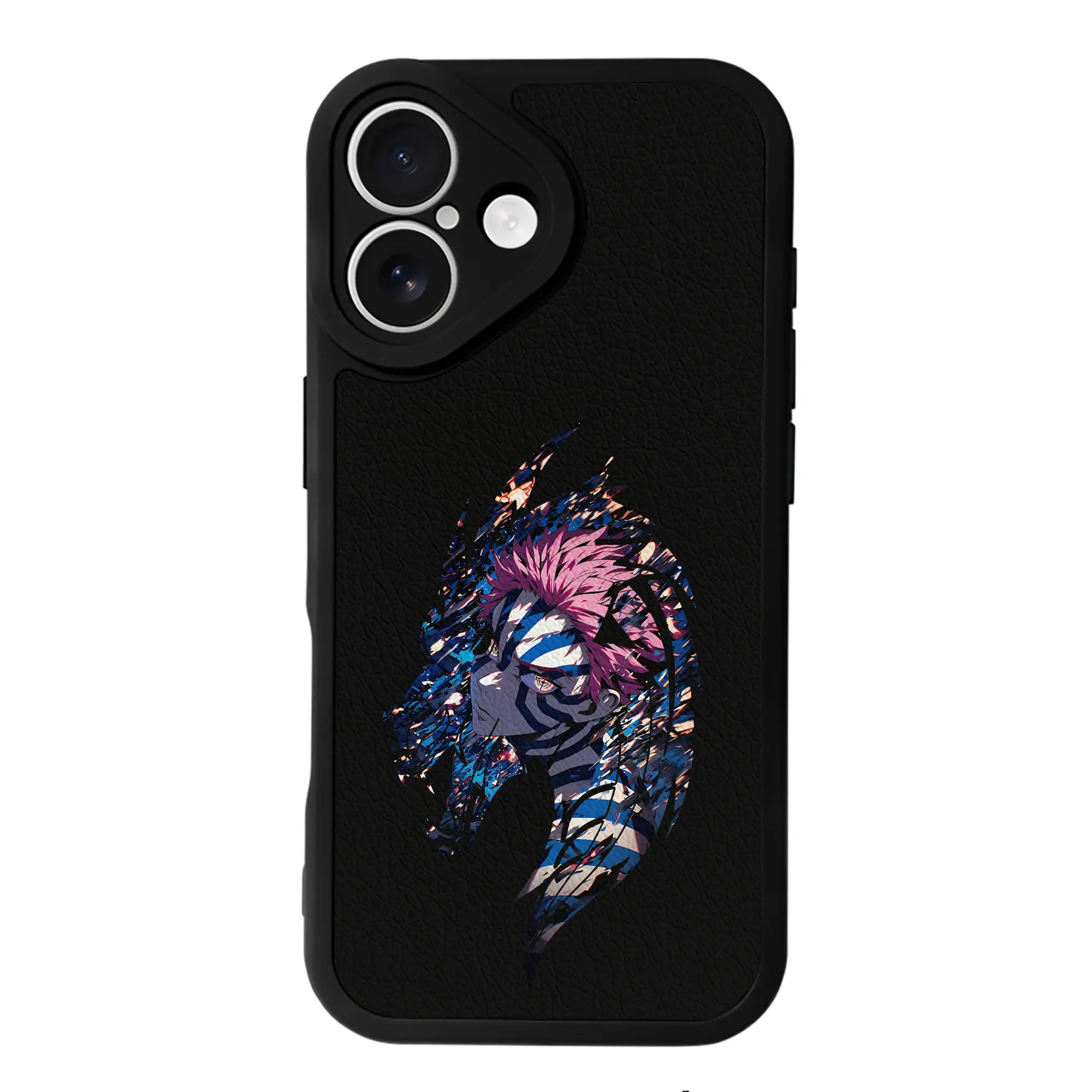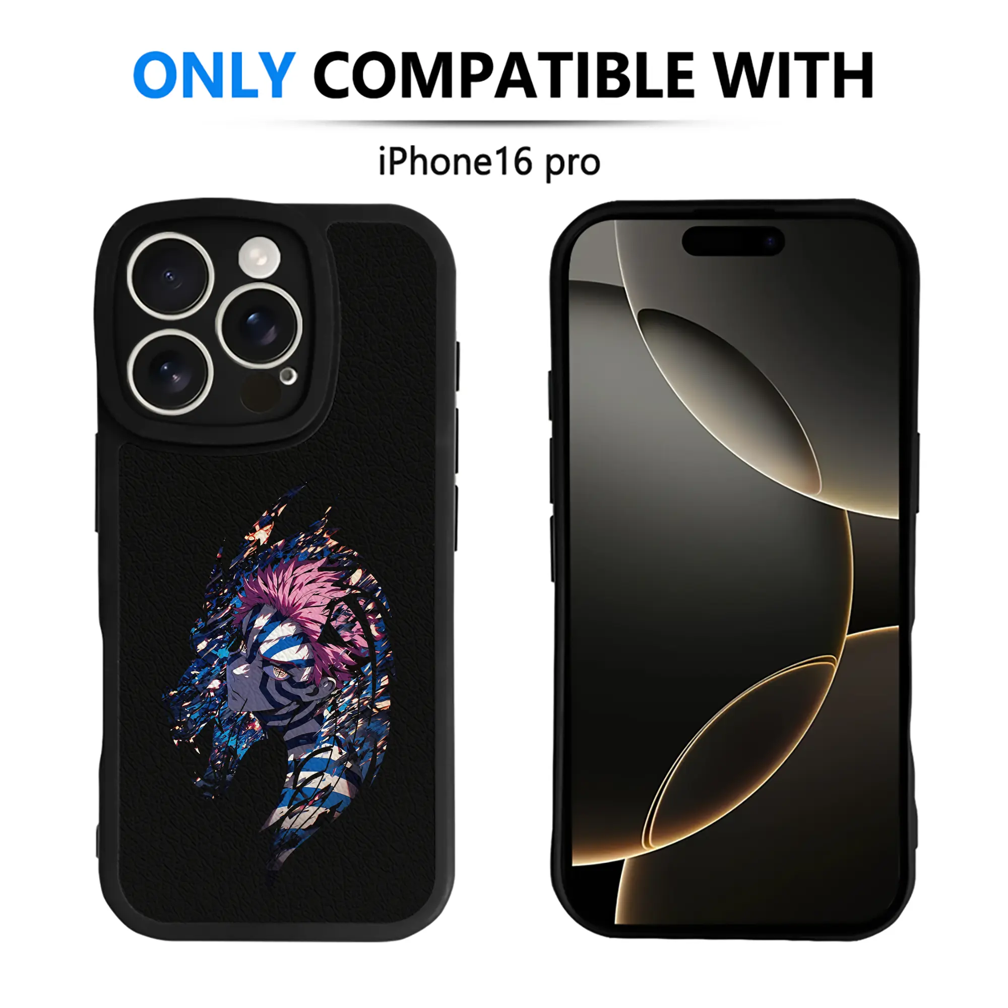 鬼滅の刃 グッズ,猗窩座 - IPhone 16シリーズ対応 ・ シリコンスマホケース ・ レザー調 ・ 高精度フィット ・ 耐衝撃 ・ ワイヤレス充電対応 ・ 精密カット