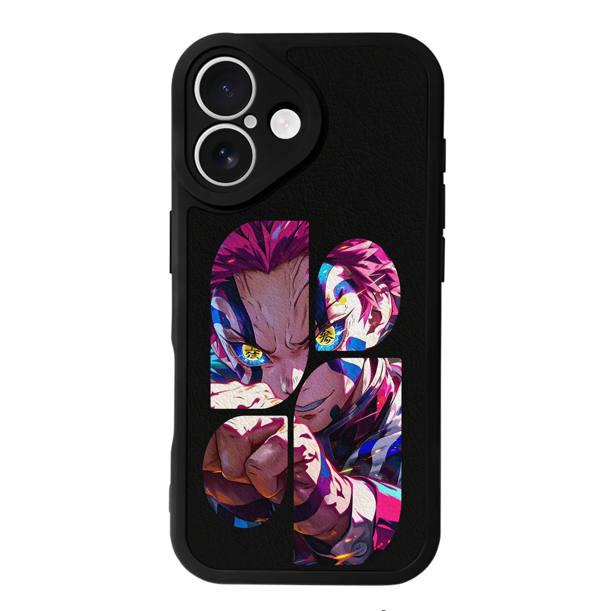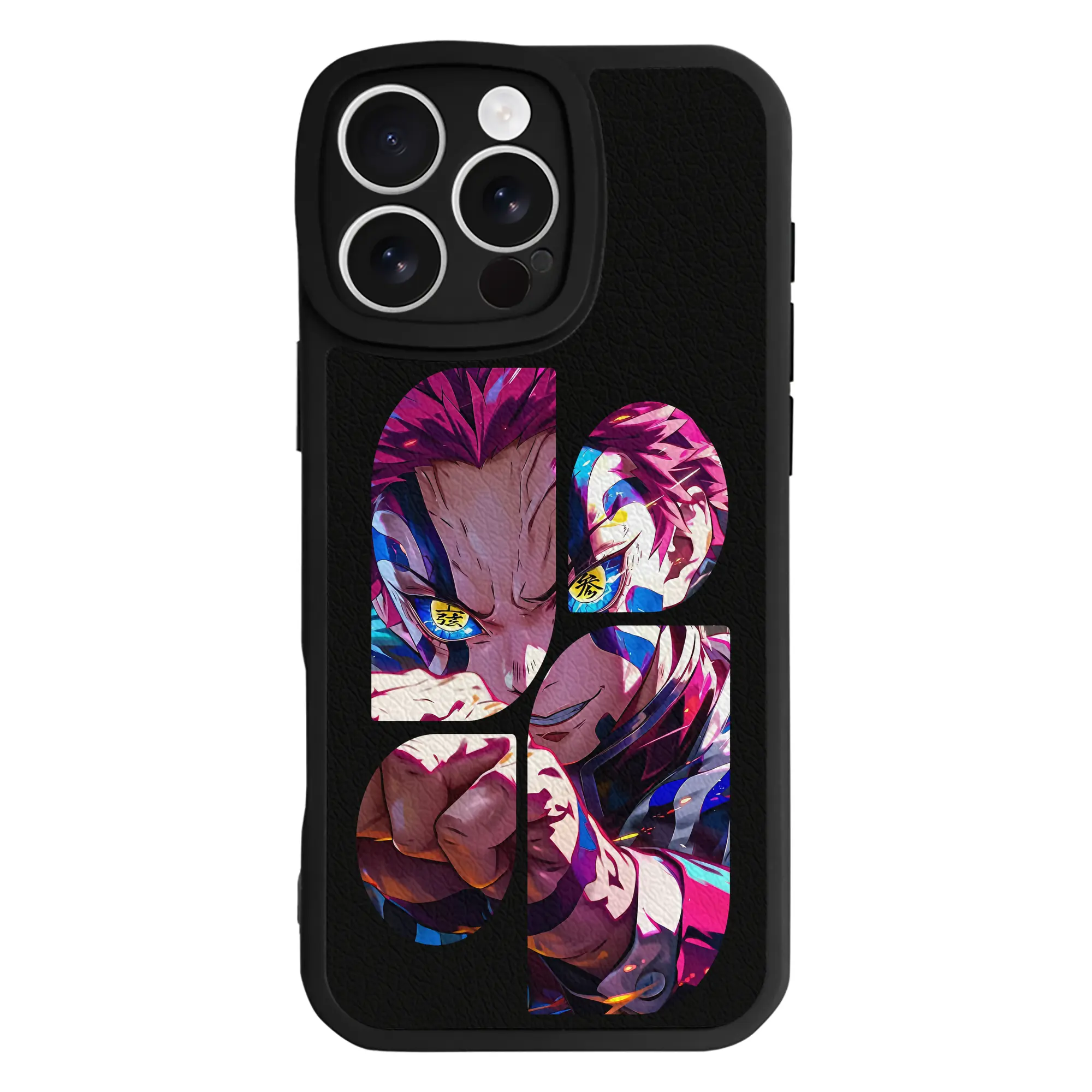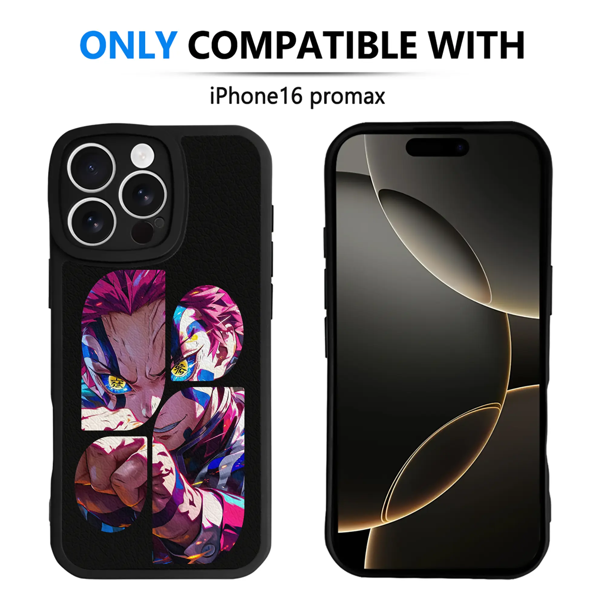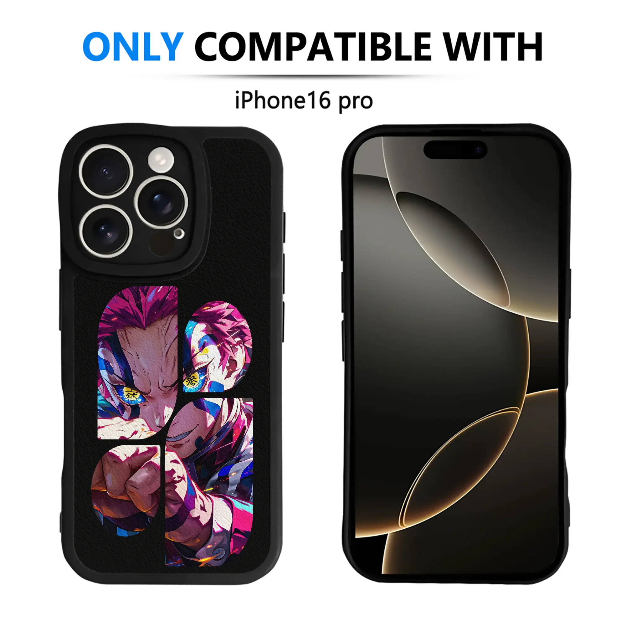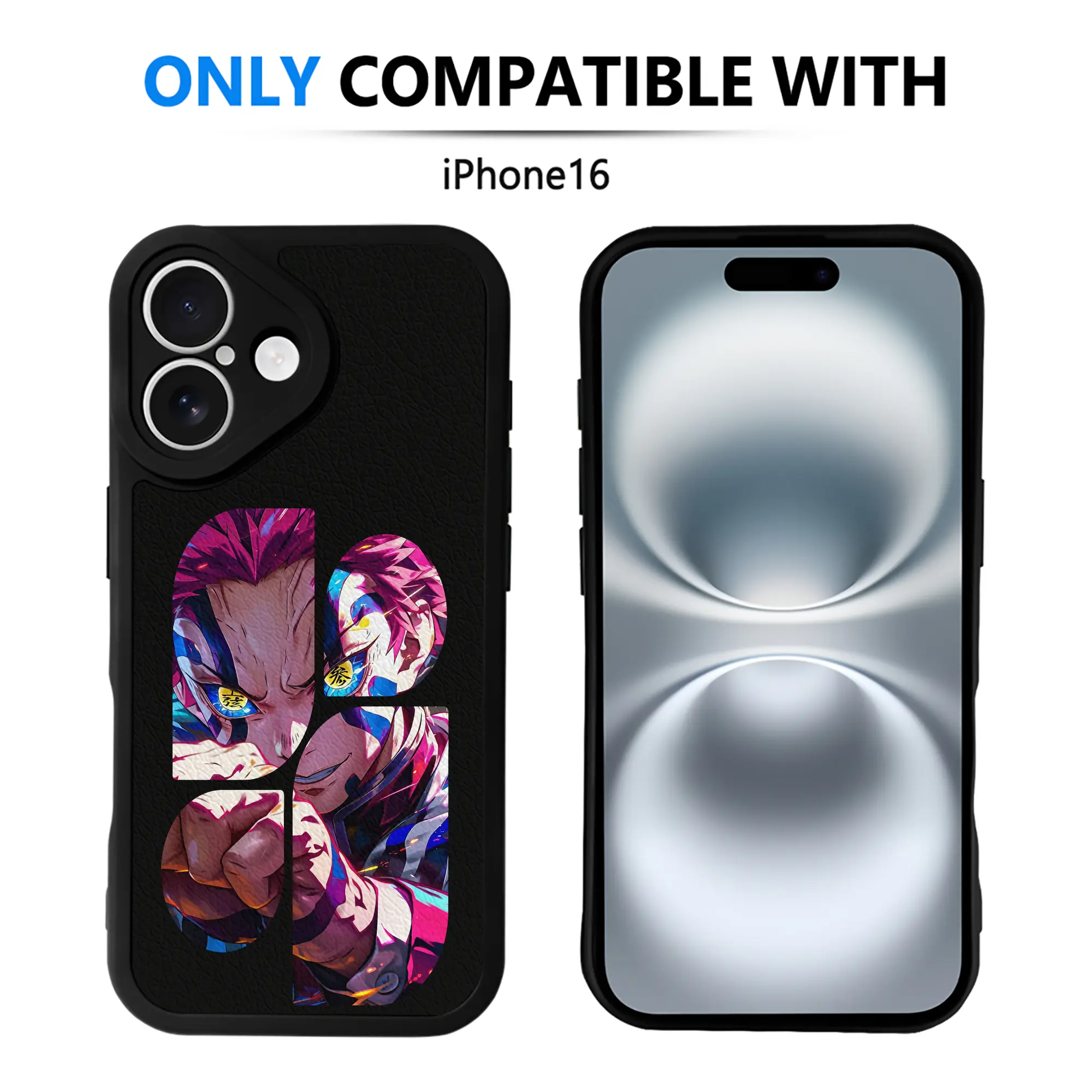 鬼滅の刃 グッズ,猗窩座 - IPhone 16シリーズ対応 ・ シリコンスマホケース ・ レザー調 ・ 高精度フィット ・ 耐衝撃 ・ ワイヤレス充電対応 ・ 精密カット
