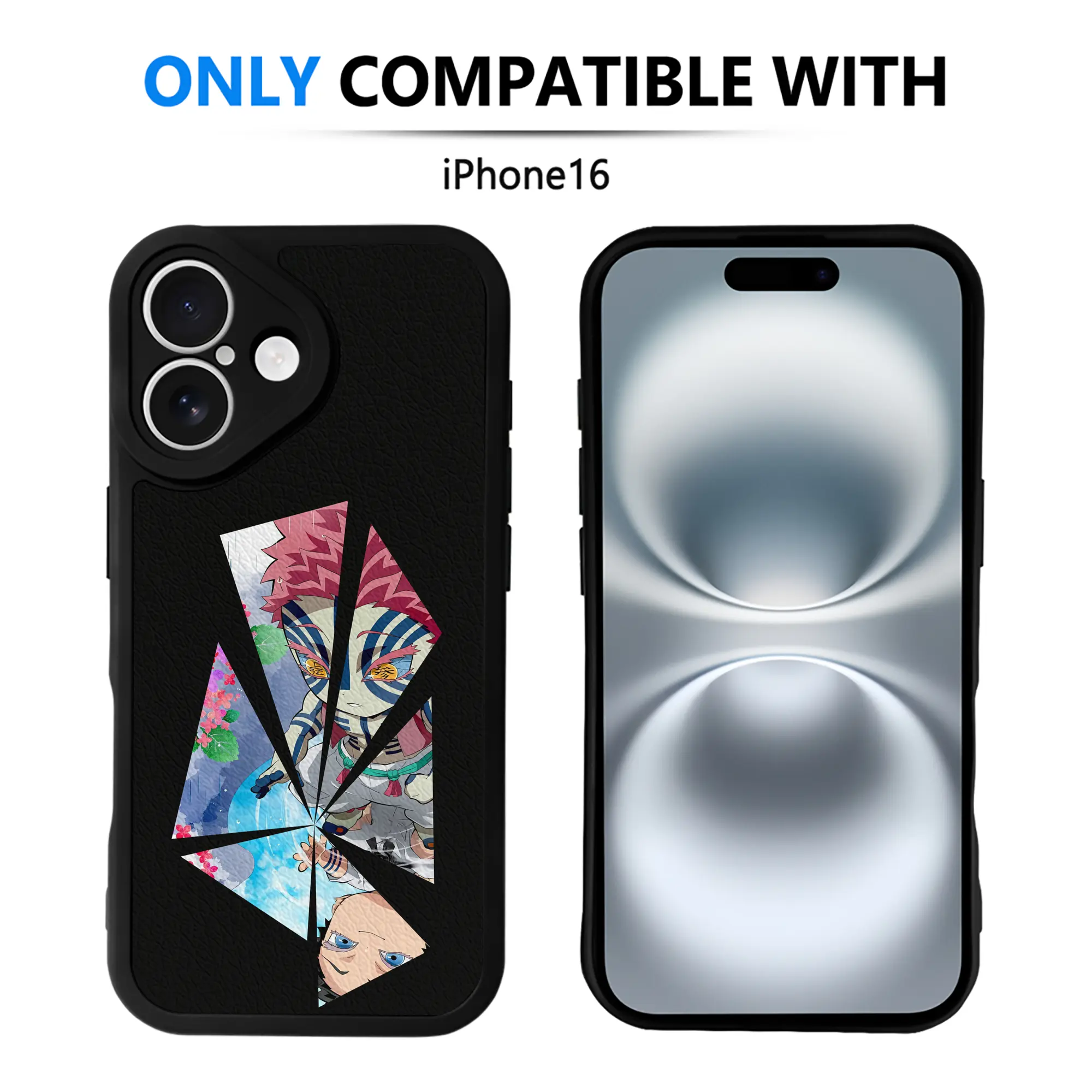 鬼滅の刃 グッズ,猗窩座 - IPhone 16シリーズ対応 ・ シリコンスマホケース ・ レザー調 ・ 高精度フィット ・ 耐衝撃 ・ ワイヤレス充電対応 ・ 精密カット