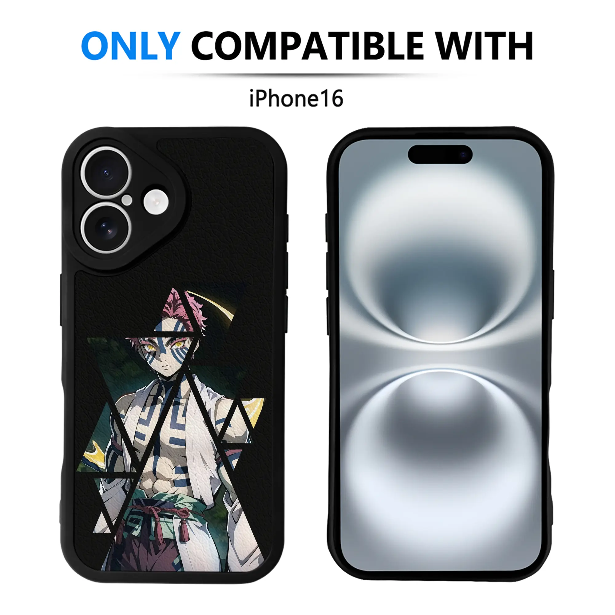鬼滅の刃 グッズ,猗窩座 - IPhone 16シリーズ対応 ・ シリコンスマホケース ・ レザー調 ・ 高精度フィット ・ 耐衝撃 ・ ワイヤレス充電対応 ・ 精密カット