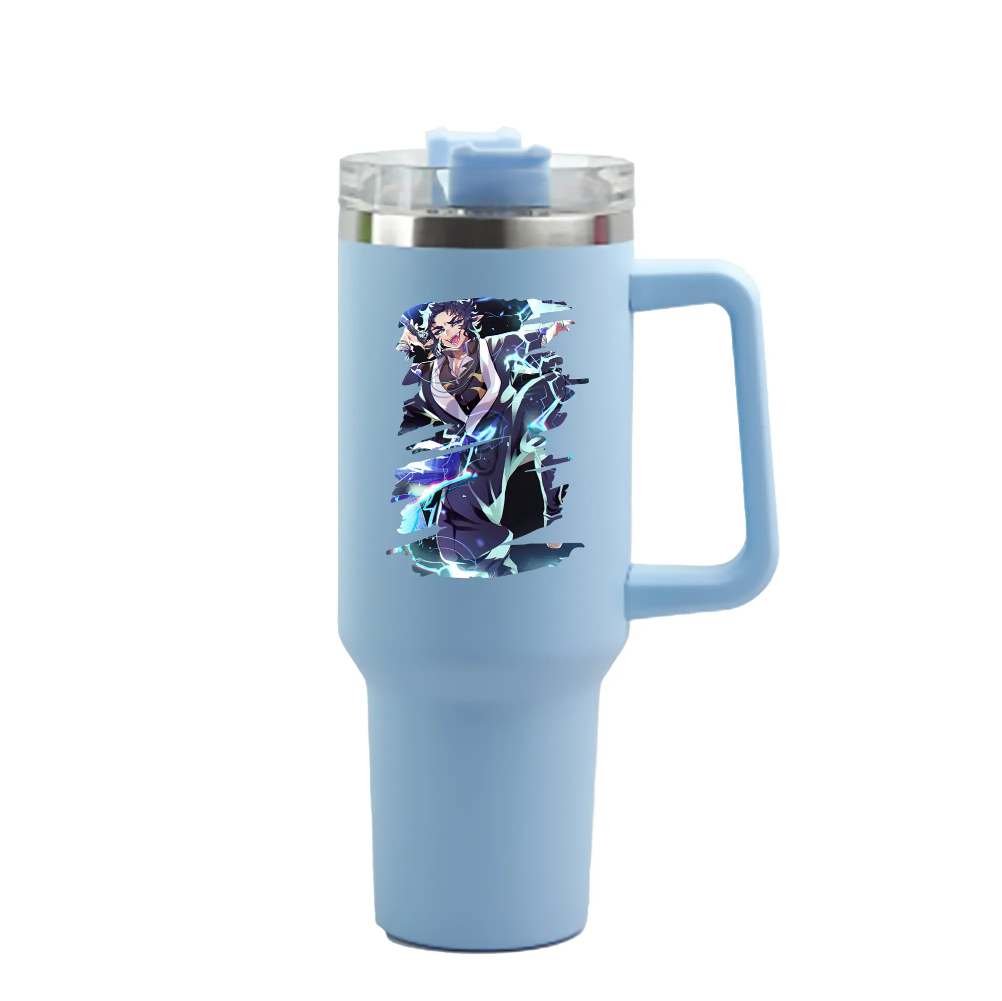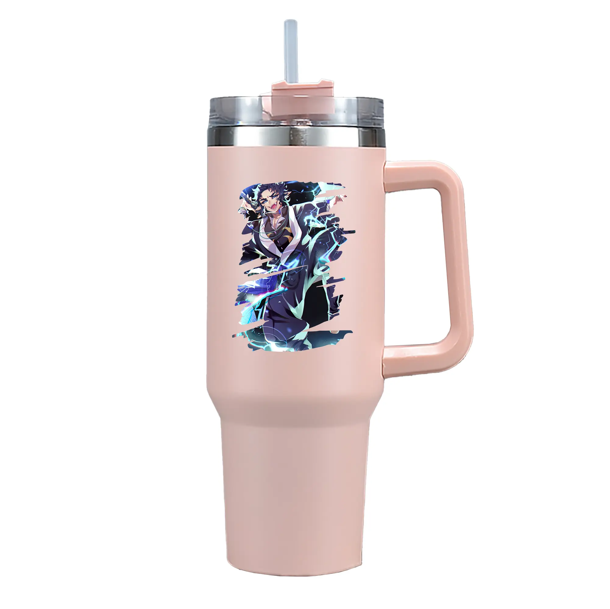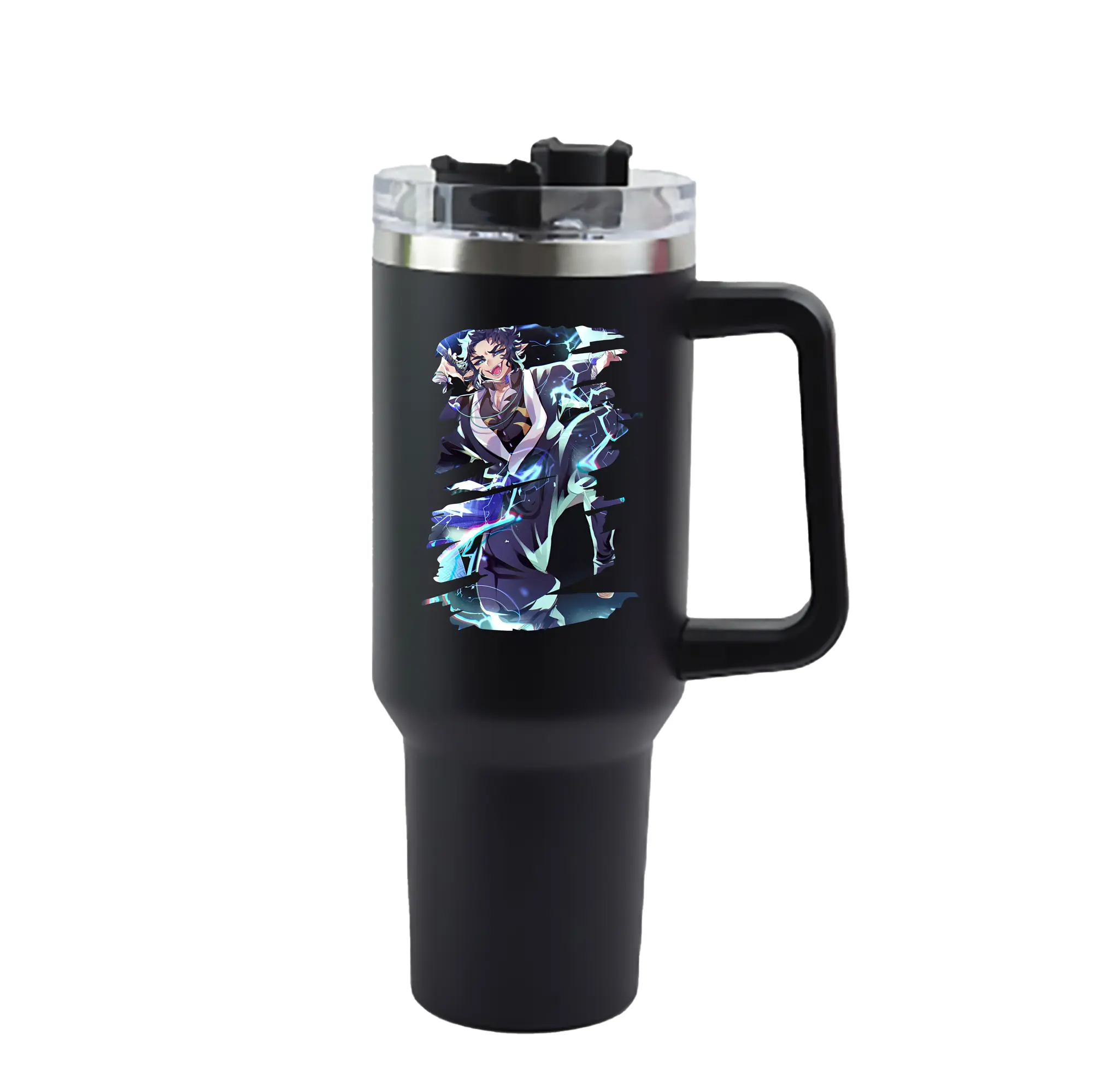 鬼滅の刃 グッズ,獪岳 - 1200mL 車用タンブラー ・ クリスタルステッカー ・ 304ステンレス 内側 ・ 201ステンレス 外側 ・ 保温 保冷 ・ ハンドル&ストロー付き ・ 通勤 ドライブ アウトドア用