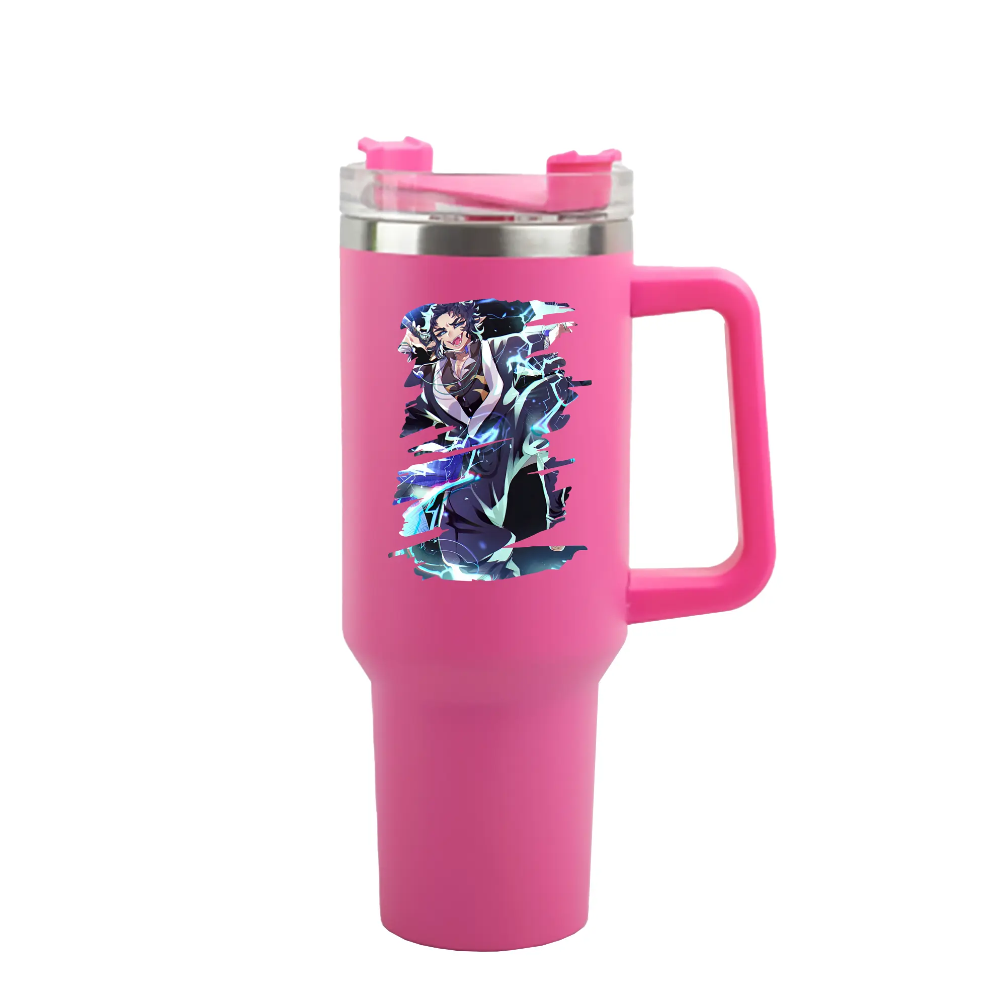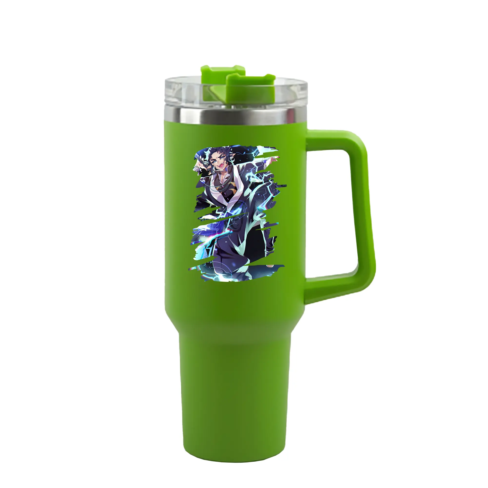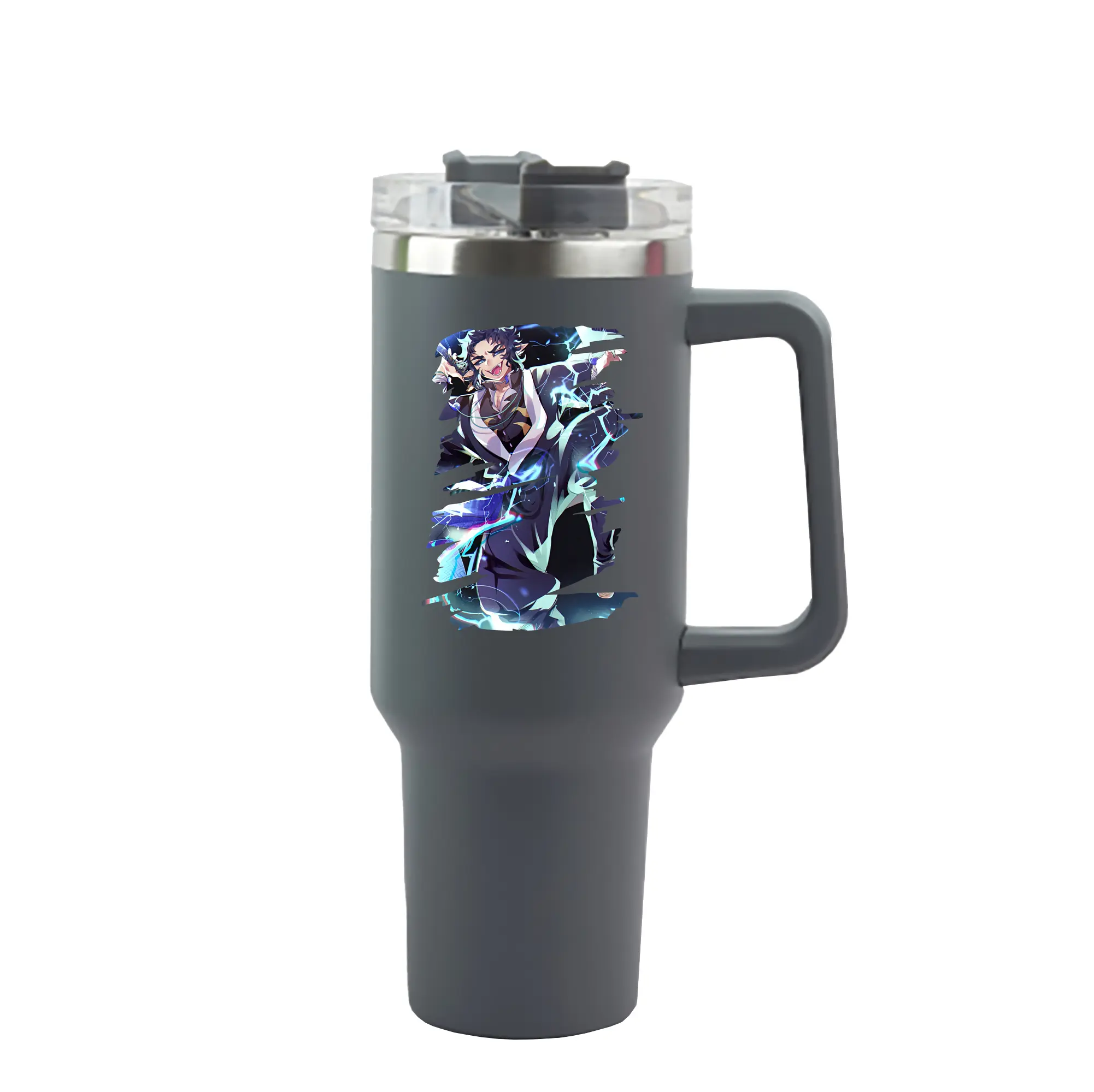 鬼滅の刃 グッズ,獪岳 - 1200mL 車用タンブラー ・ クリスタルステッカー ・ 304ステンレス 内側 ・ 201ステンレス 外側 ・ 保温 保冷 ・ ハンドル&ストロー付き ・ 通勤 ドライブ アウトドア用