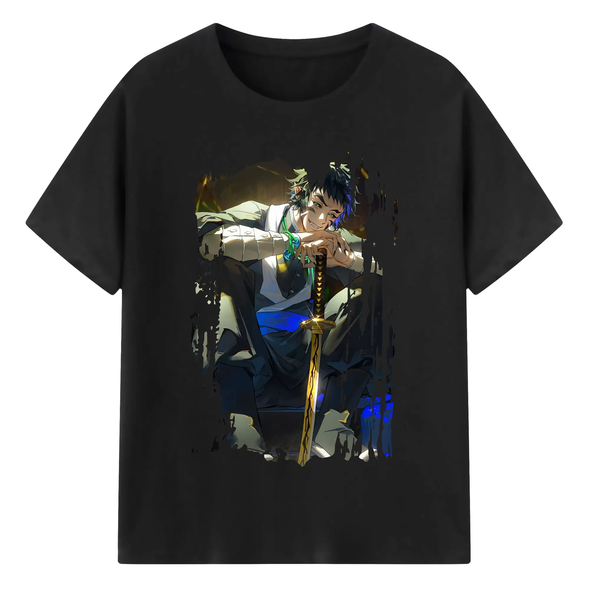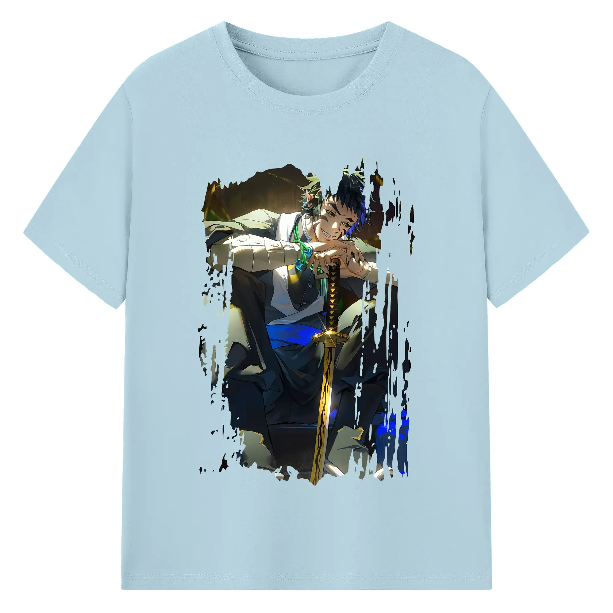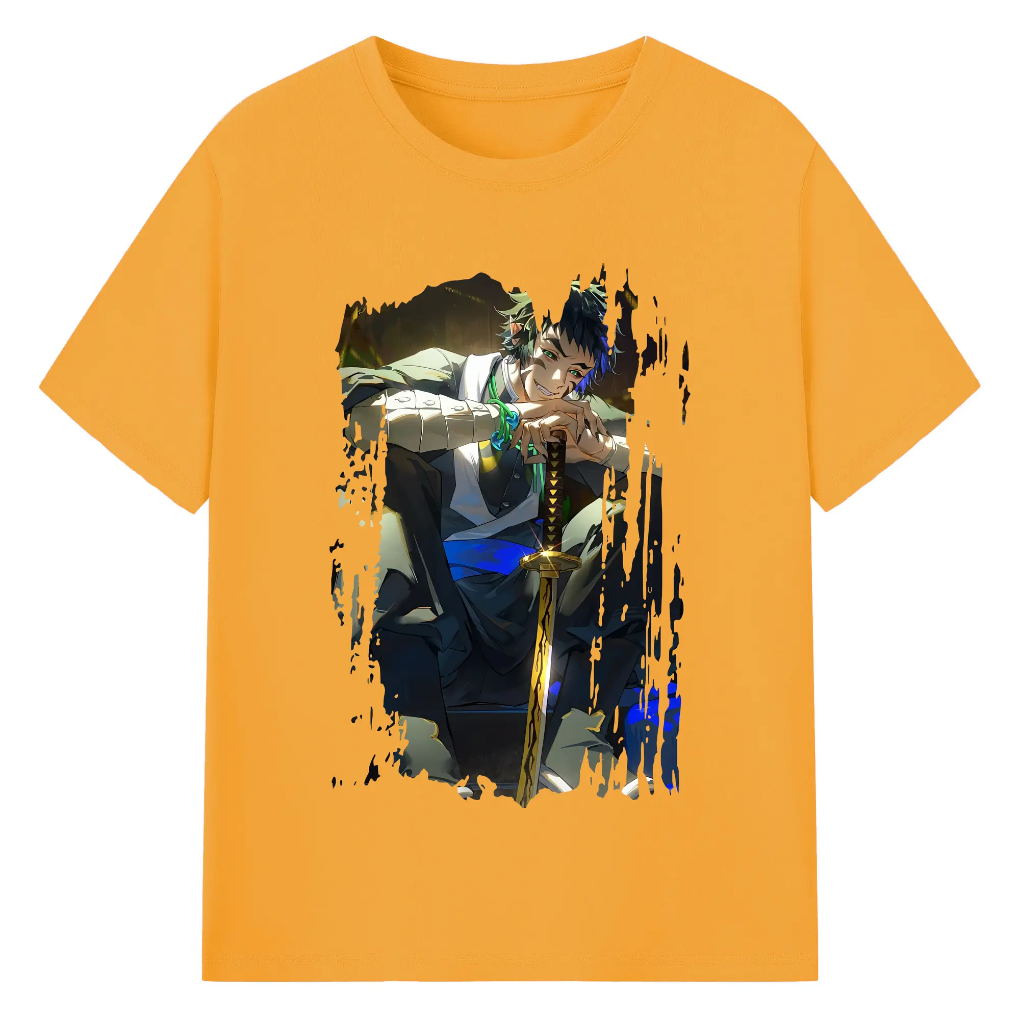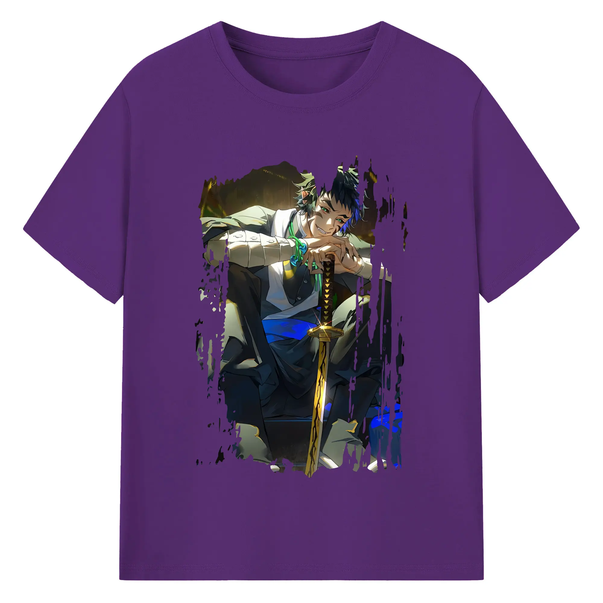 鬼滅の刃 グッズ,獪岳 - 綿100% 半袖Tシャツ ・ バックプリント ・ 快適 通気性 ・ 日常使い 散歩 スポーツ用
