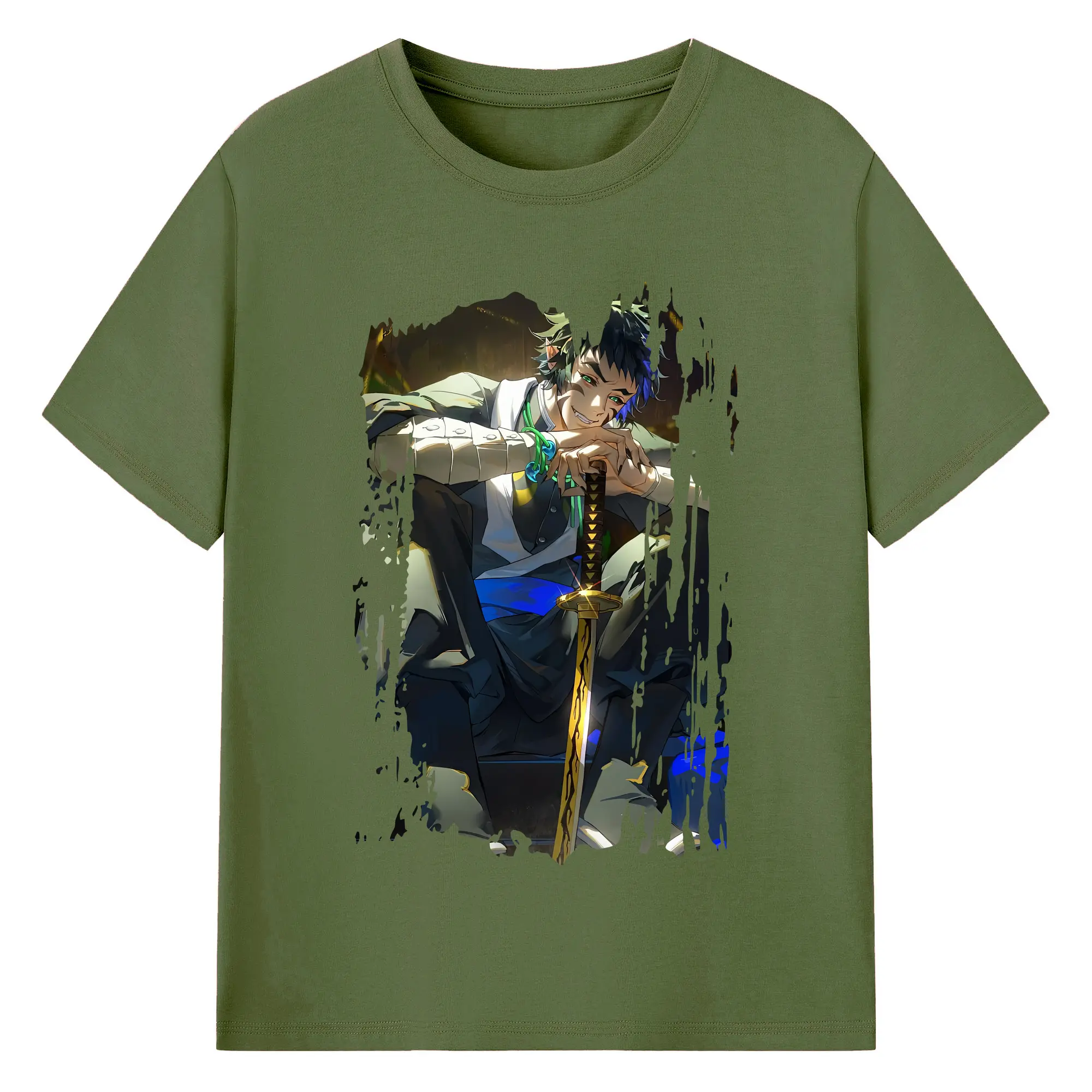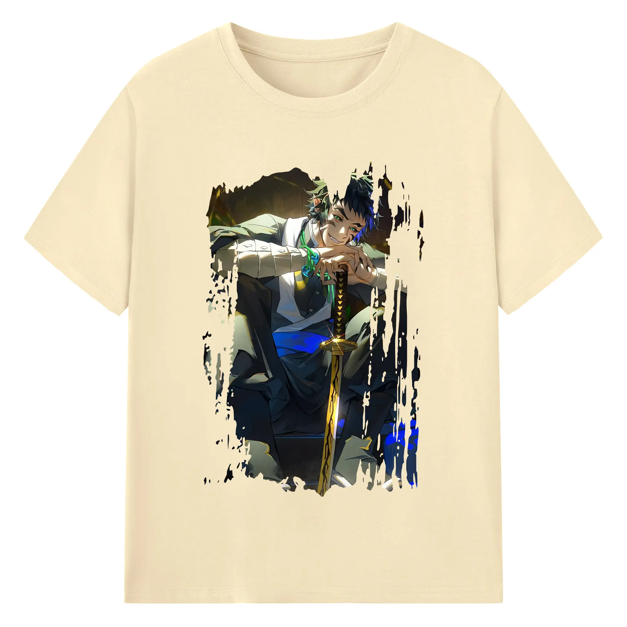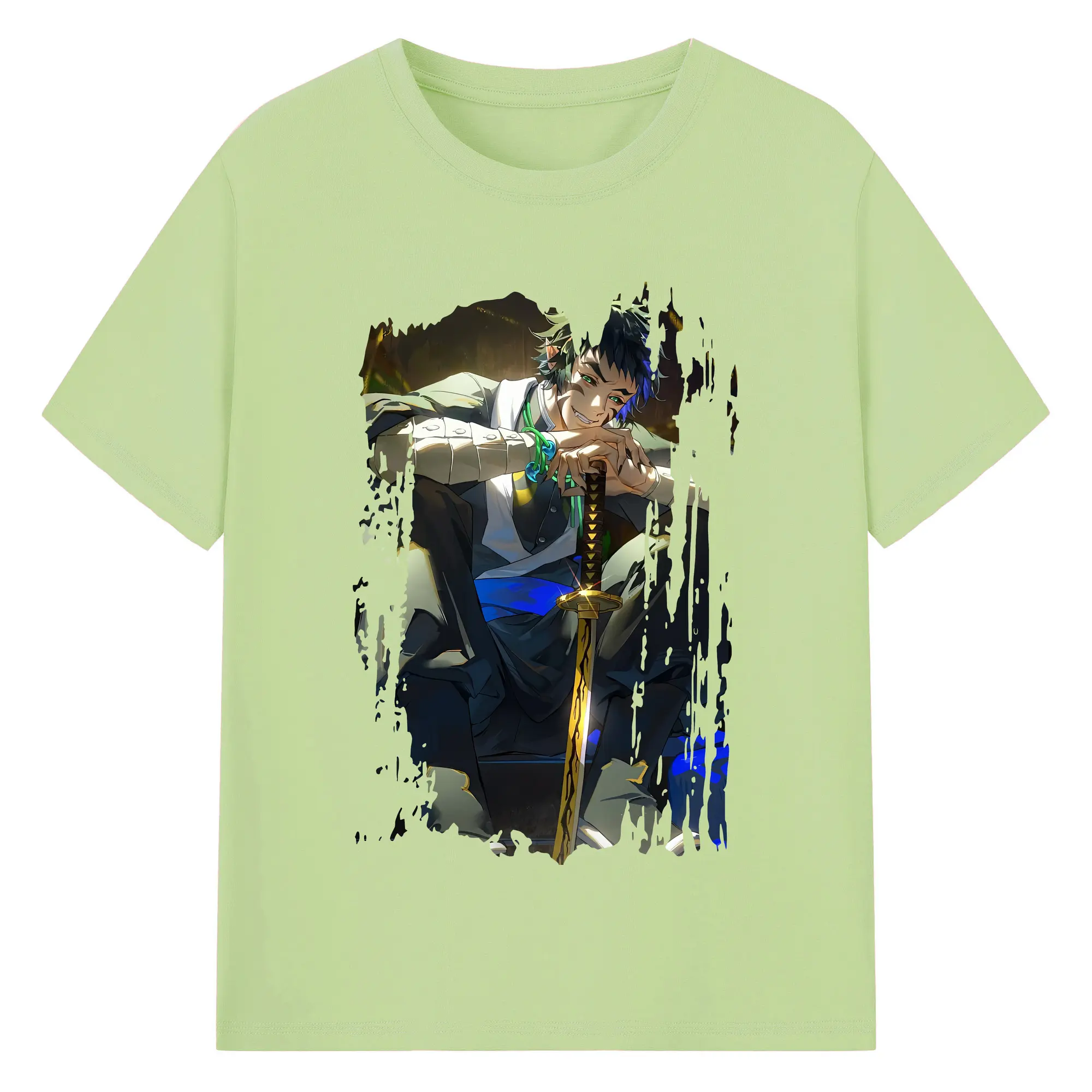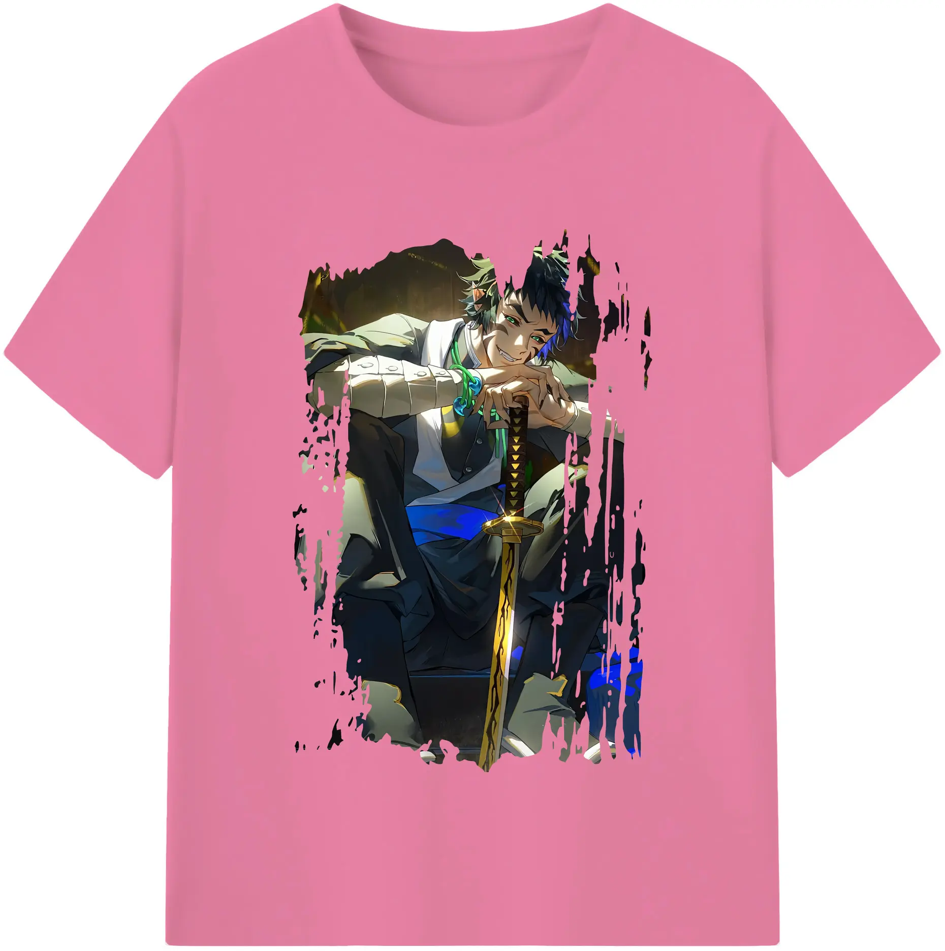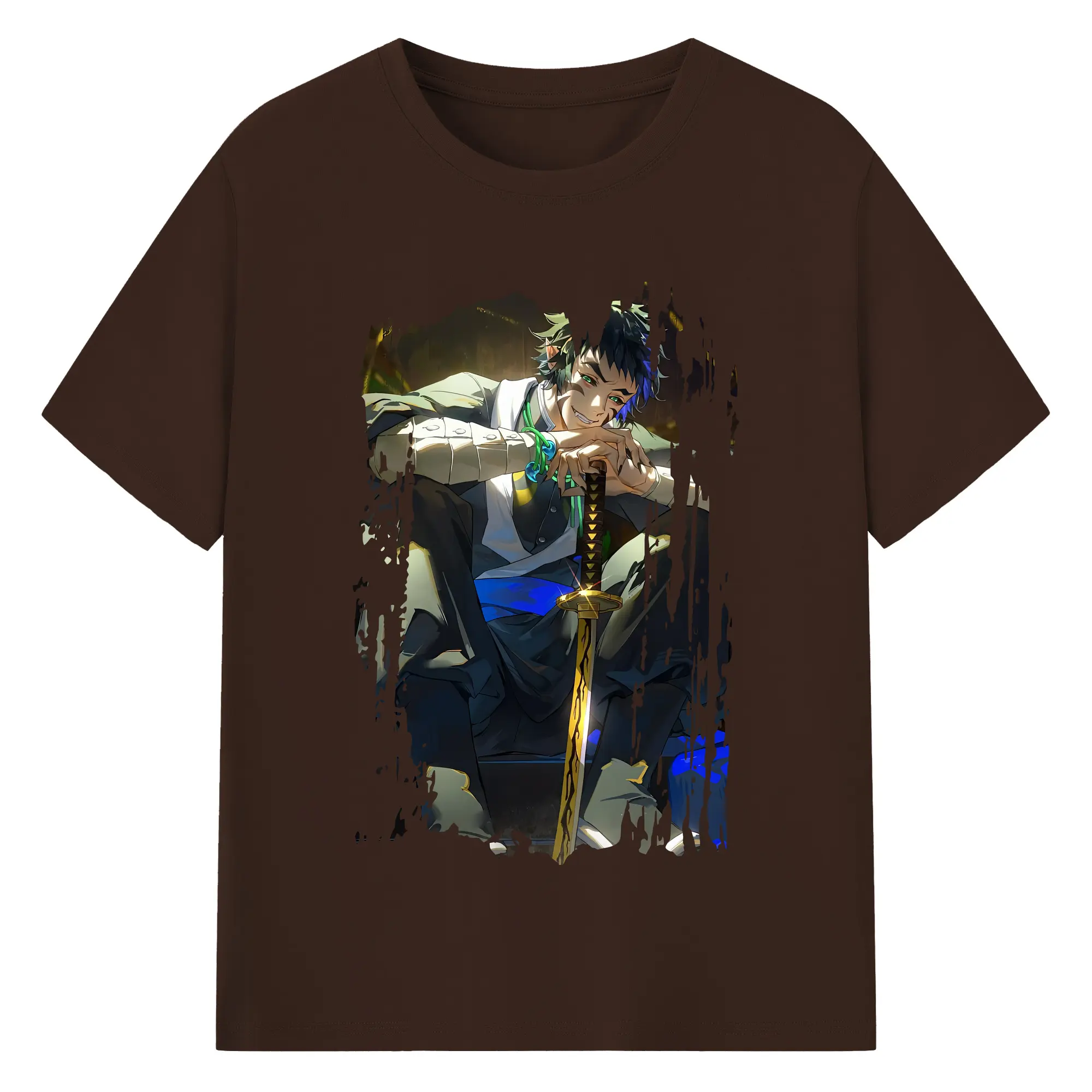 鬼滅の刃 グッズ,獪岳 - 綿100% 半袖Tシャツ ・ バックプリント ・ 快適 通気性 ・ 日常使い 散歩 スポーツ用