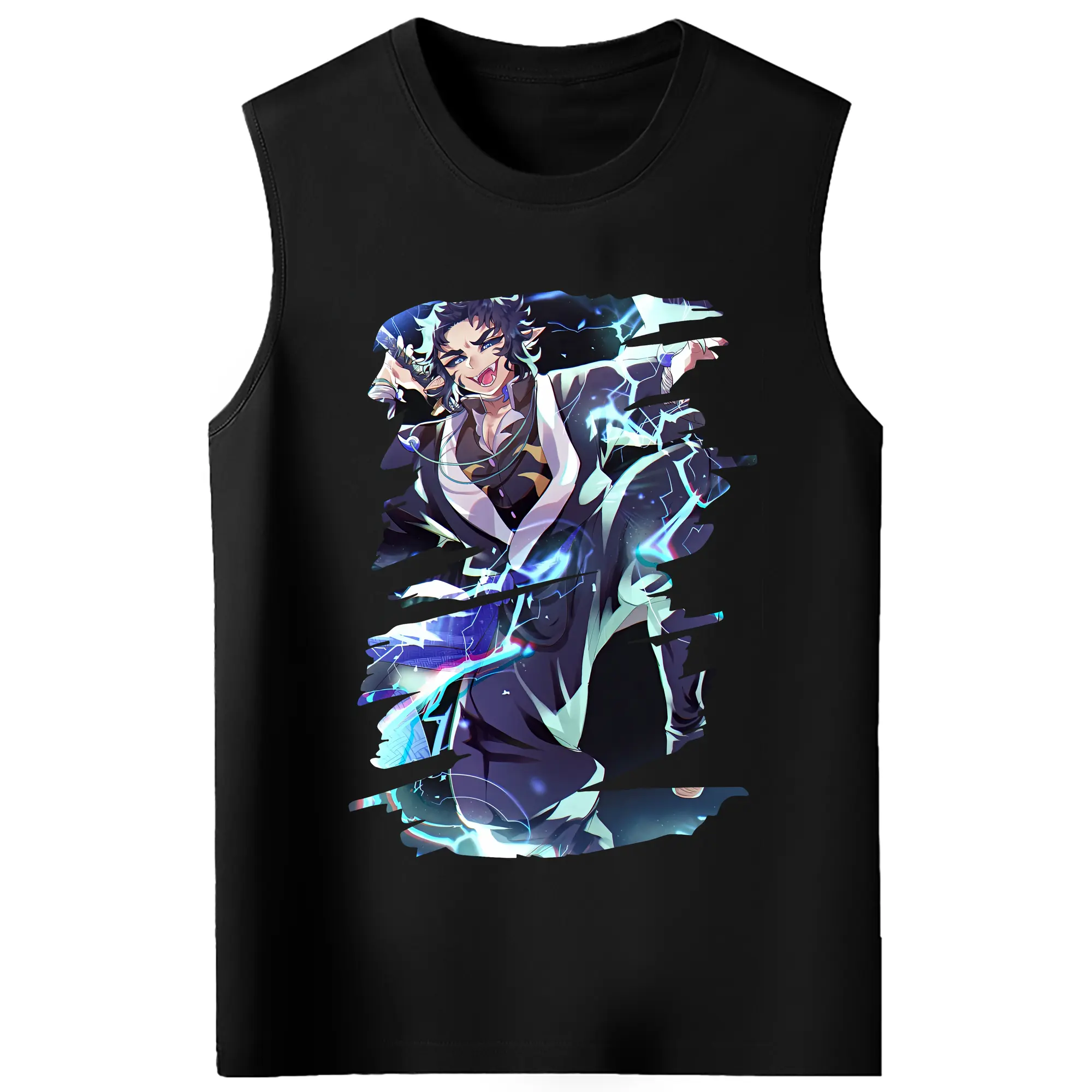 鬼滅の刃 グッズ,獪岳 - コットン100% タンクトップ ・ フロントプリント ・ タイトフィット ・ 快適 通気性 ・ スポーツ カジュアル 散歩用