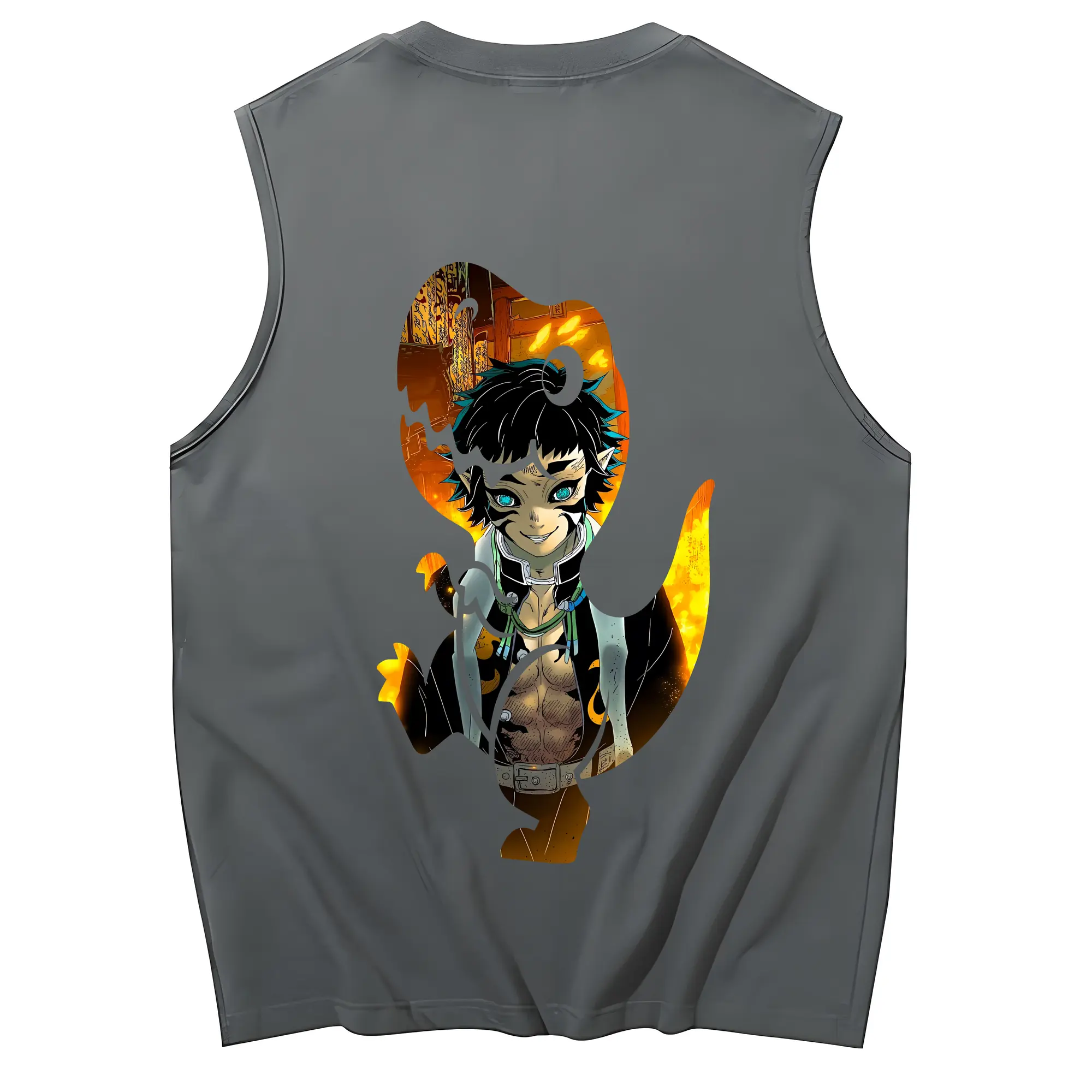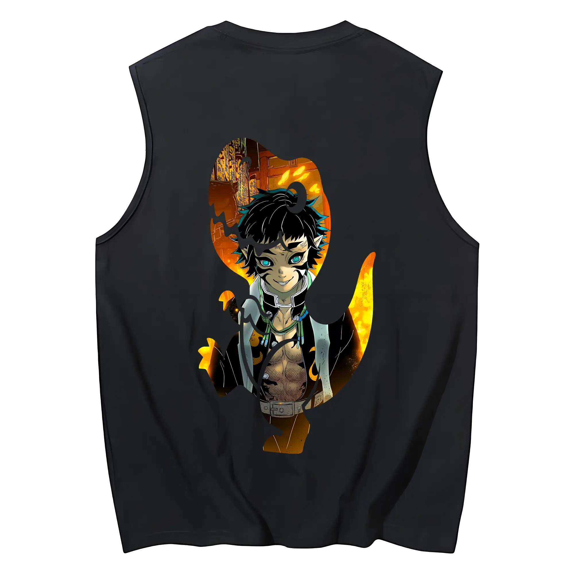 鬼滅の刃 グッズ,獪岳 - コットン100% タンクトップ ・ 背面プリント ・ タイトシルエット ・ 快適 通気性 ・ スポーツ カジュアル 散歩用