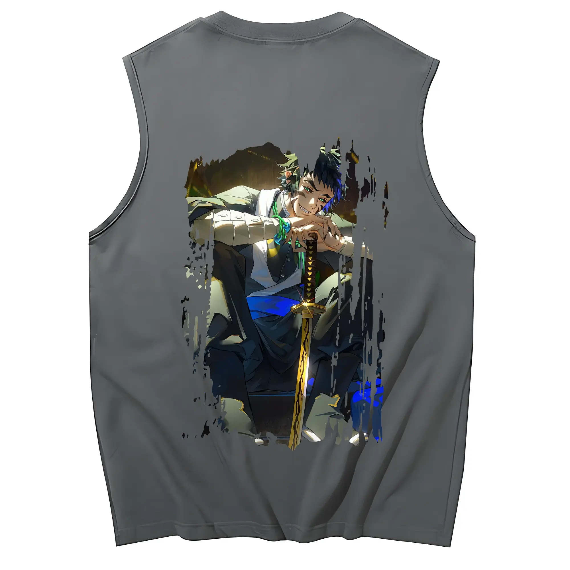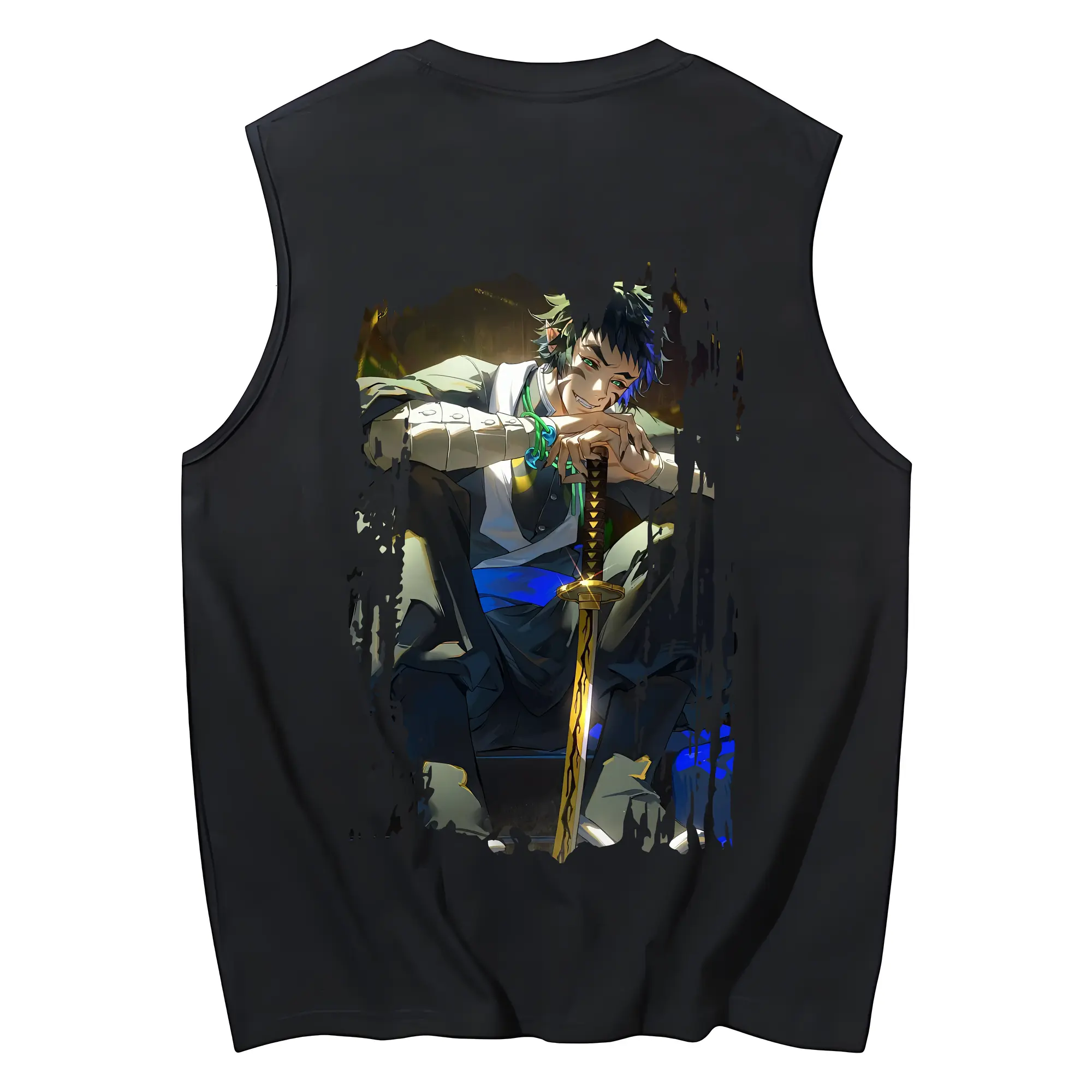 鬼滅の刃 グッズ,獪岳 - コットン100% タンクトップ ・ 背面プリント ・ タイトシルエット ・ 快適 通気性 ・ スポーツ カジュアル 散歩用