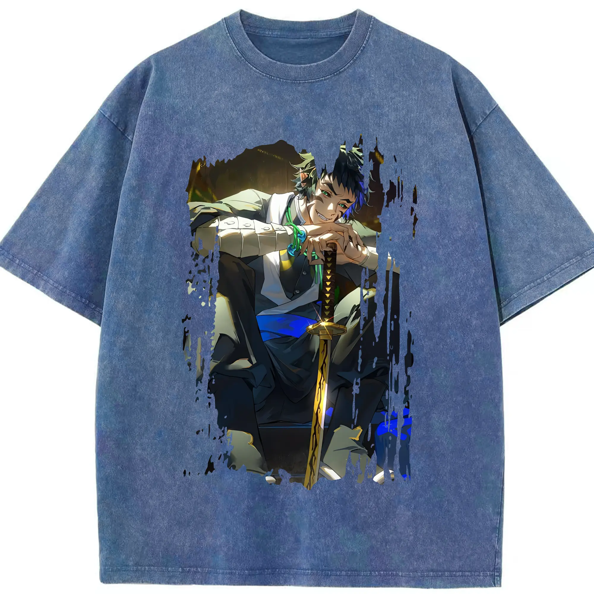 鬼滅の刃 グッズ,獪岳 - 綿100% 半袖Tシャツ ・ フロントプリント ・ 快適 通気性 ・ 日常使い 散歩 スポーツ用