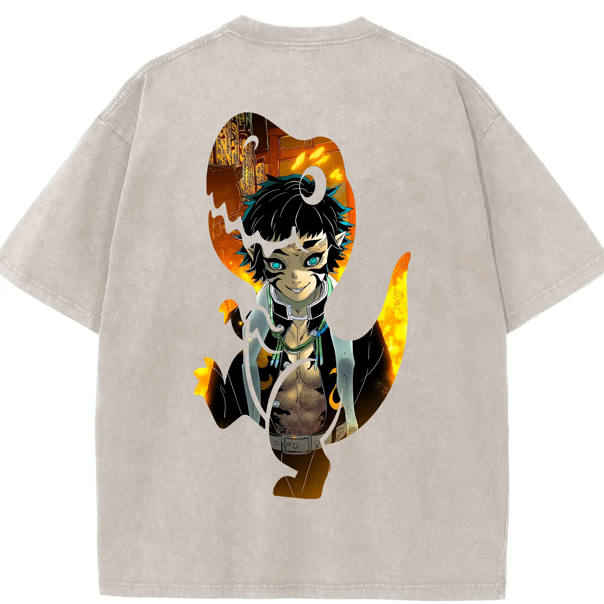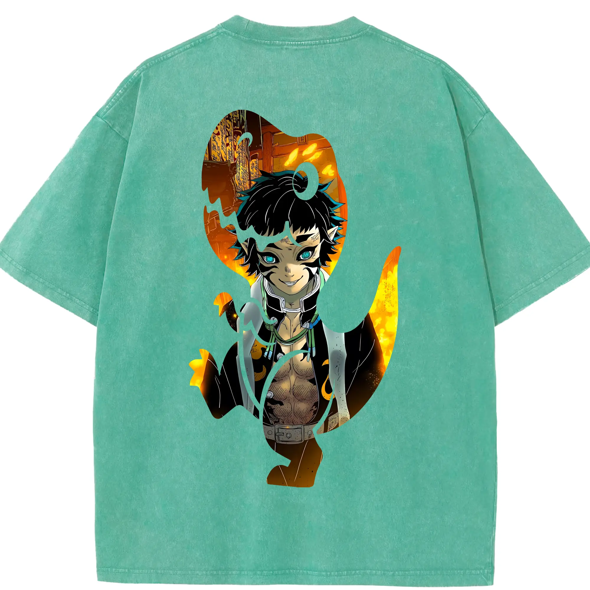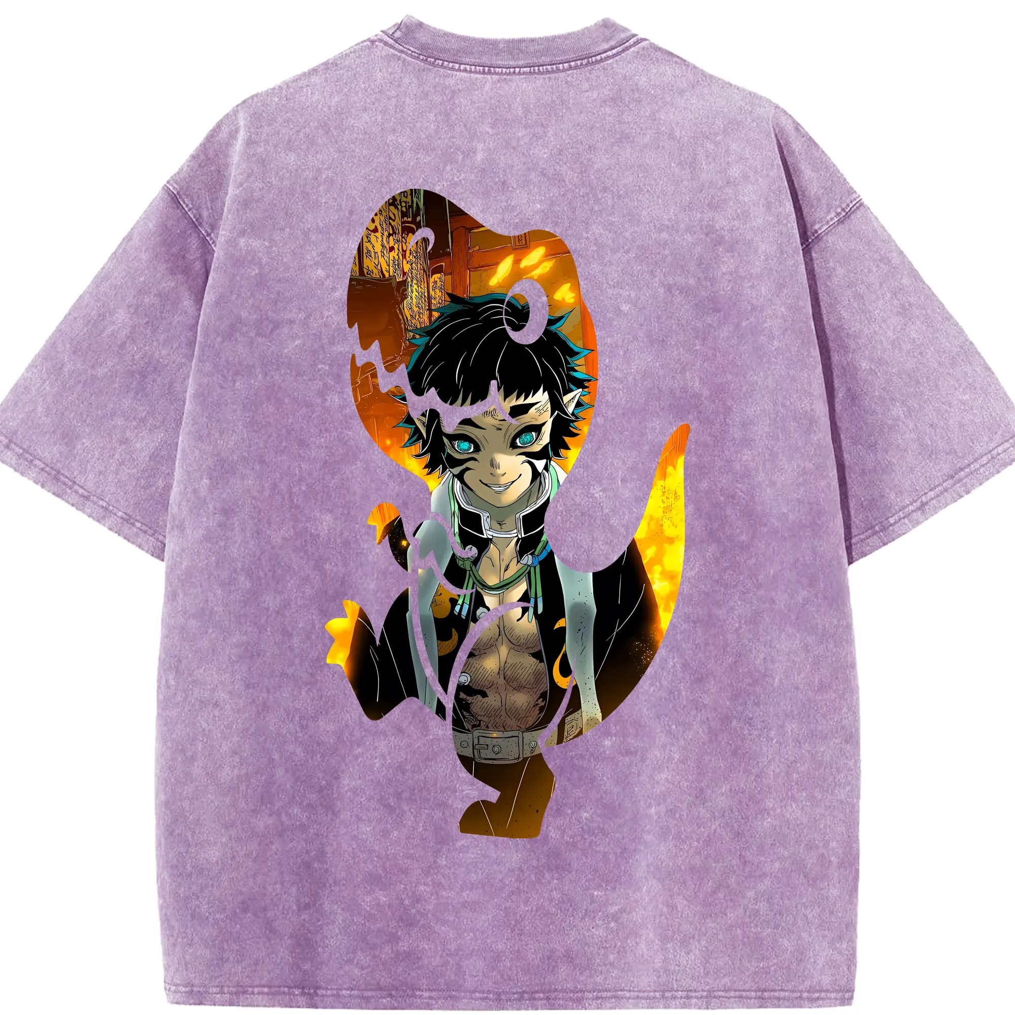 鬼滅の刃 グッズ,獪岳 - 綿100% 半袖Tシャツ ・ バックプリント ・ 快適 通気性 ・ 日常使い 散歩 スポーツ用