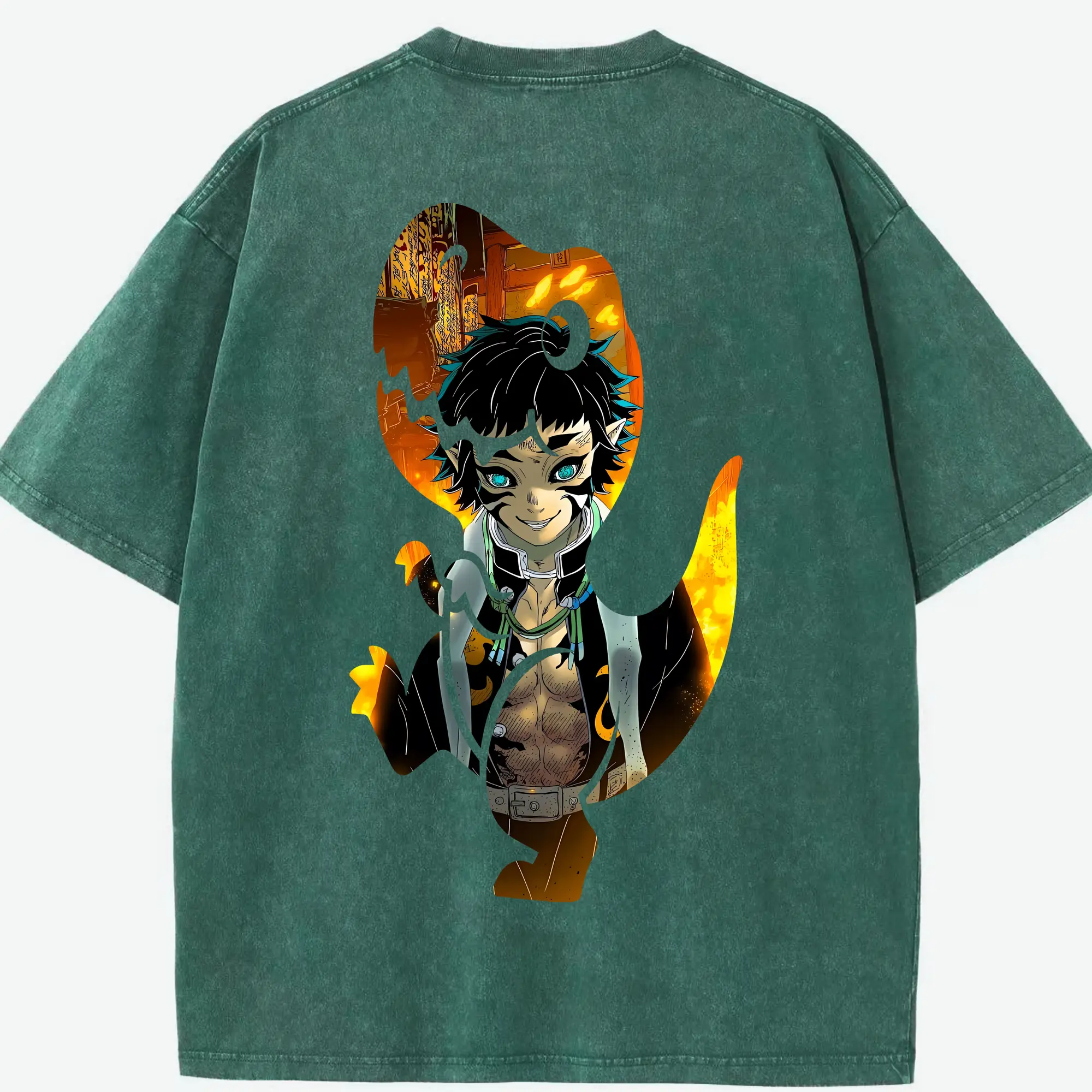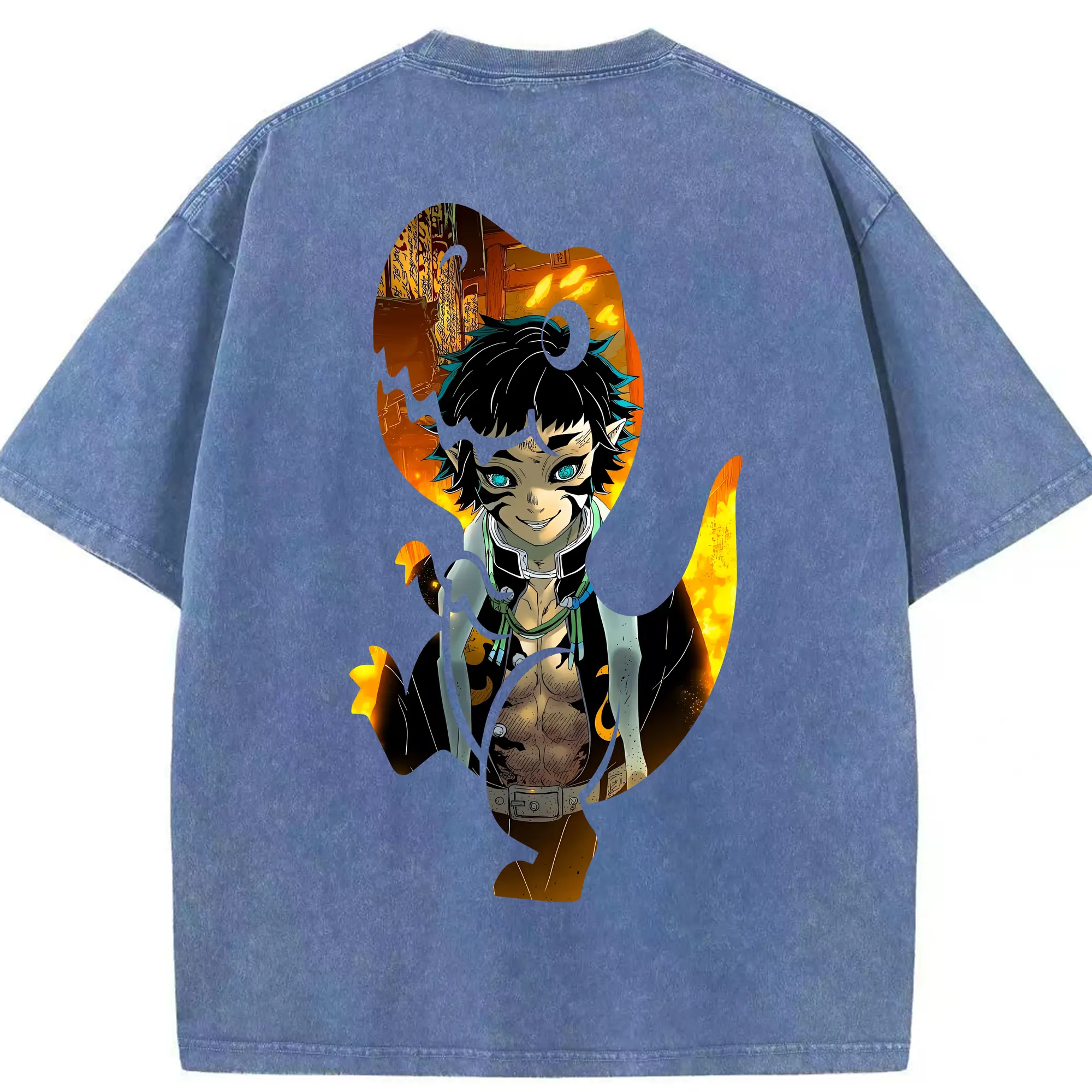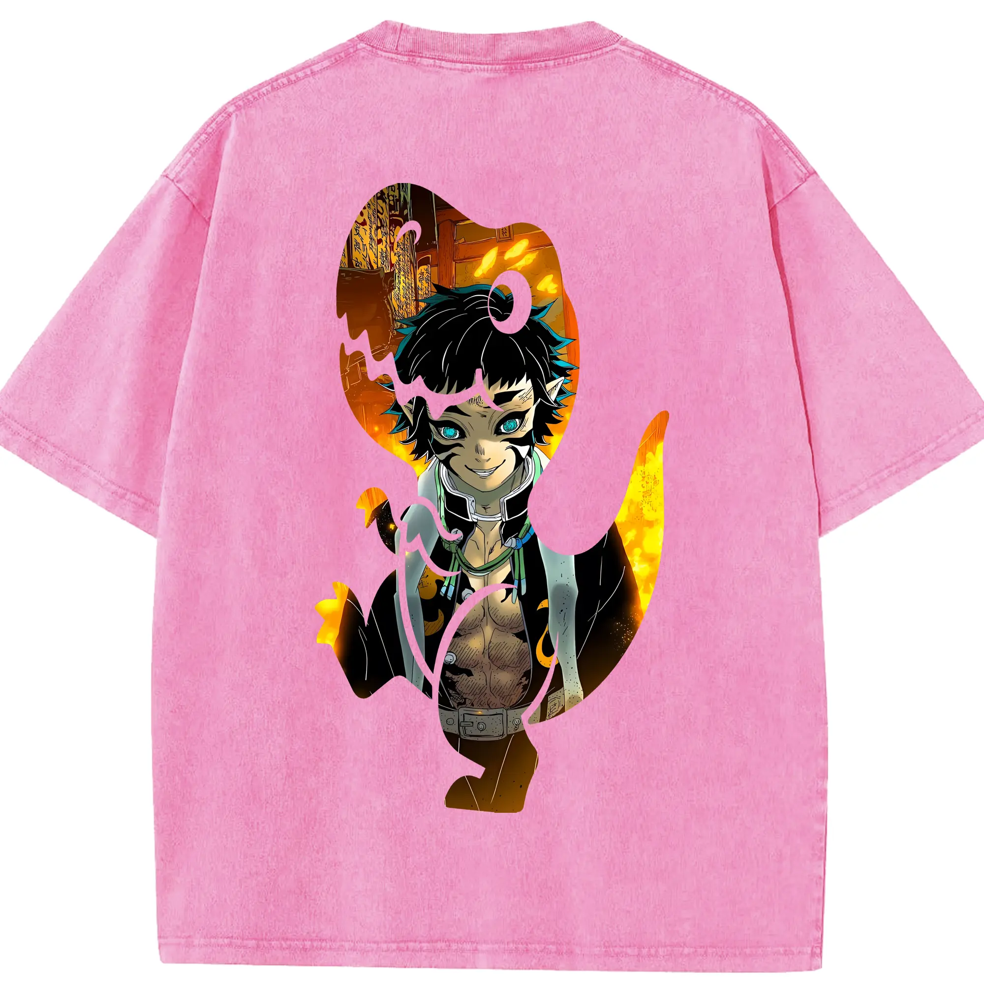 鬼滅の刃 グッズ,獪岳 - 綿100% 半袖Tシャツ ・ バックプリント ・ 快適 通気性 ・ 日常使い 散歩 スポーツ用
