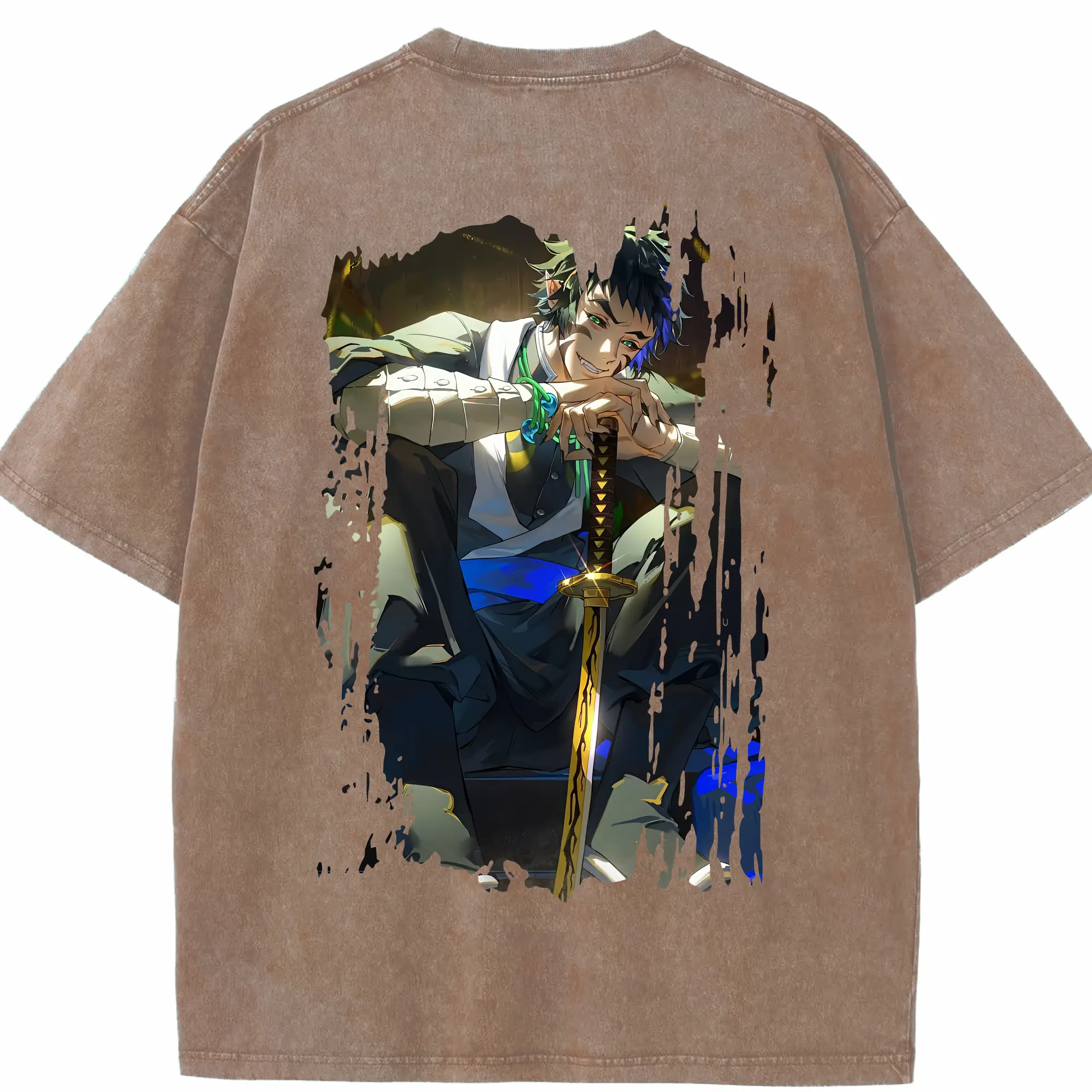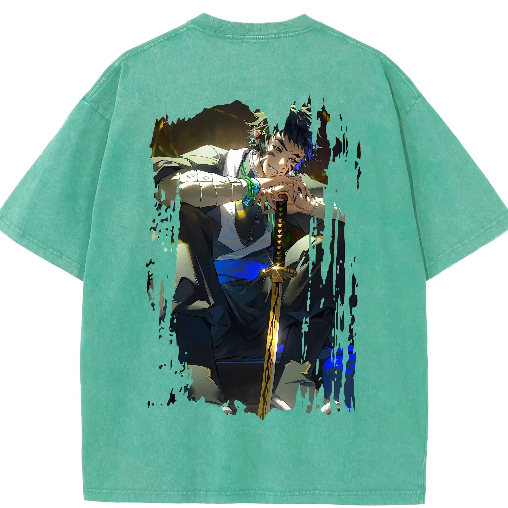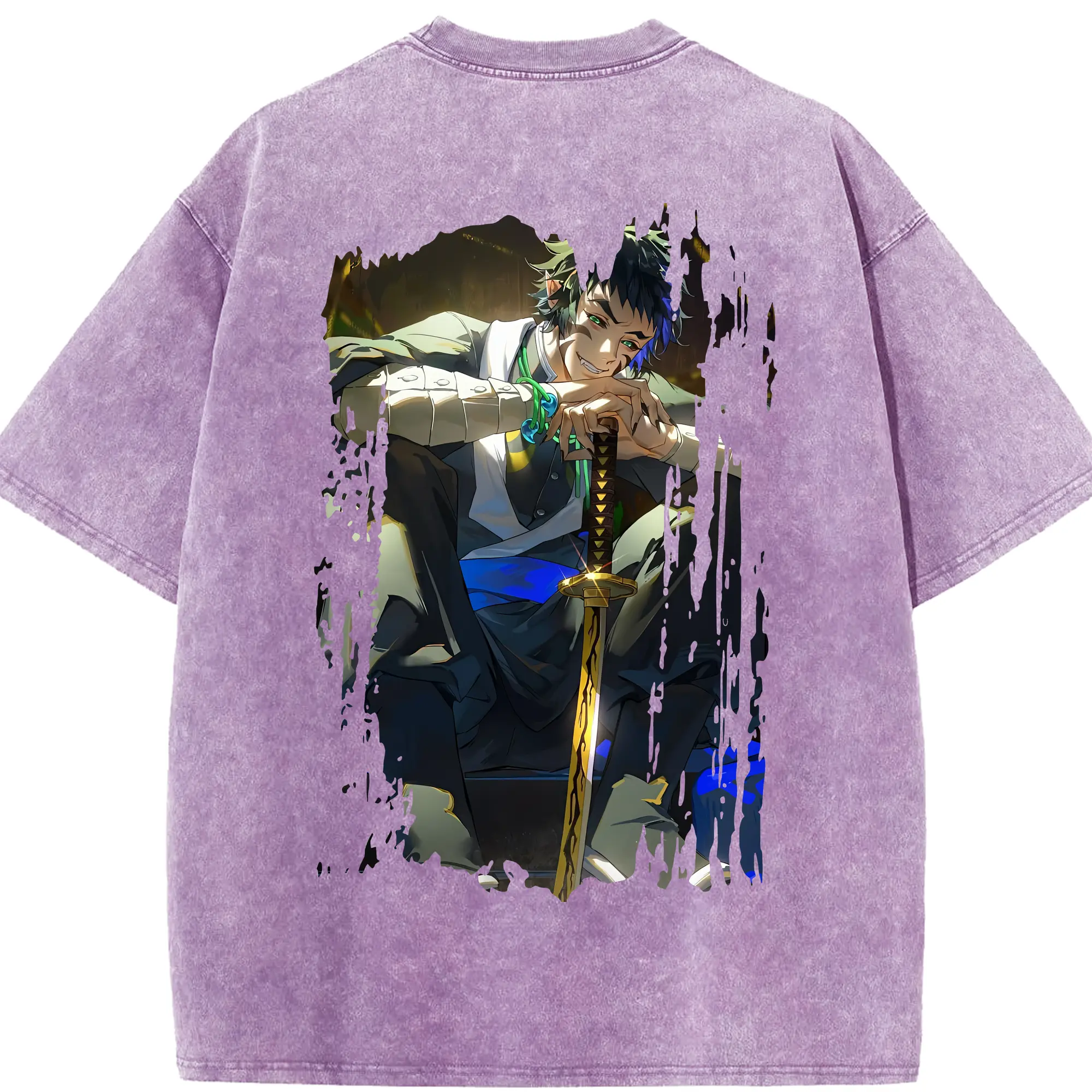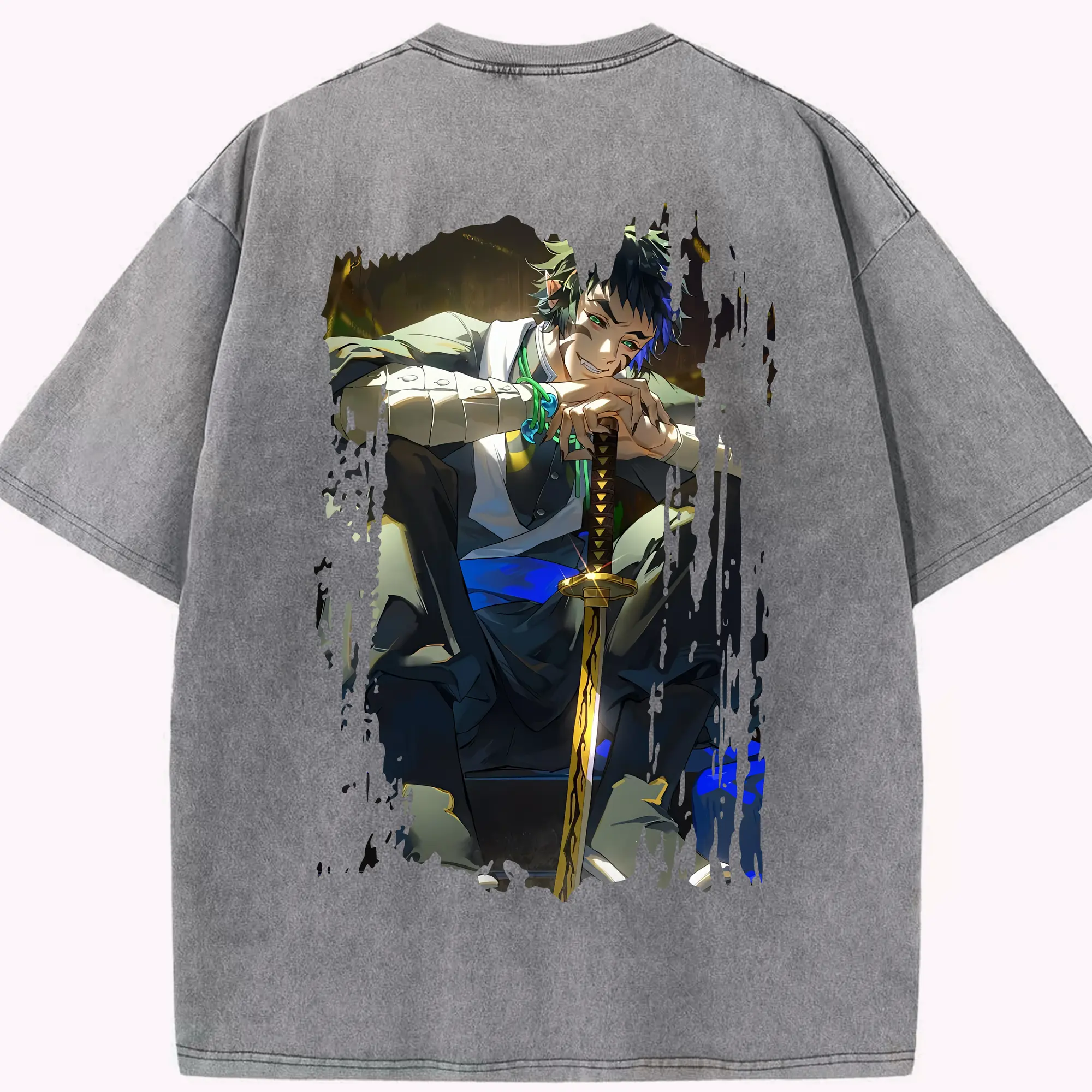 鬼滅の刃 グッズ,獪岳 - 綿100% 半袖Tシャツ ・ バックプリント ・ 快適 通気性 ・ 日常使い 散歩 スポーツ用