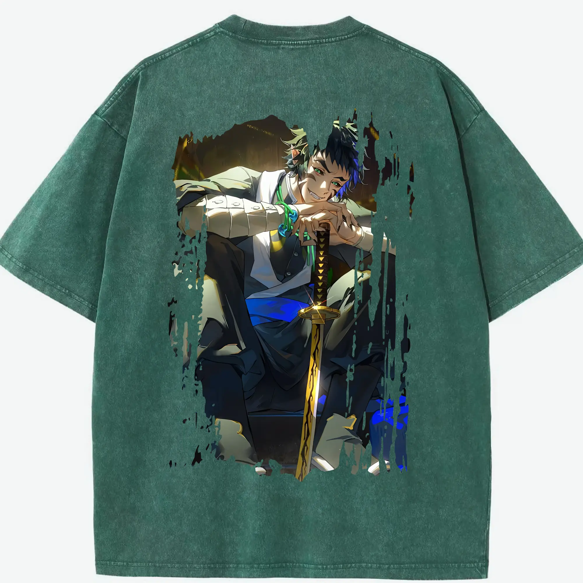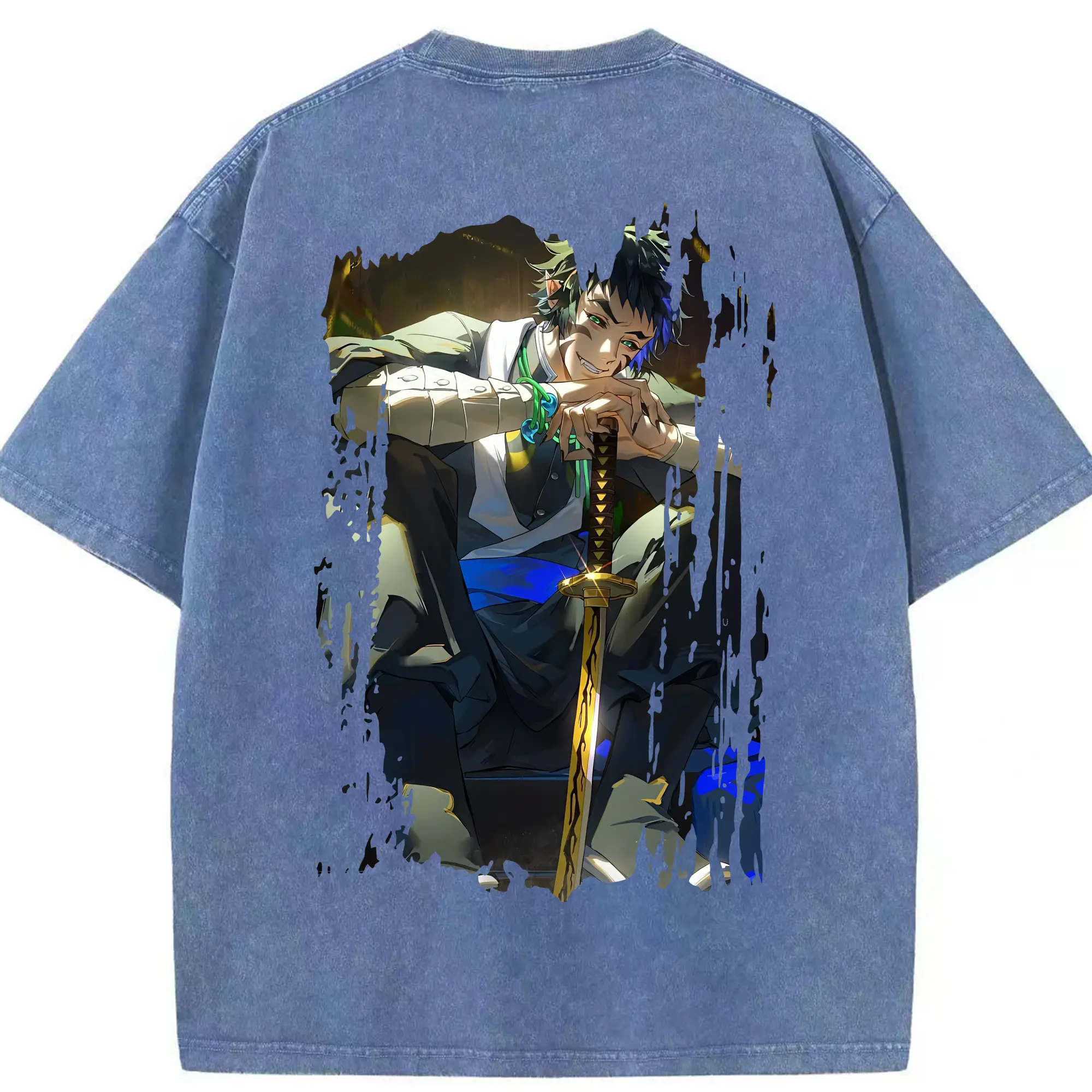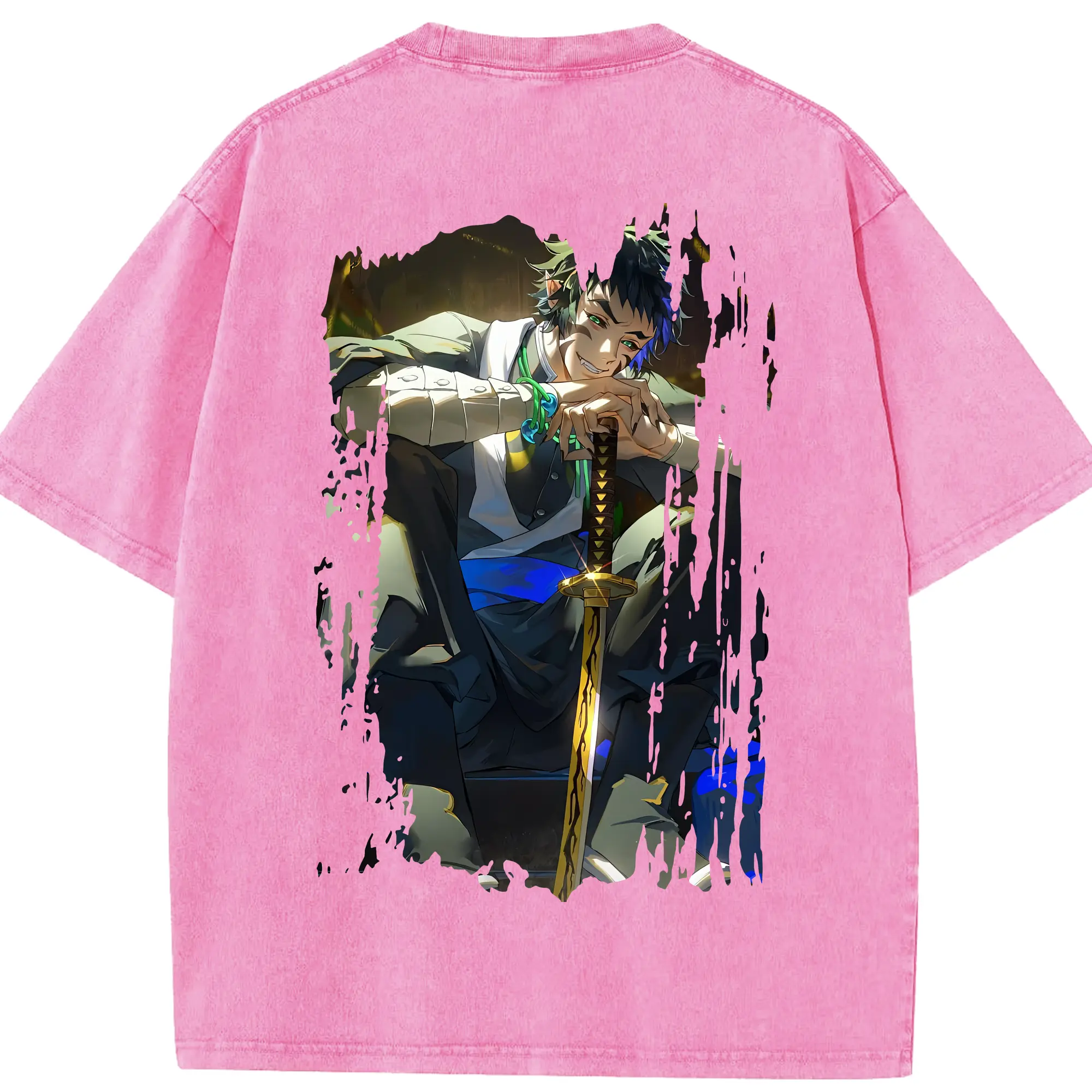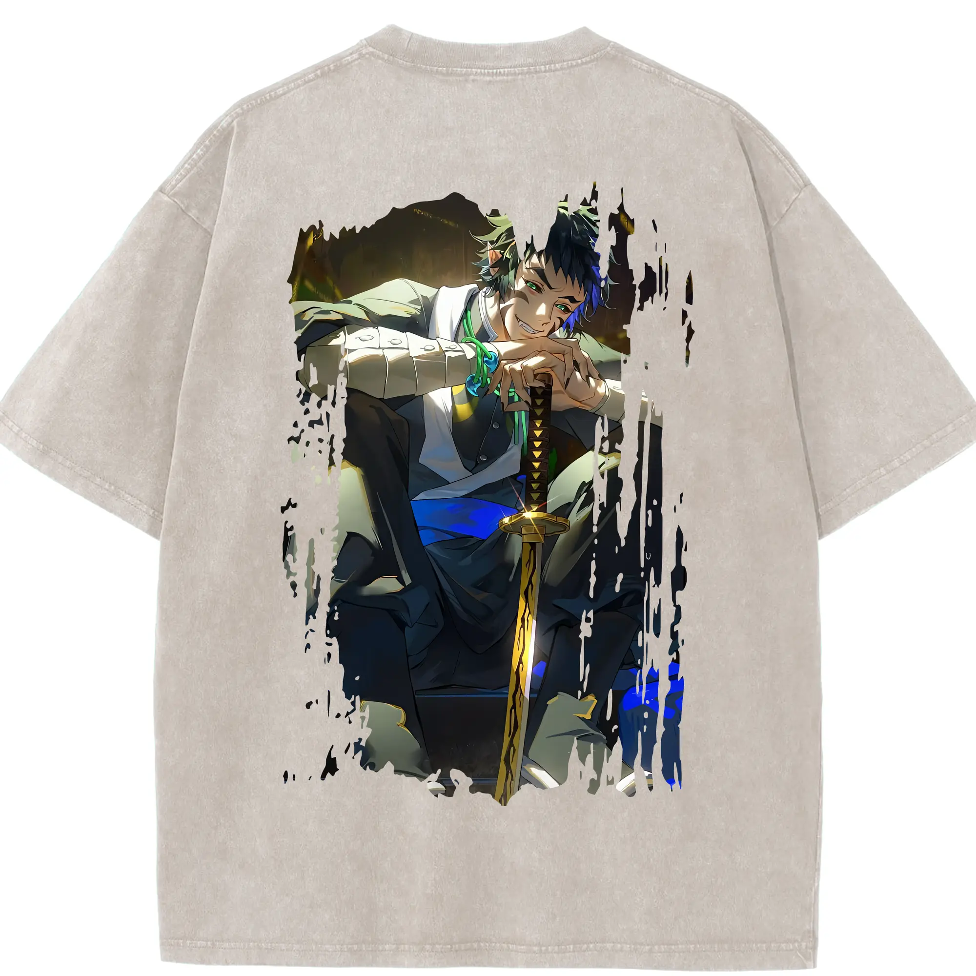 鬼滅の刃 グッズ,獪岳 - 綿100% 半袖Tシャツ ・ バックプリント ・ 快適 通気性 ・ 日常使い 散歩 スポーツ用