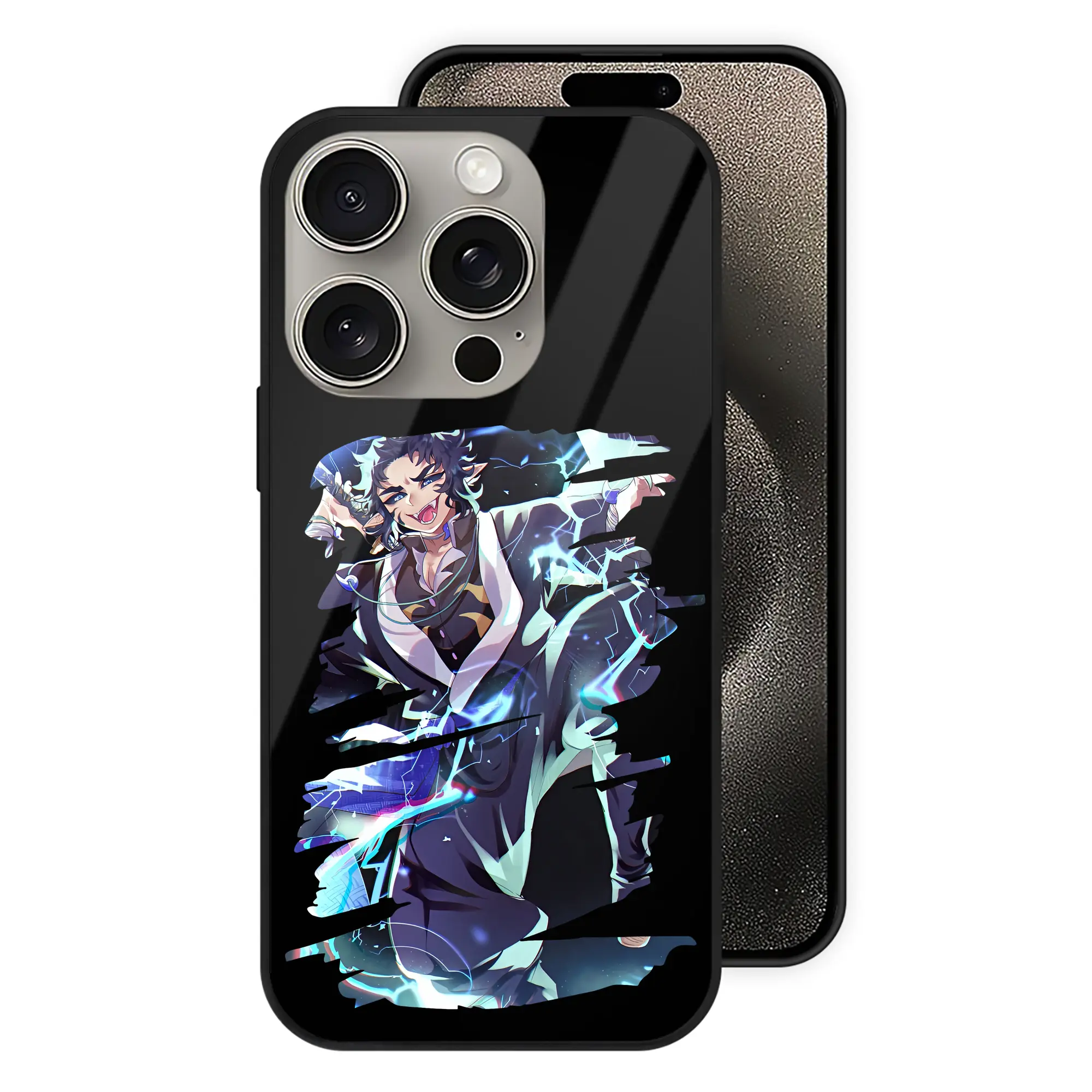 鬼滅の刃 グッズ,獪岳 - IPhone15Pro対応 ・ スマホケース ・ 背面ガラス ・ TPU+強化ガラス ・ 耐衝撃 ・ 黄変防止 ・ ワイヤレス充電対応 ・ 3D立体ボタン