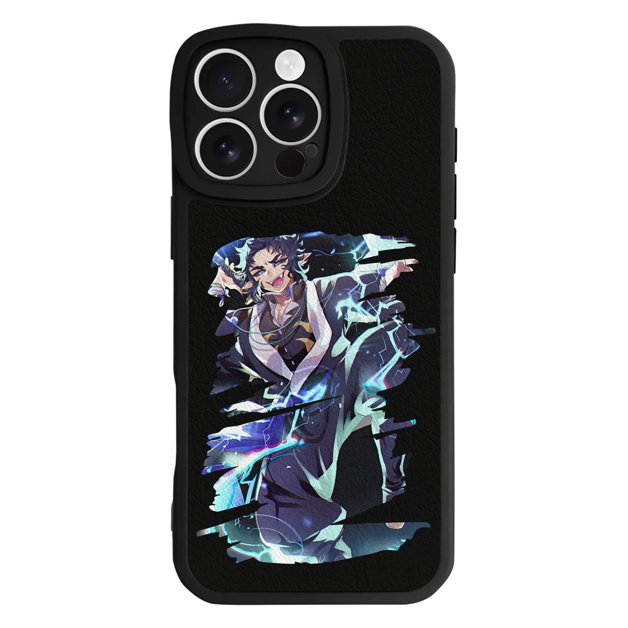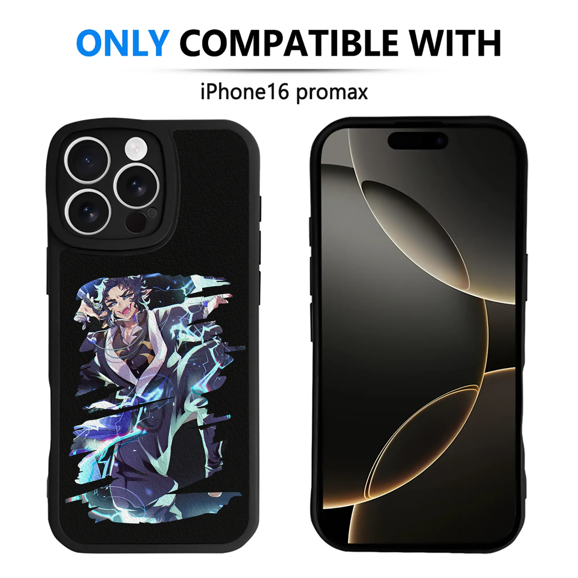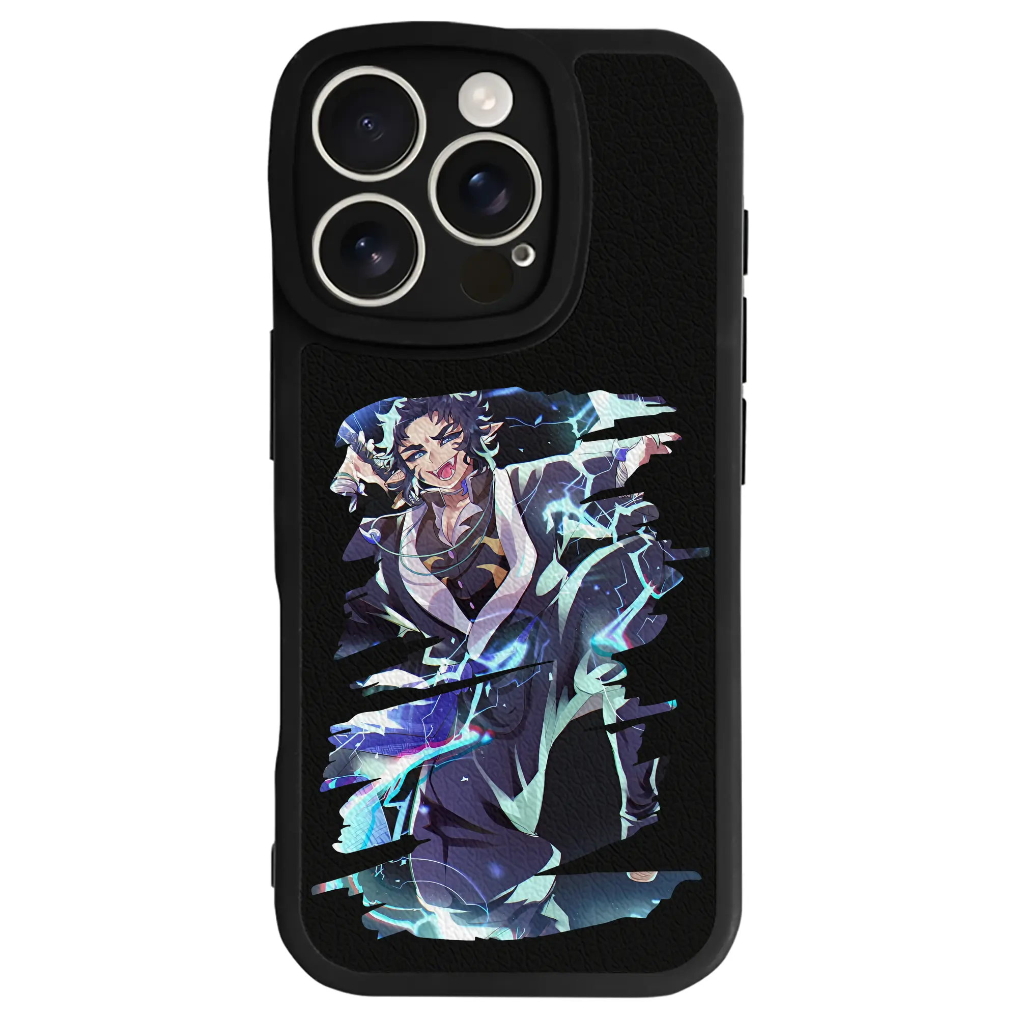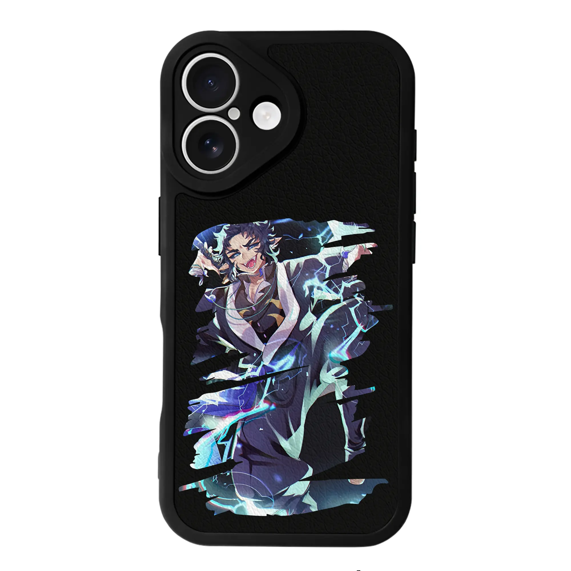 鬼滅の刃 グッズ,獪岳 - IPhone 16シリーズ対応 ・ シリコンスマホケース ・ レザー調 ・ 高精度フィット ・ 耐衝撃 ・ ワイヤレス充電対応 ・ 精密カット